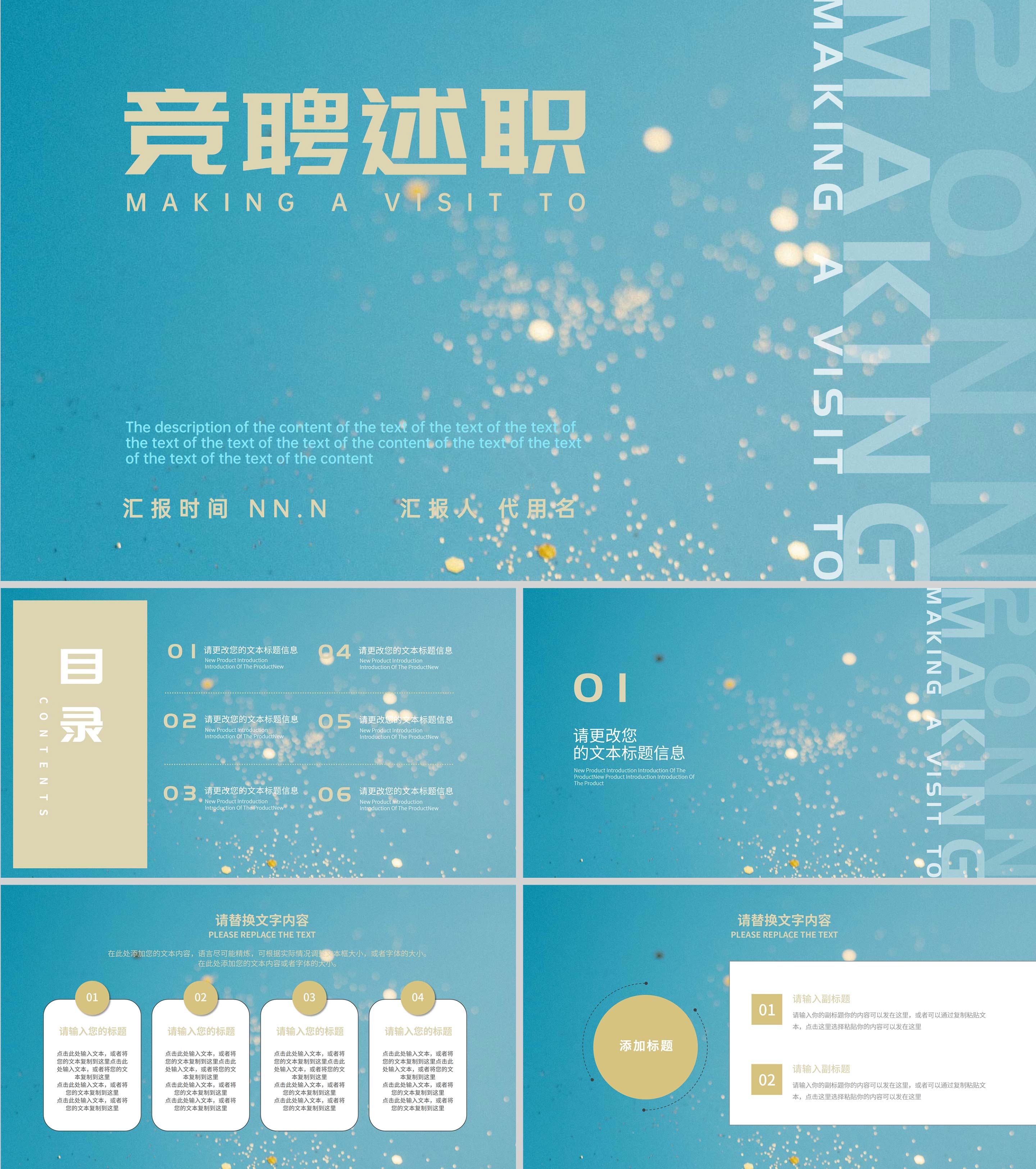 蓝色鎏金风竞聘述职PPT模板