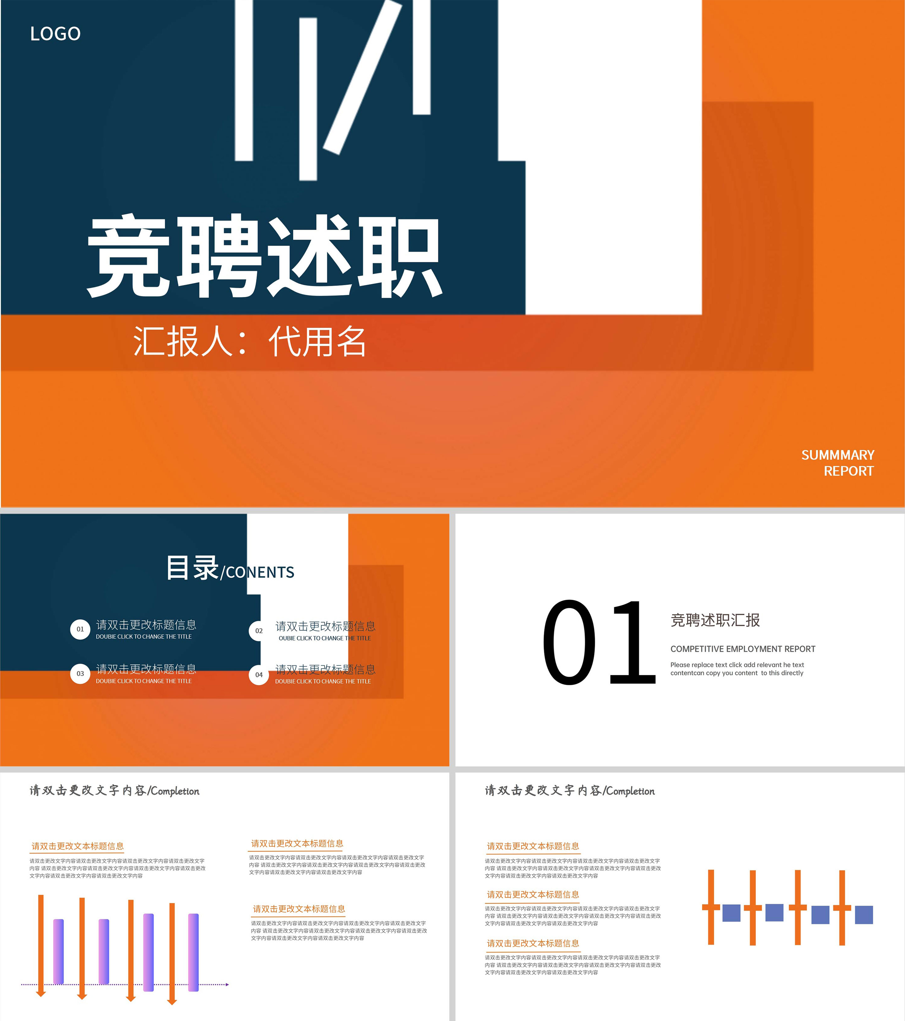 橙色简约拼接风竞聘述职PPT模板