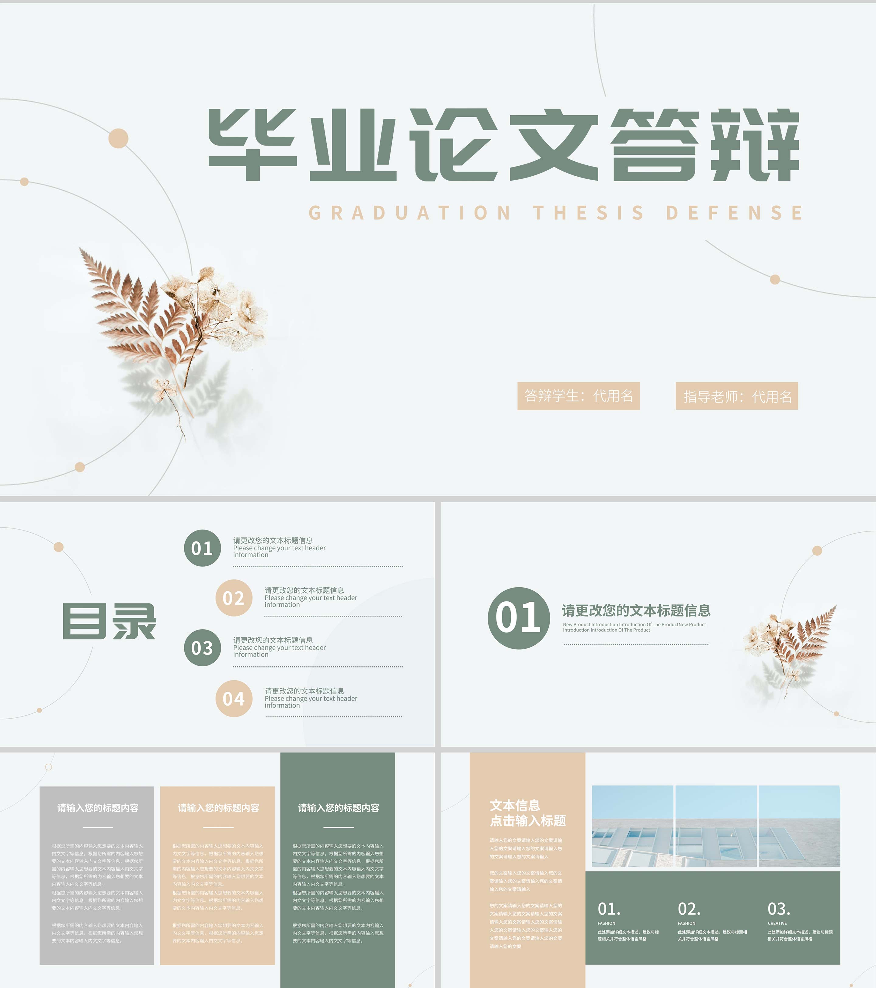 小清新简约风校园毕业论文答辩PPT模板