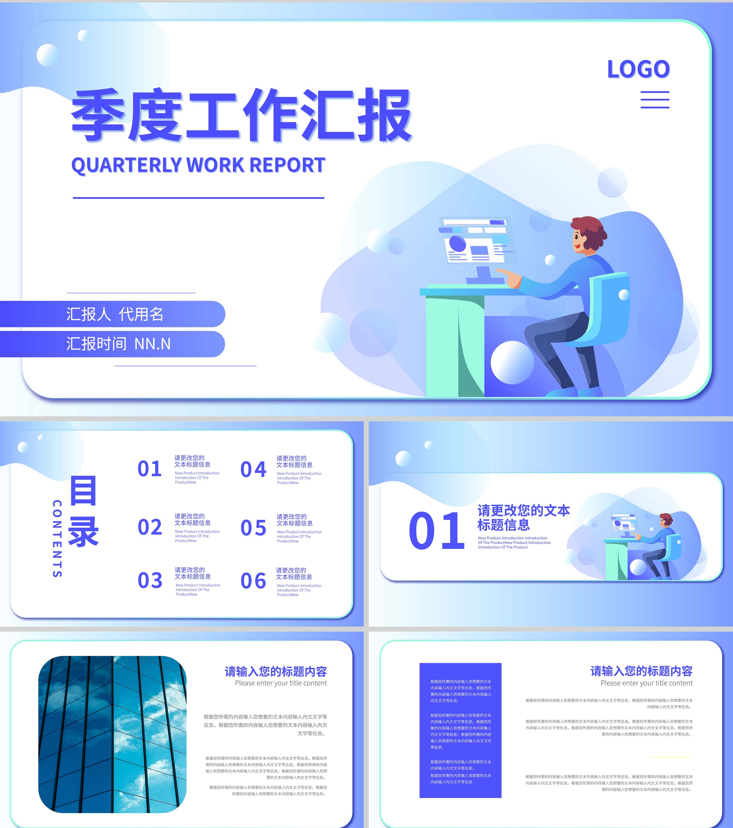 蓝色插画风季度工作汇报PPT模板