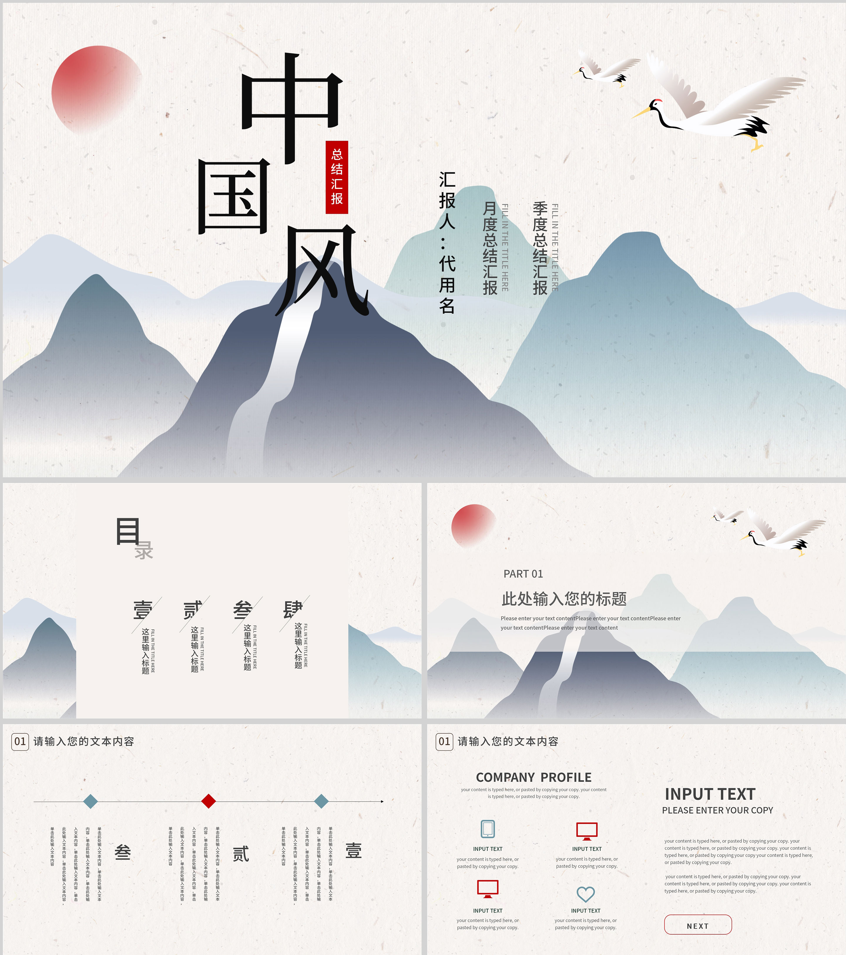 蓝色中国风远山工作汇报PPT模板