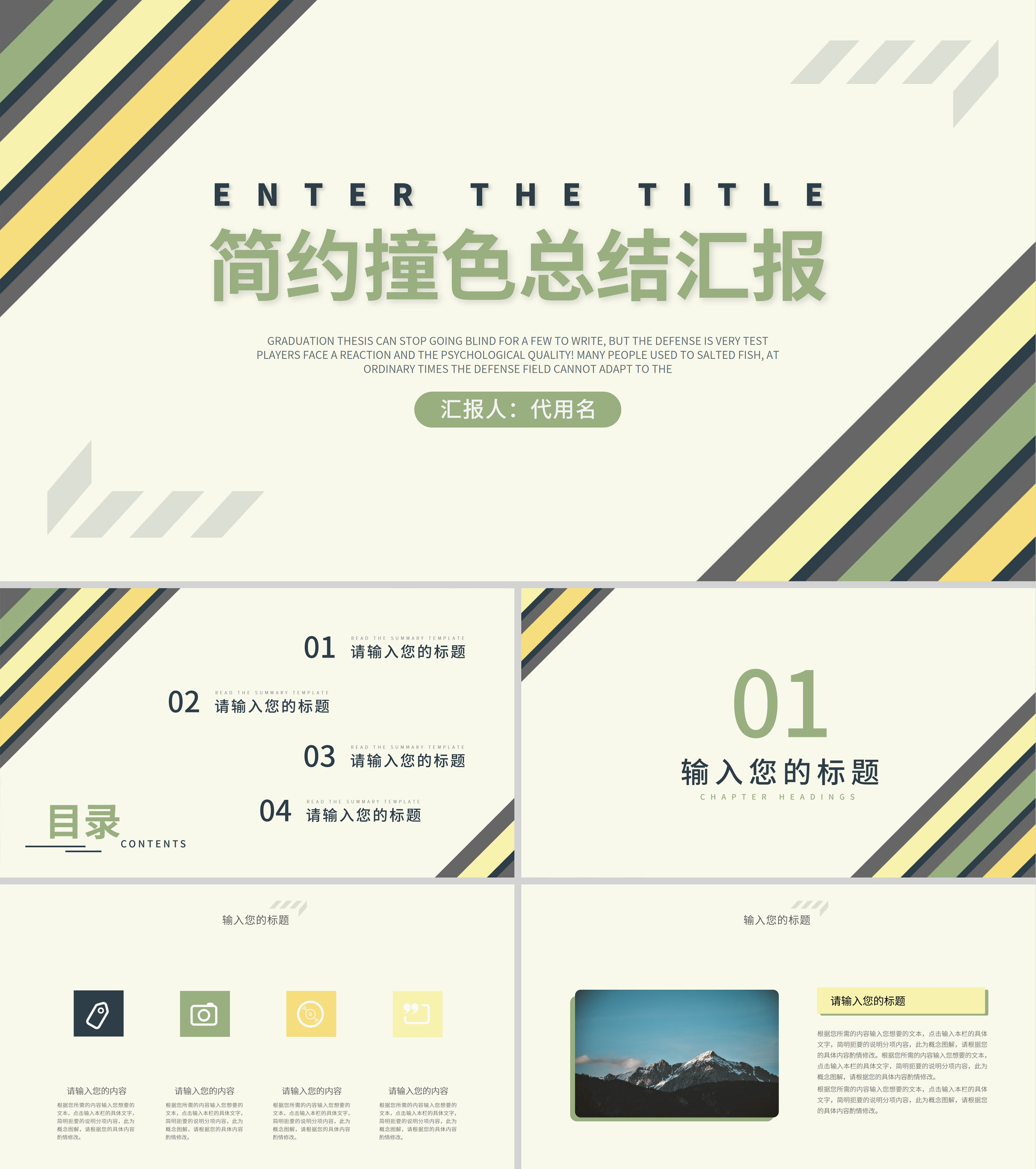简约风撞色工作汇报PPT模板
