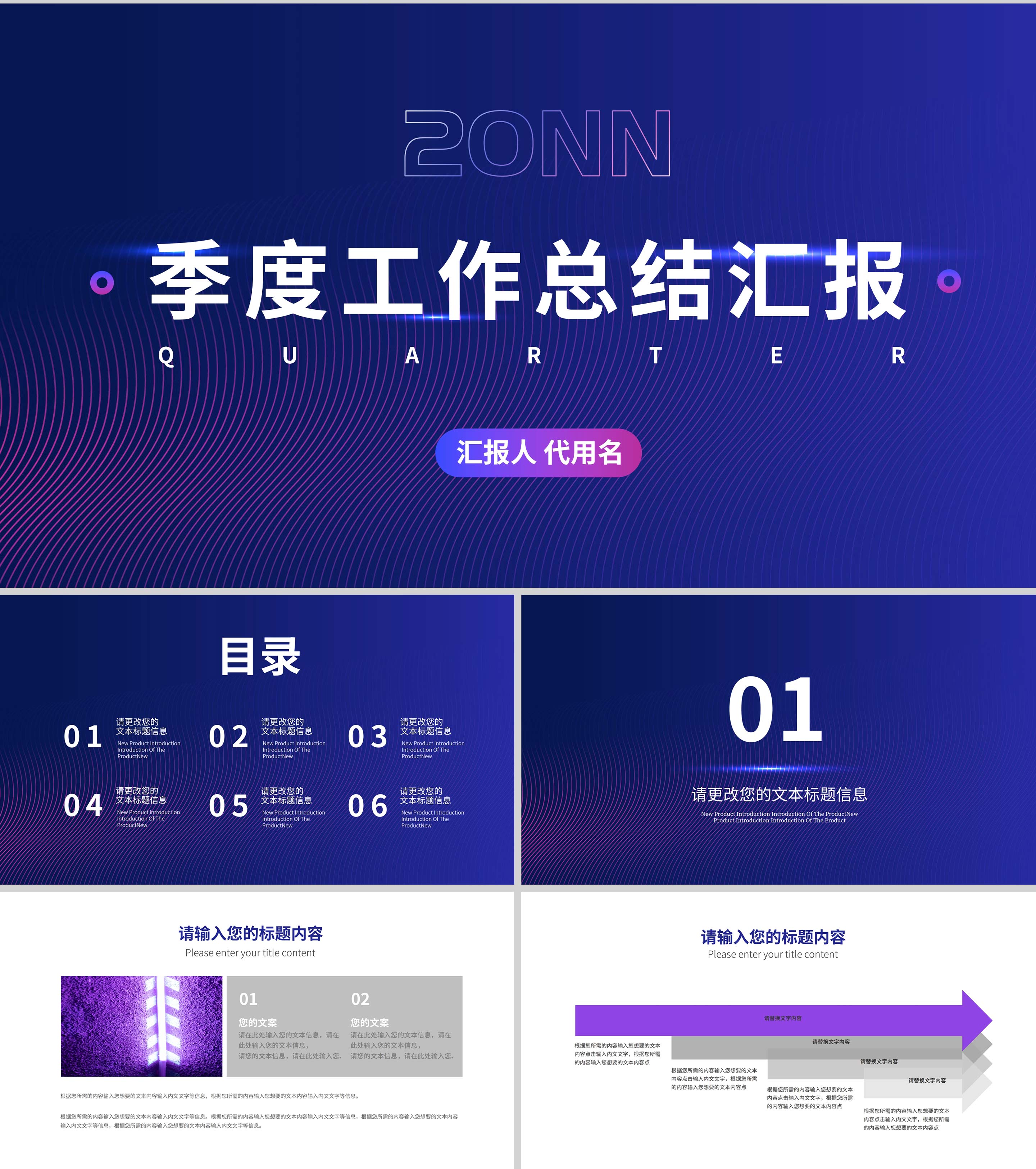 蓝色简约风季度工作汇报PPT模板