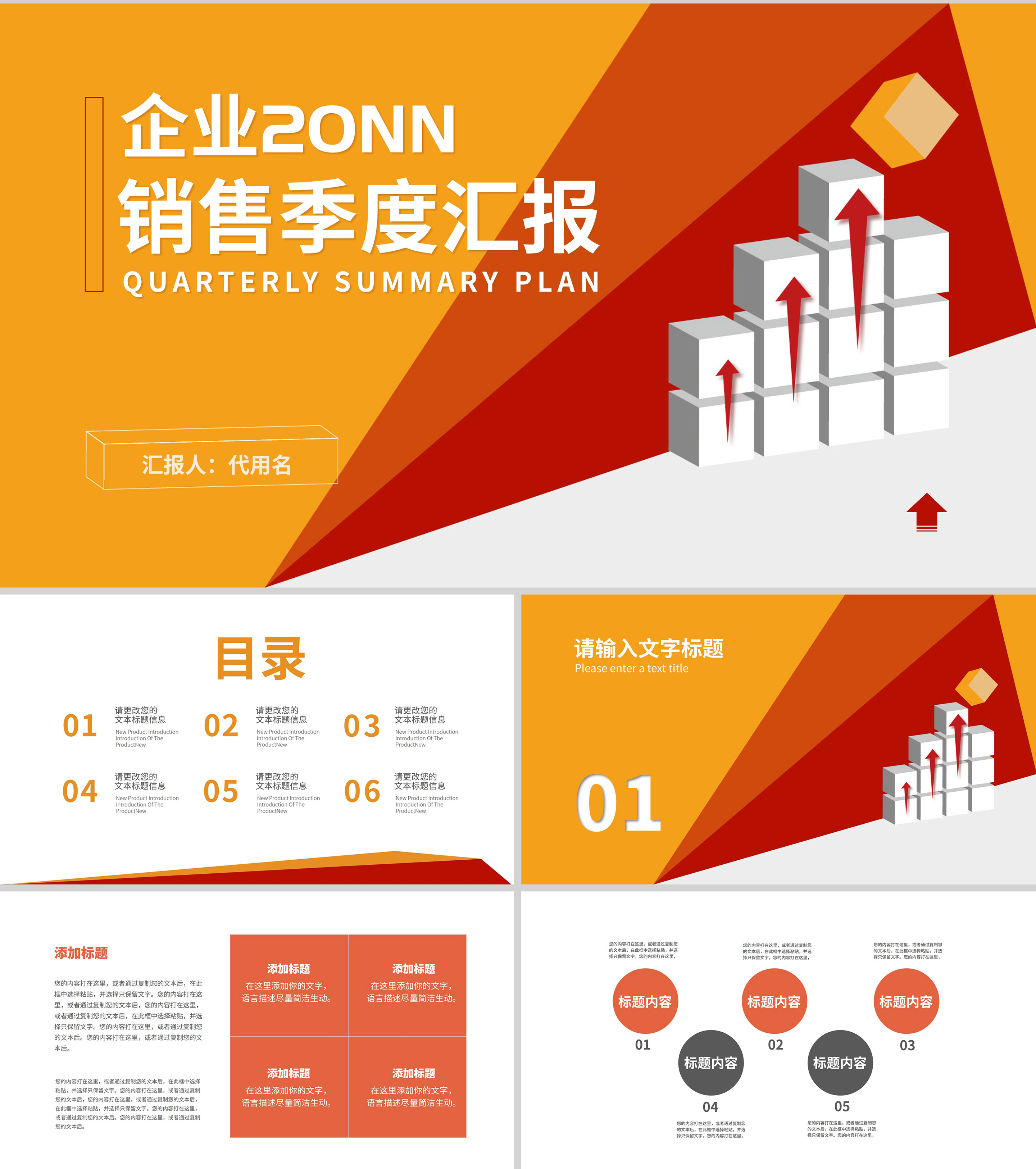 红黄色微立体季度汇报PPT模板