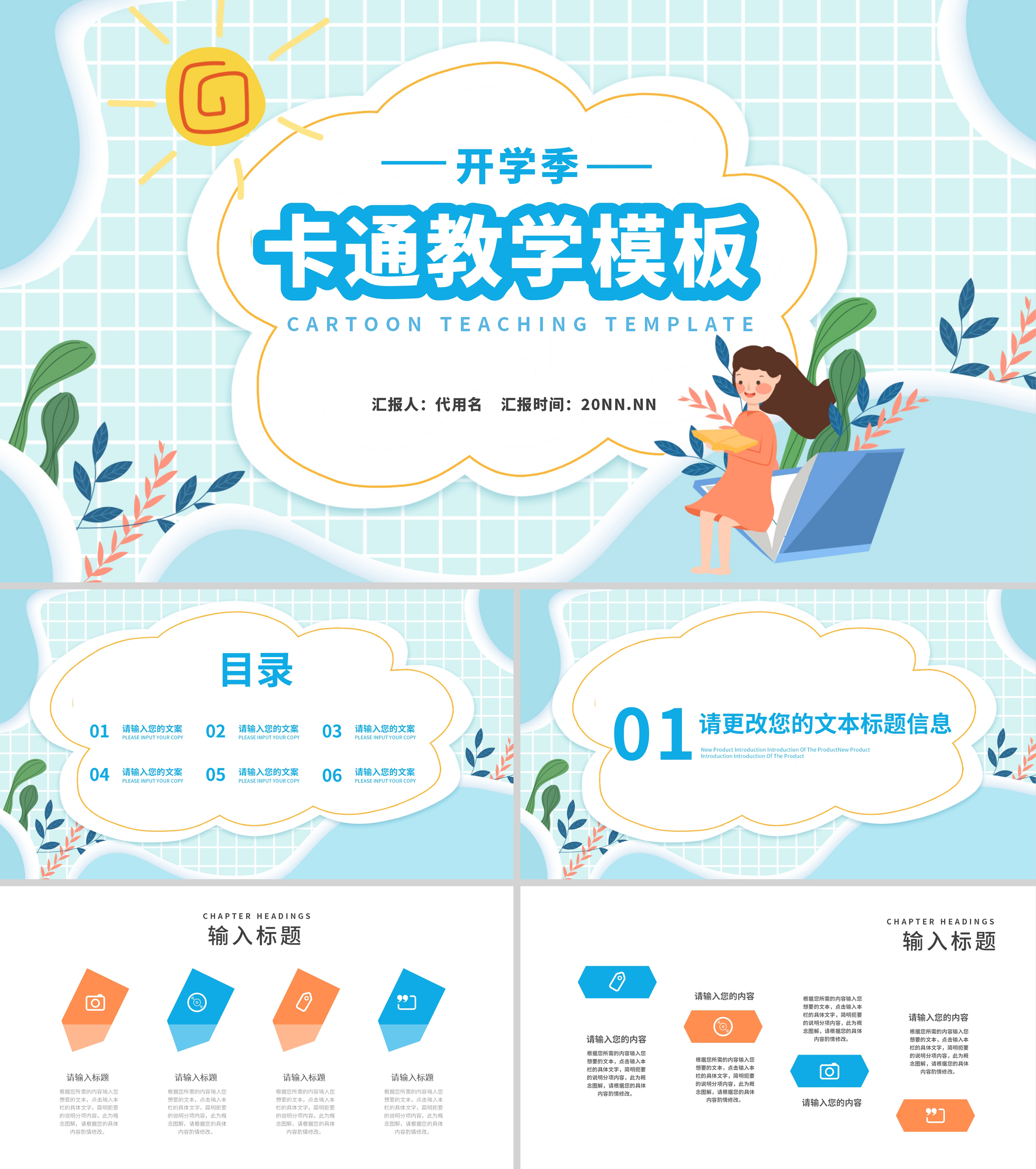 卡通蓝色开学季教学PPT模板