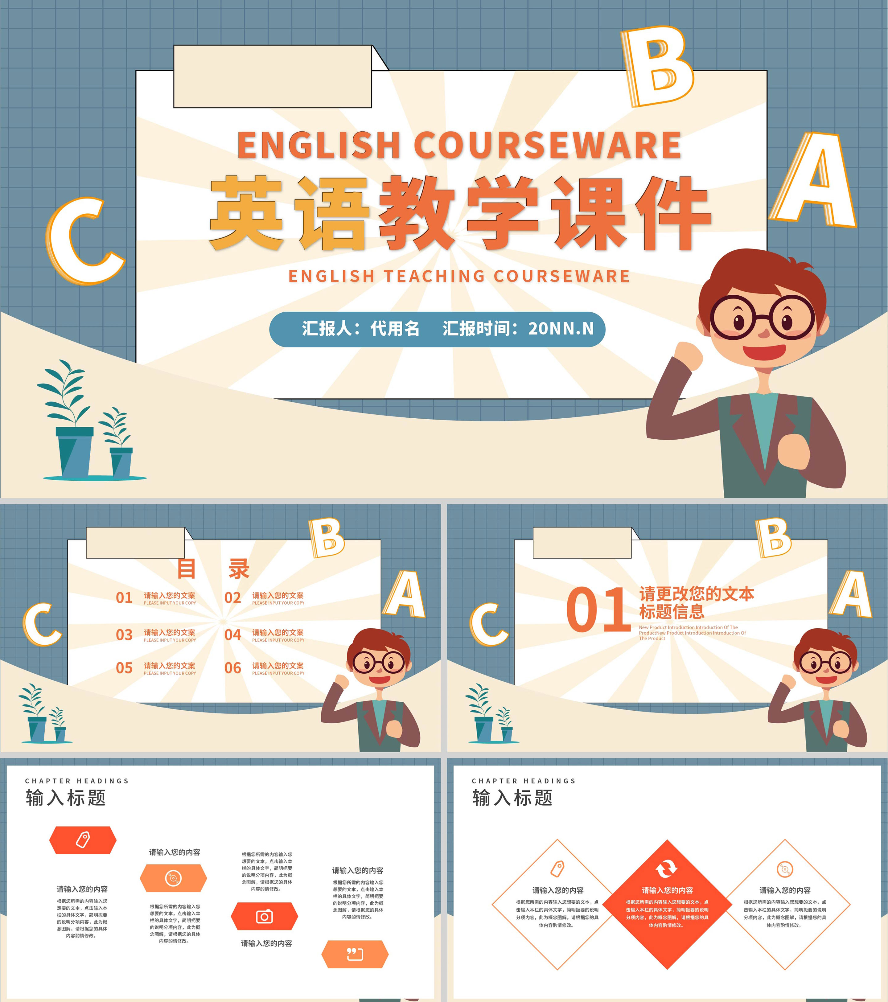 卡通英语教师教学授课PPT模板