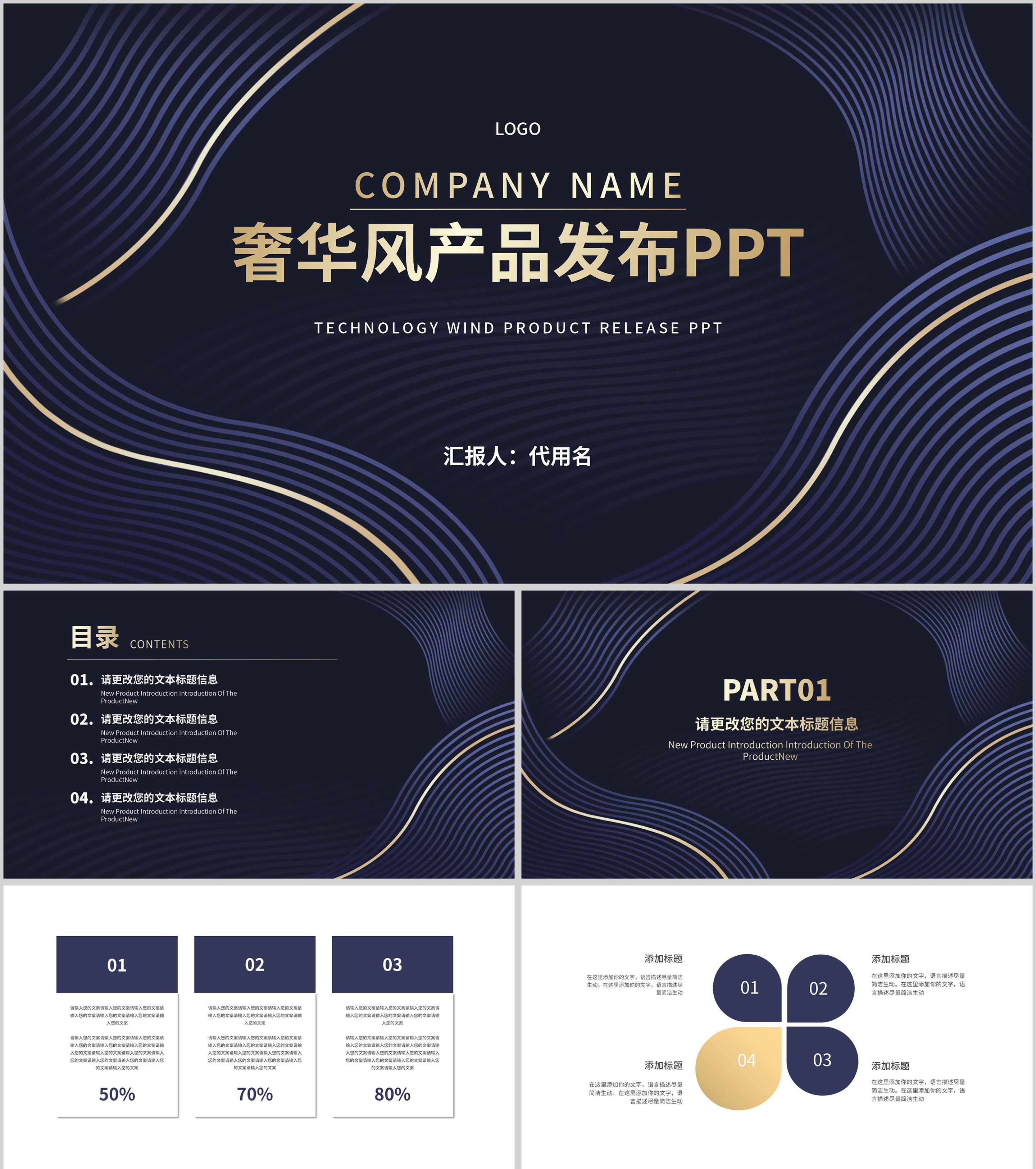 商务奢华风线条产品发布PPT模板