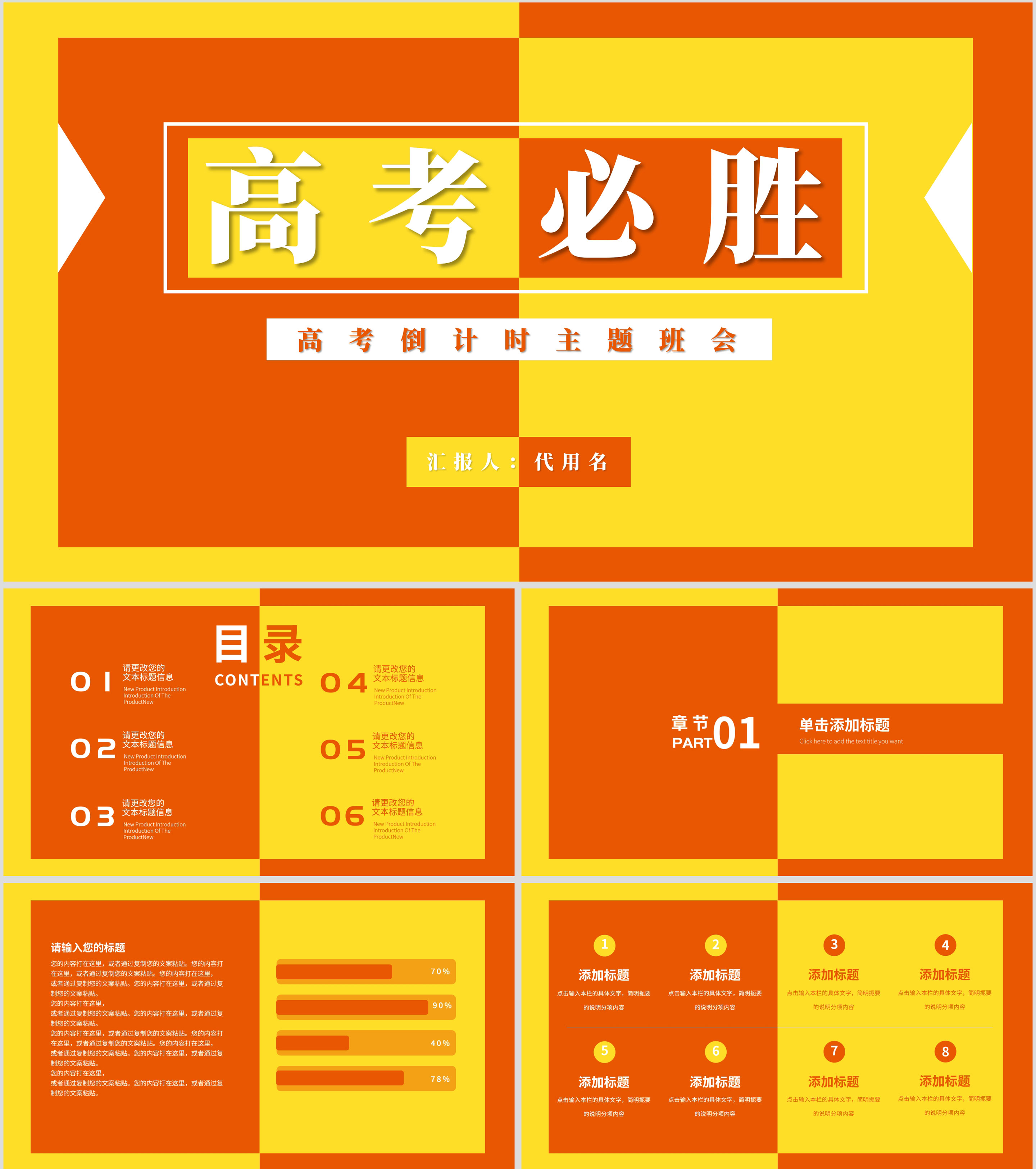 红黄拼色简约风高考倒计时主题班会PPT模板
