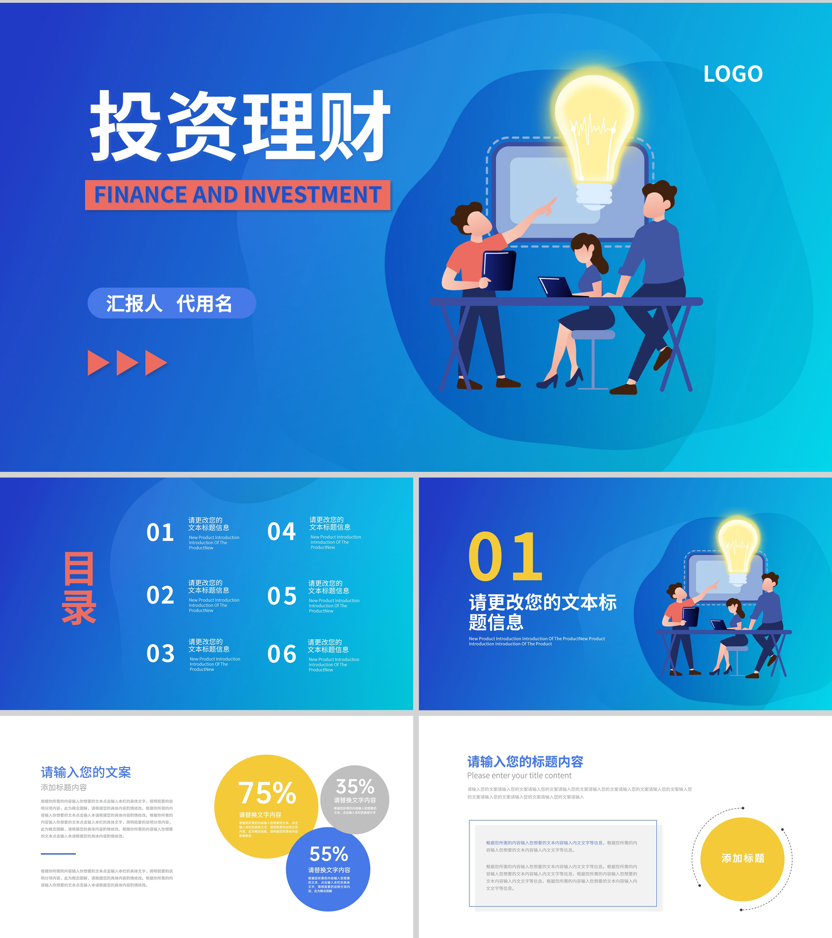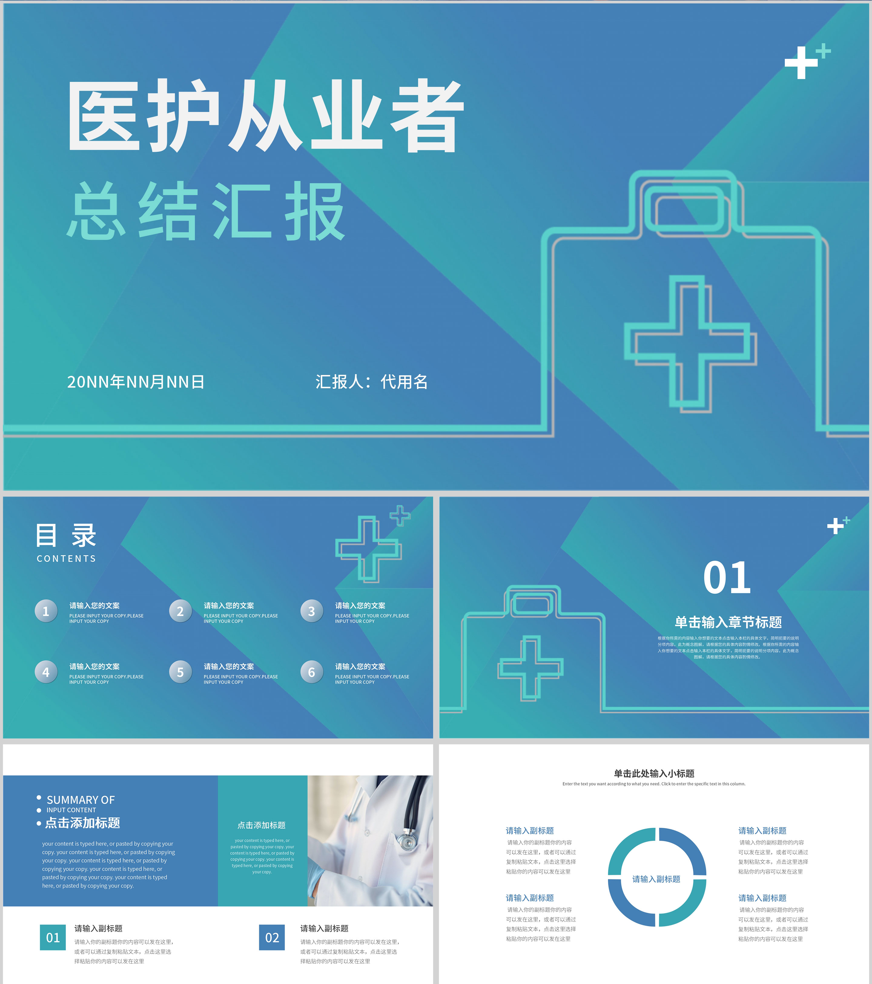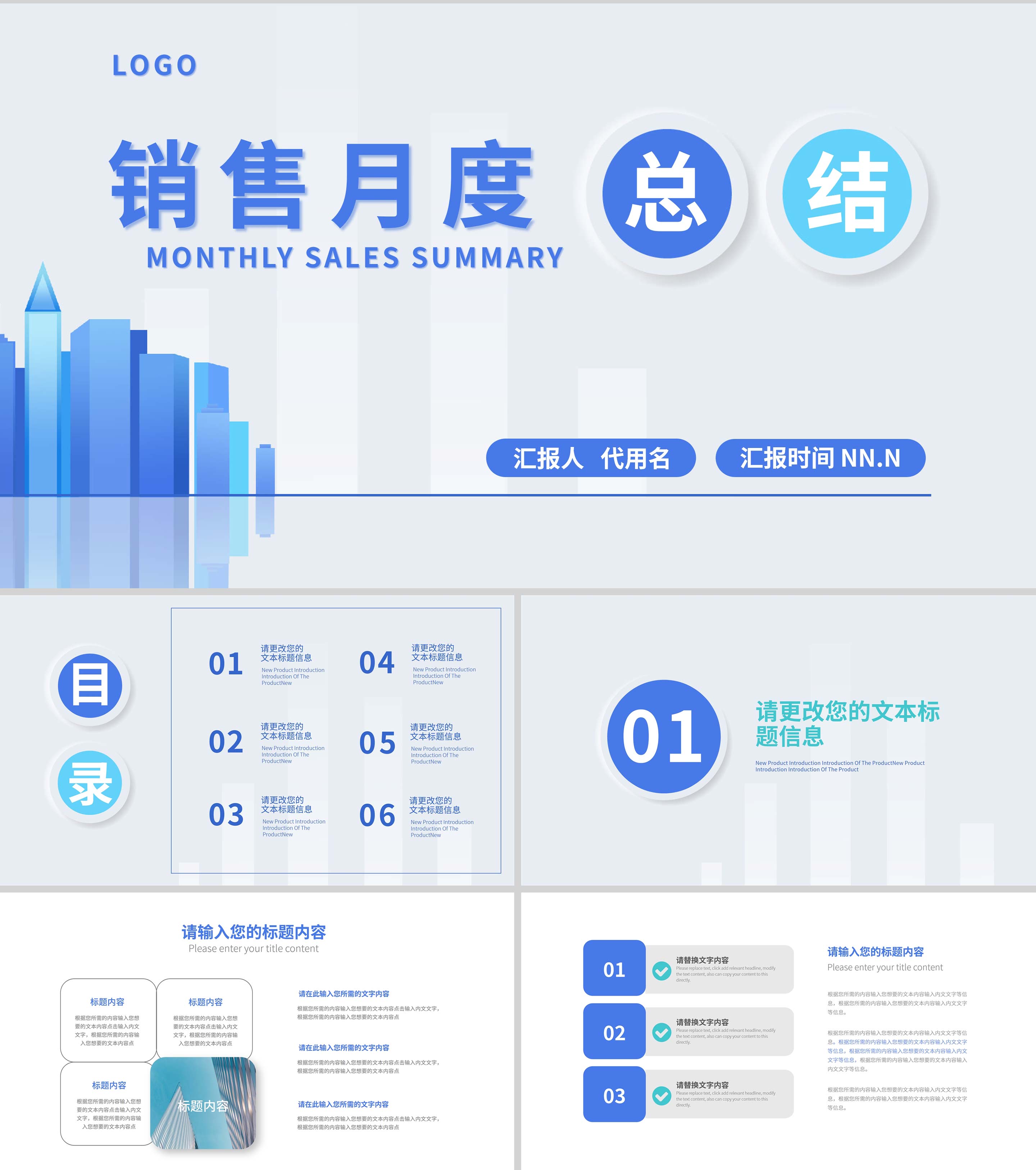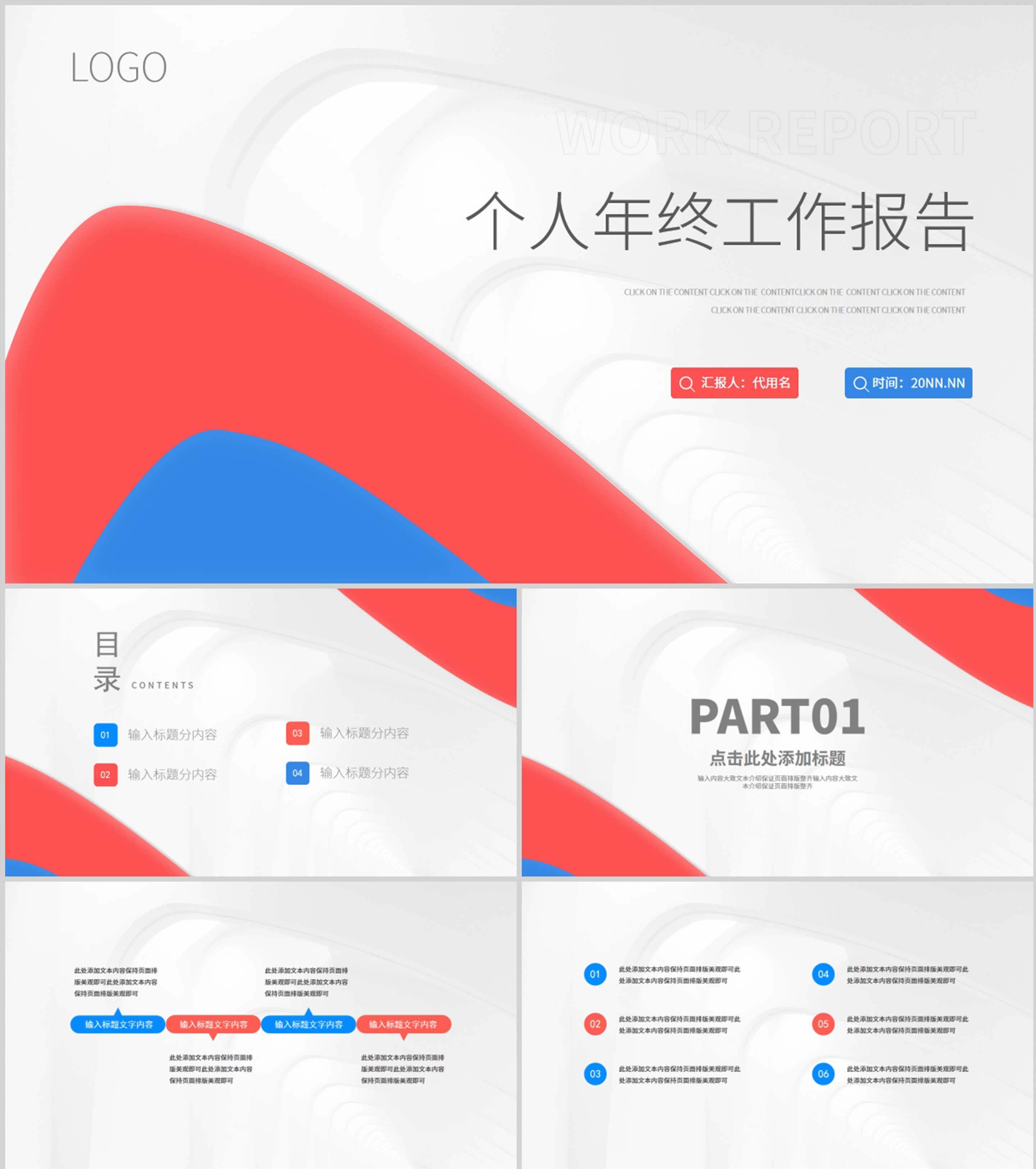 蓝色商务几何风渐变年度述职汇报PPT模板