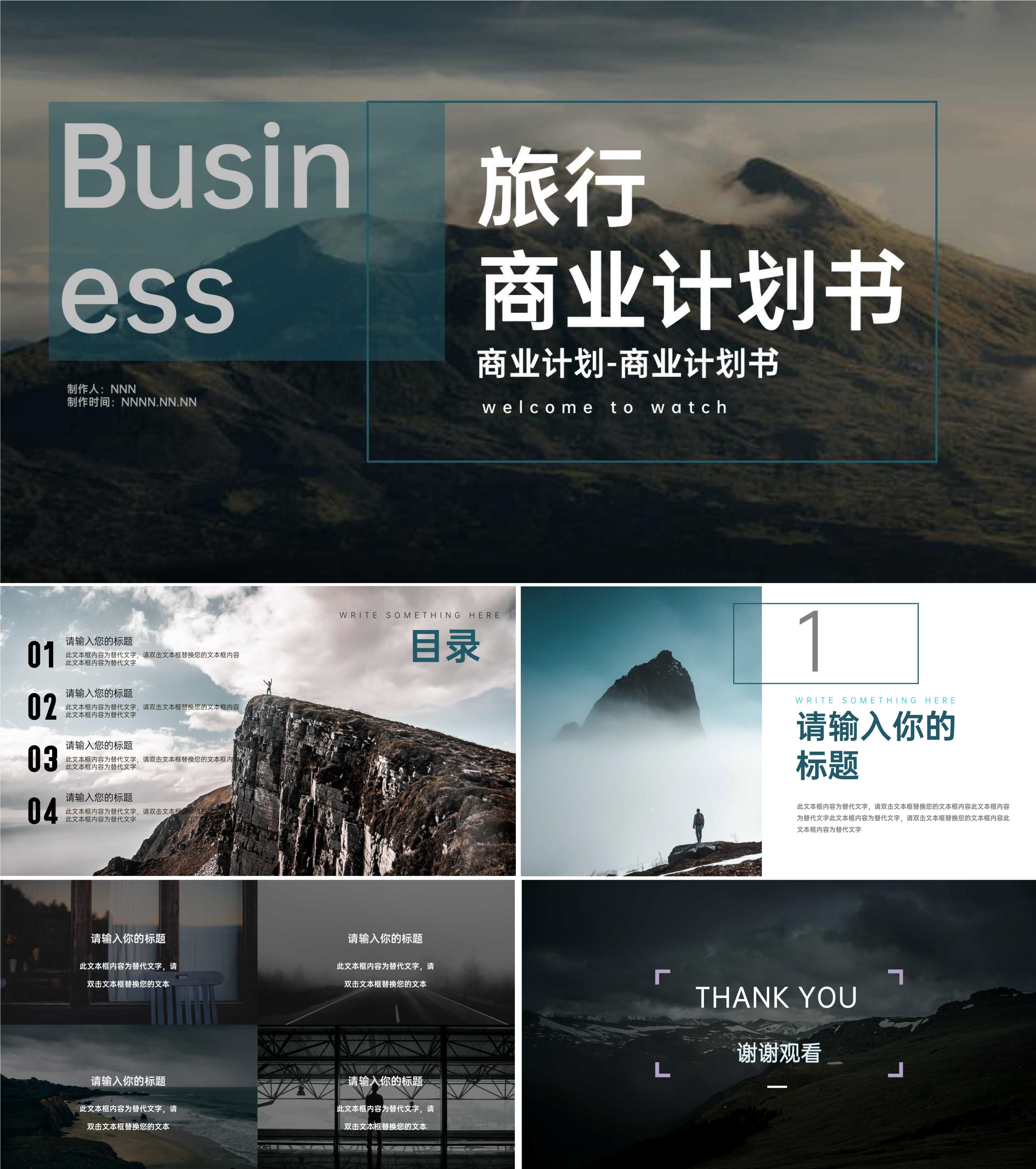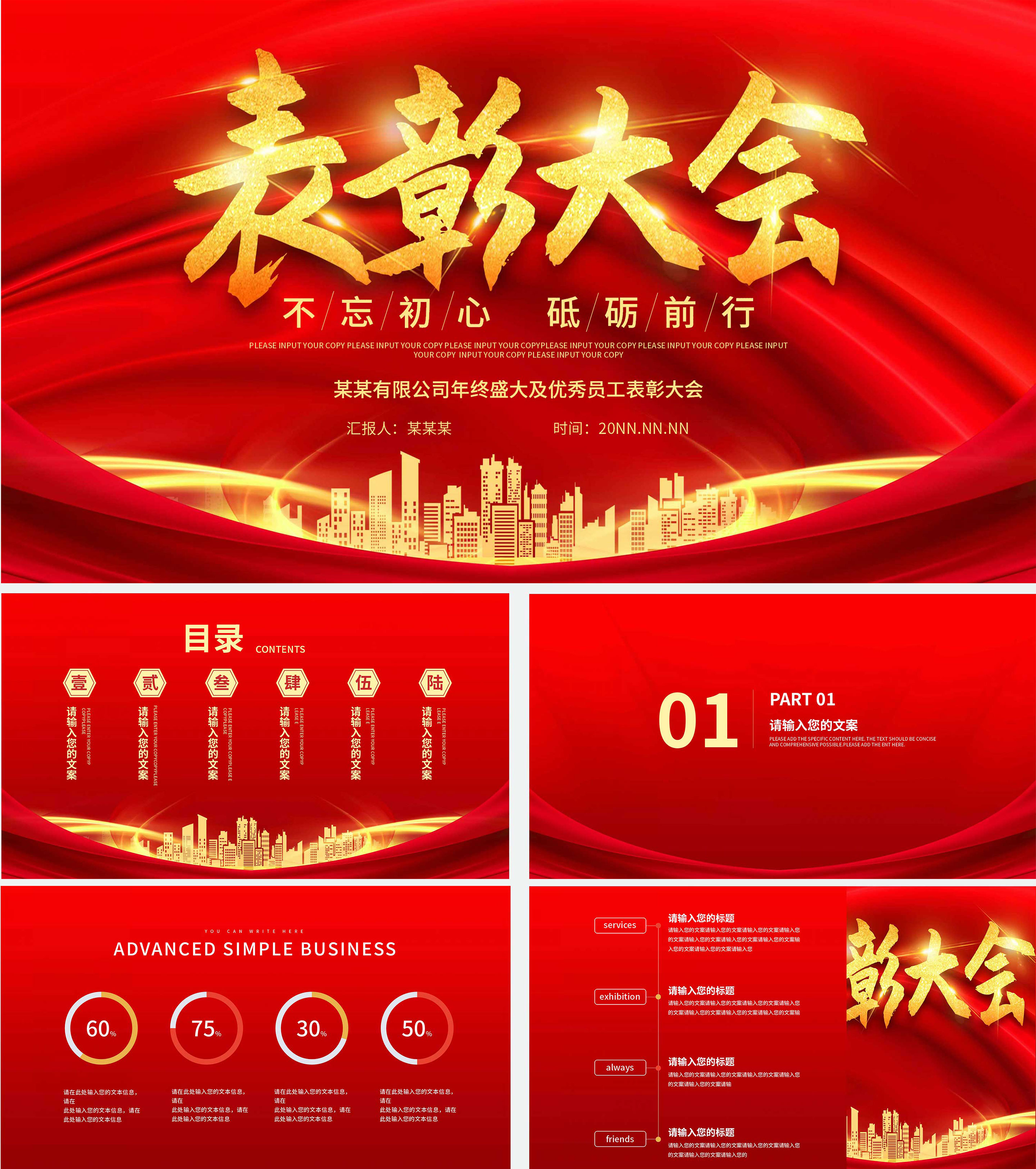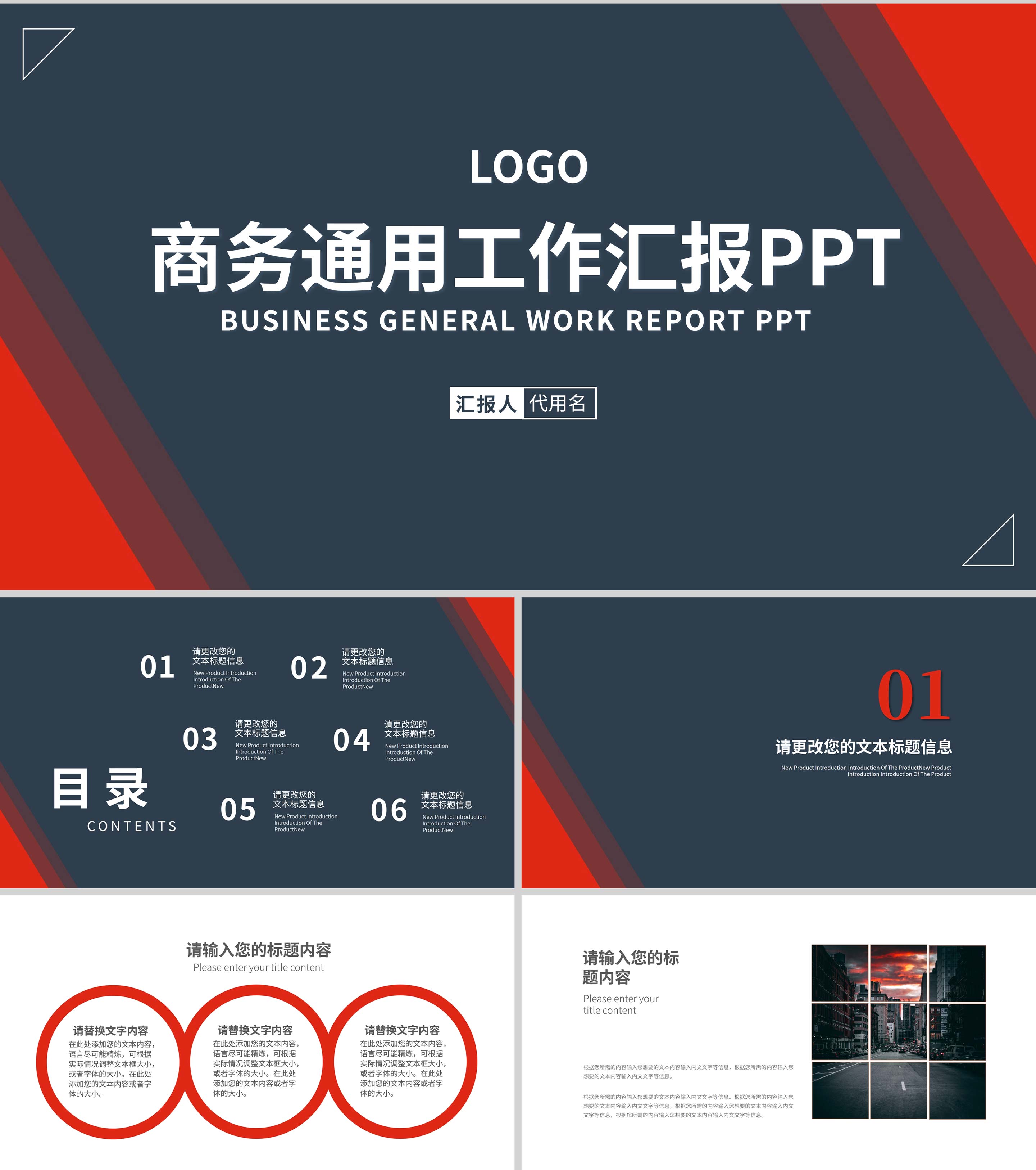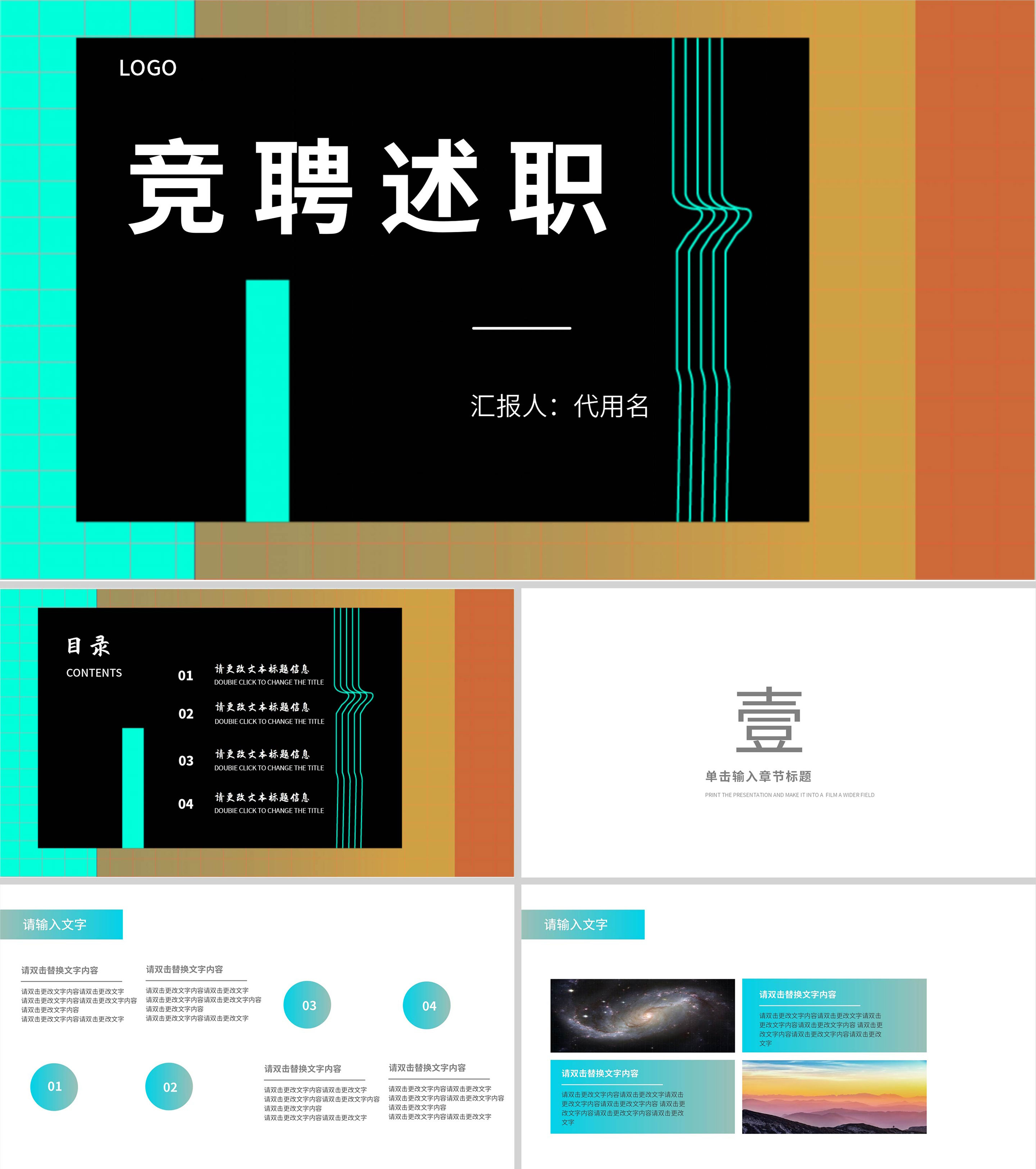 蓝色商务几何风渐变年度述职汇报PPT模板