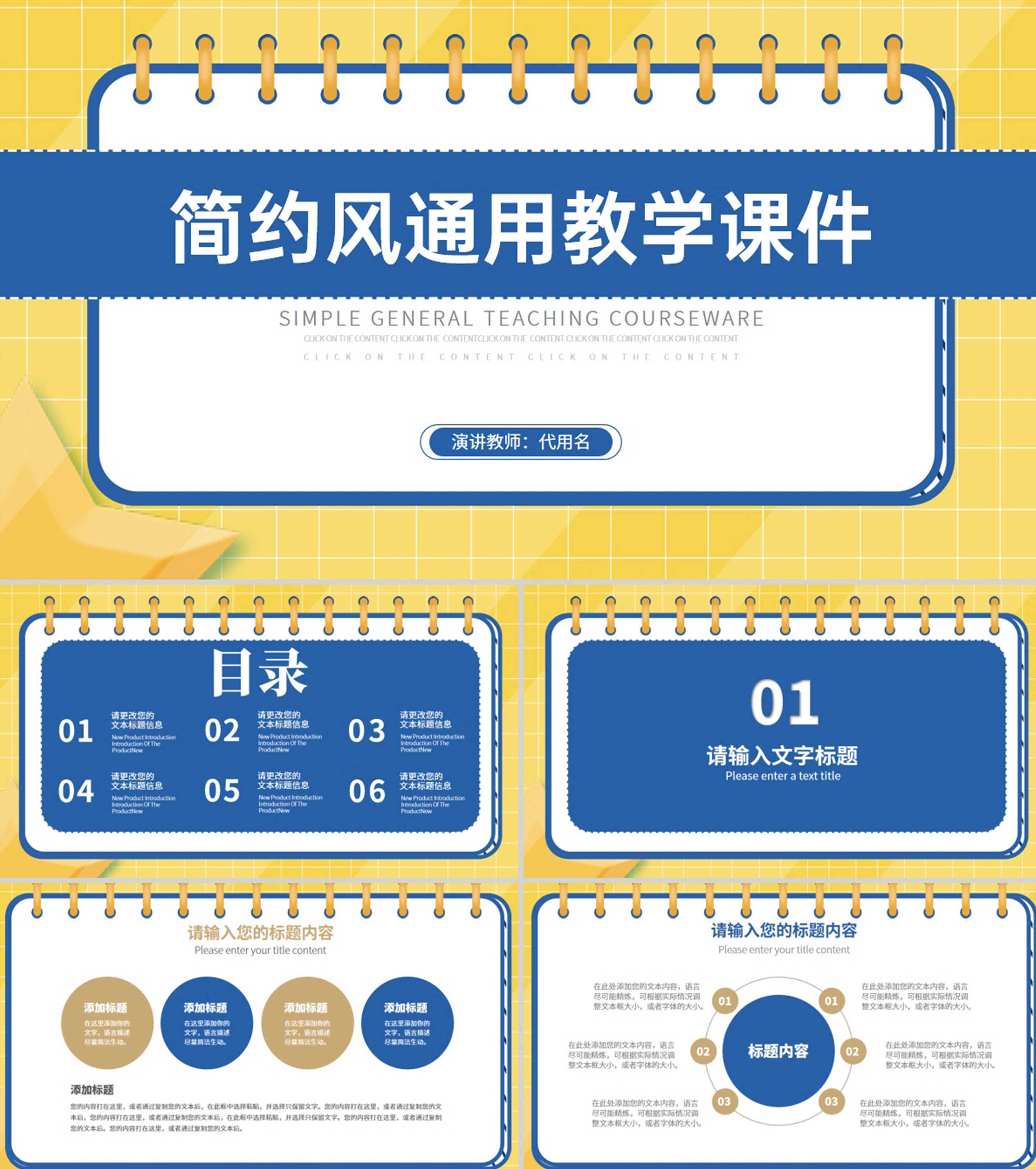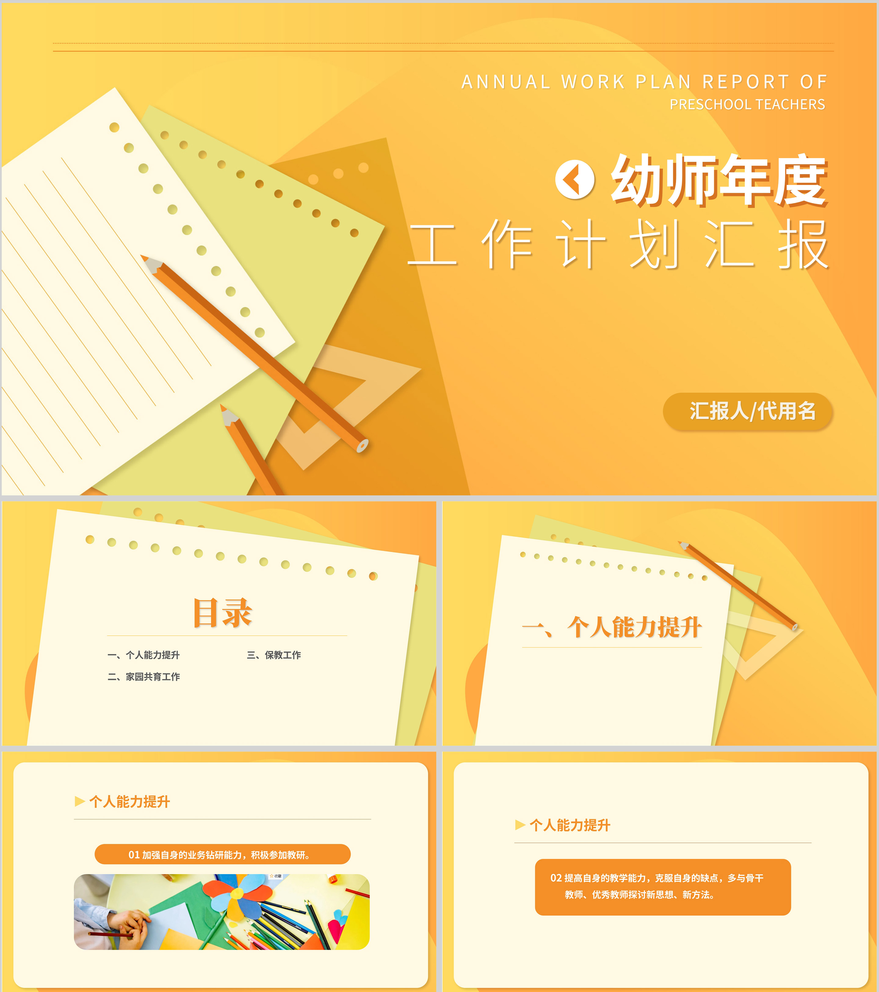 黄色扁平风文件幼师工作计划汇报PPT模板