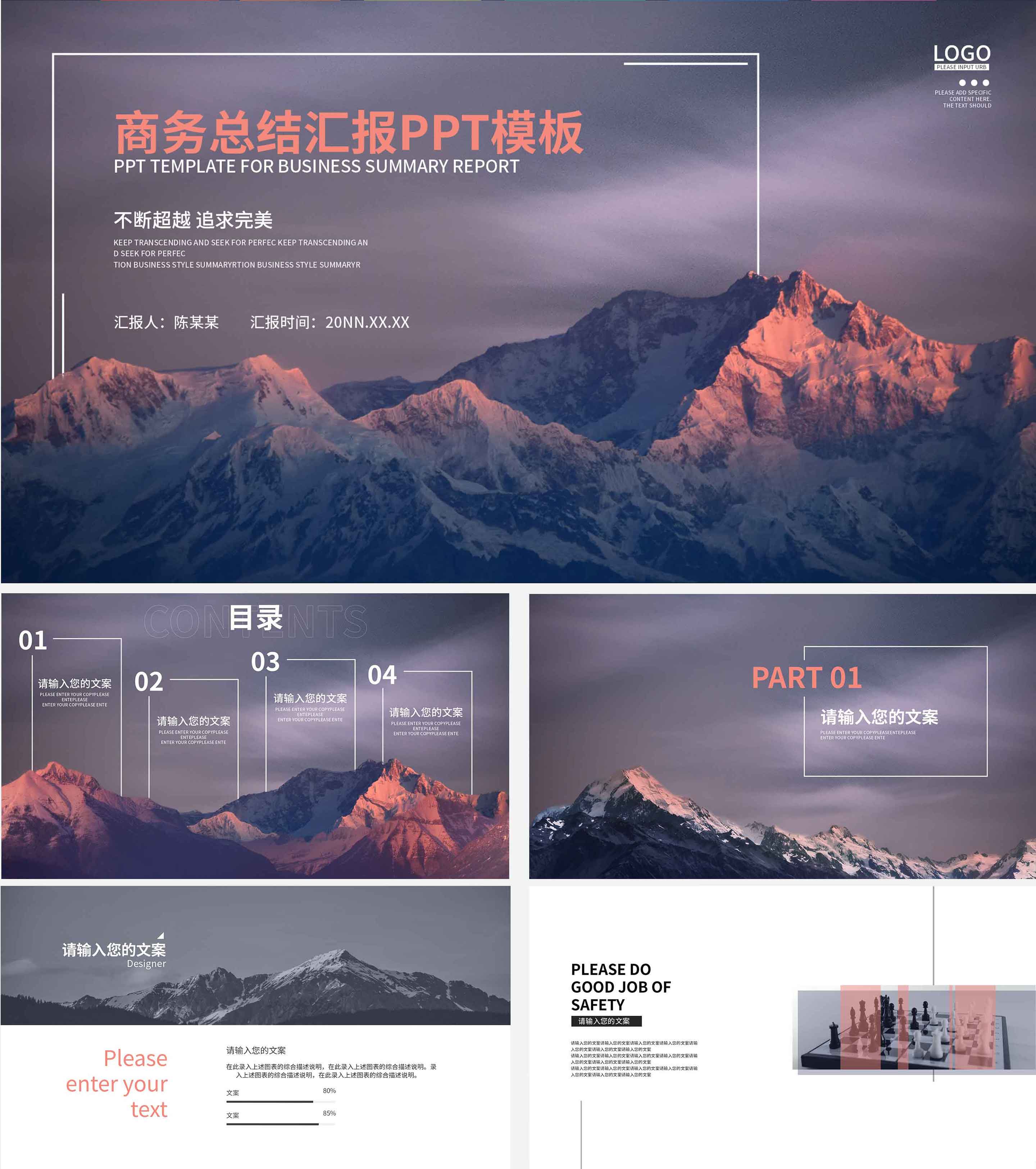 紫色商务总结汇报宣传PPT模板