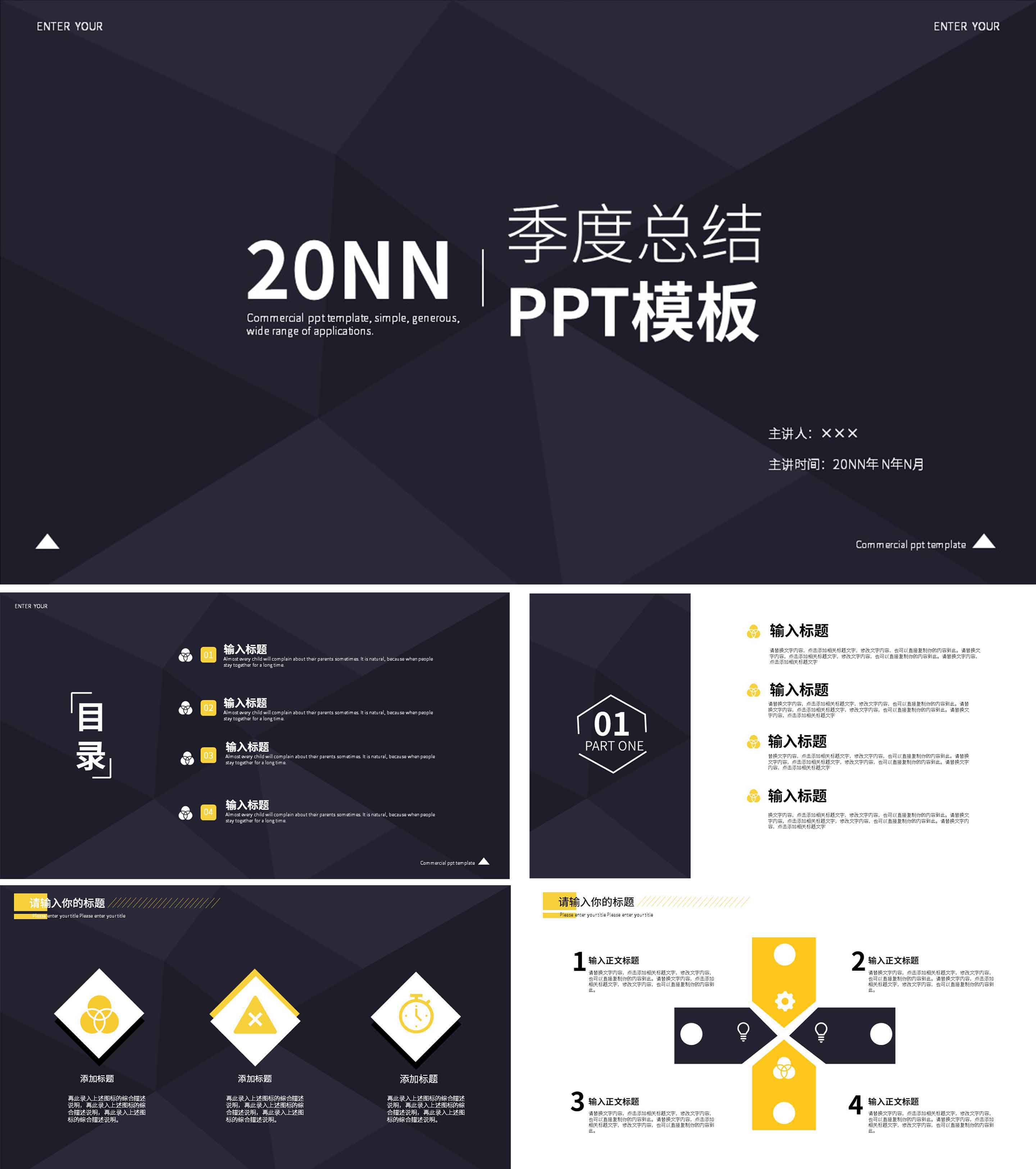 黑色简约季度总结PPT模板