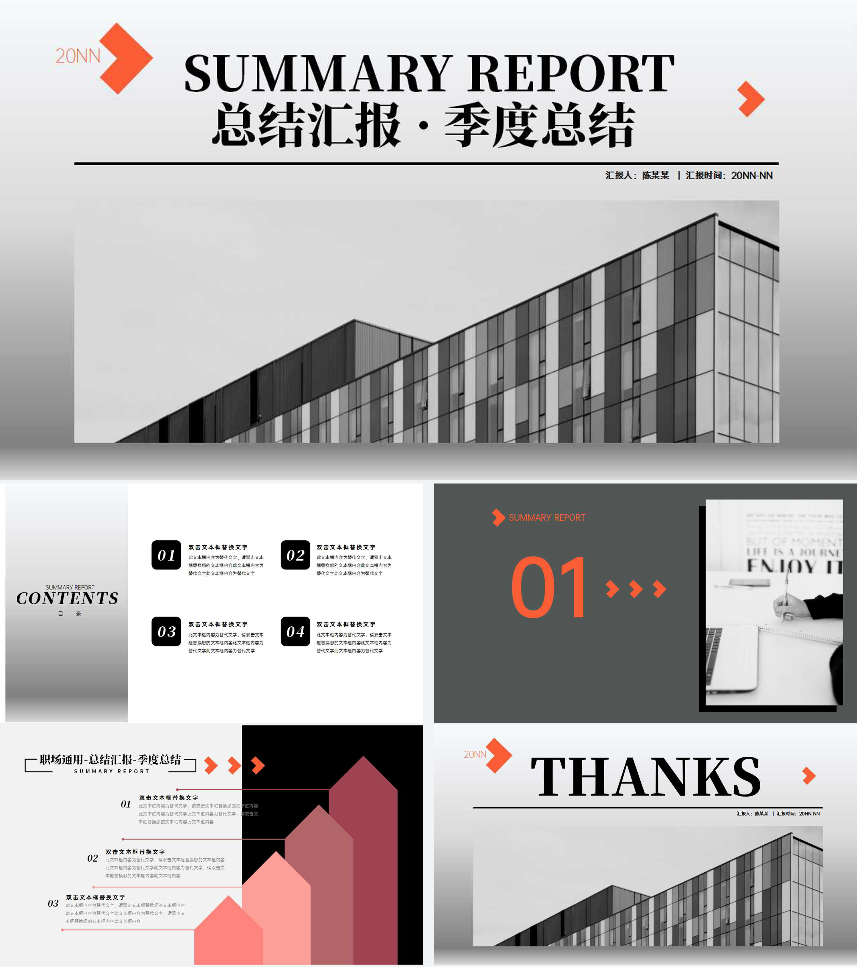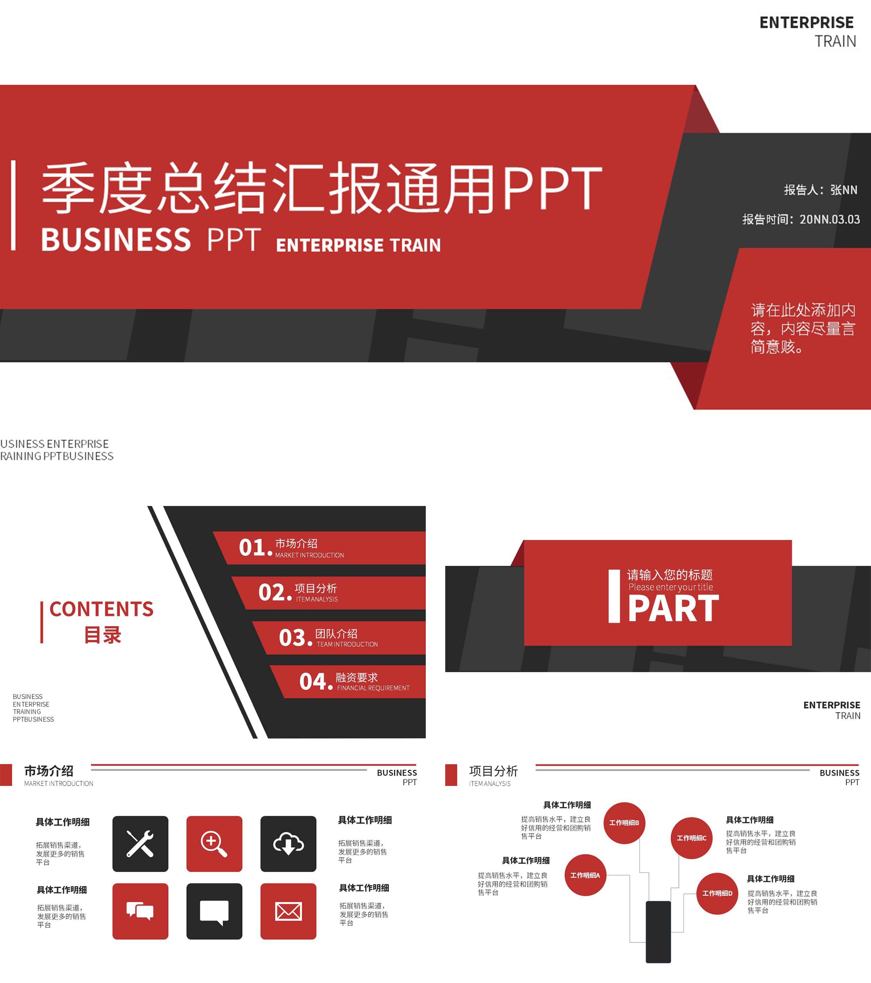 红色简约季度总结汇报通用PPT模板
