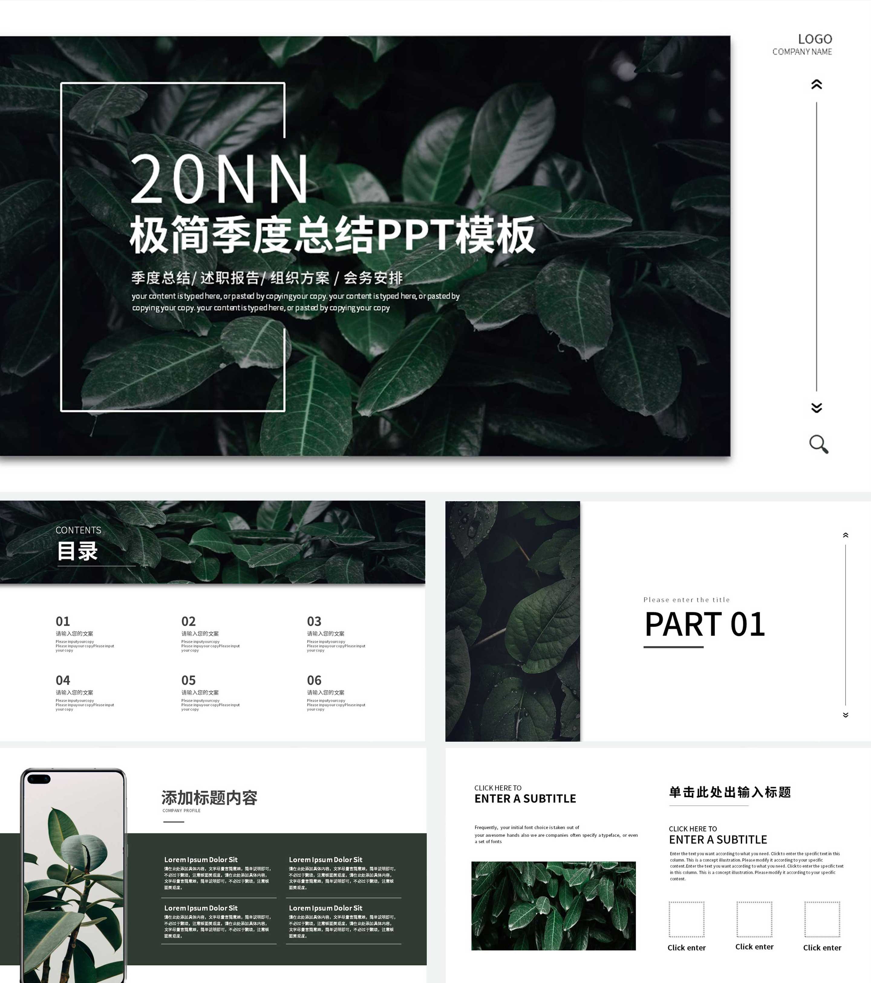 绿色简约绿植季度总结PPT模板