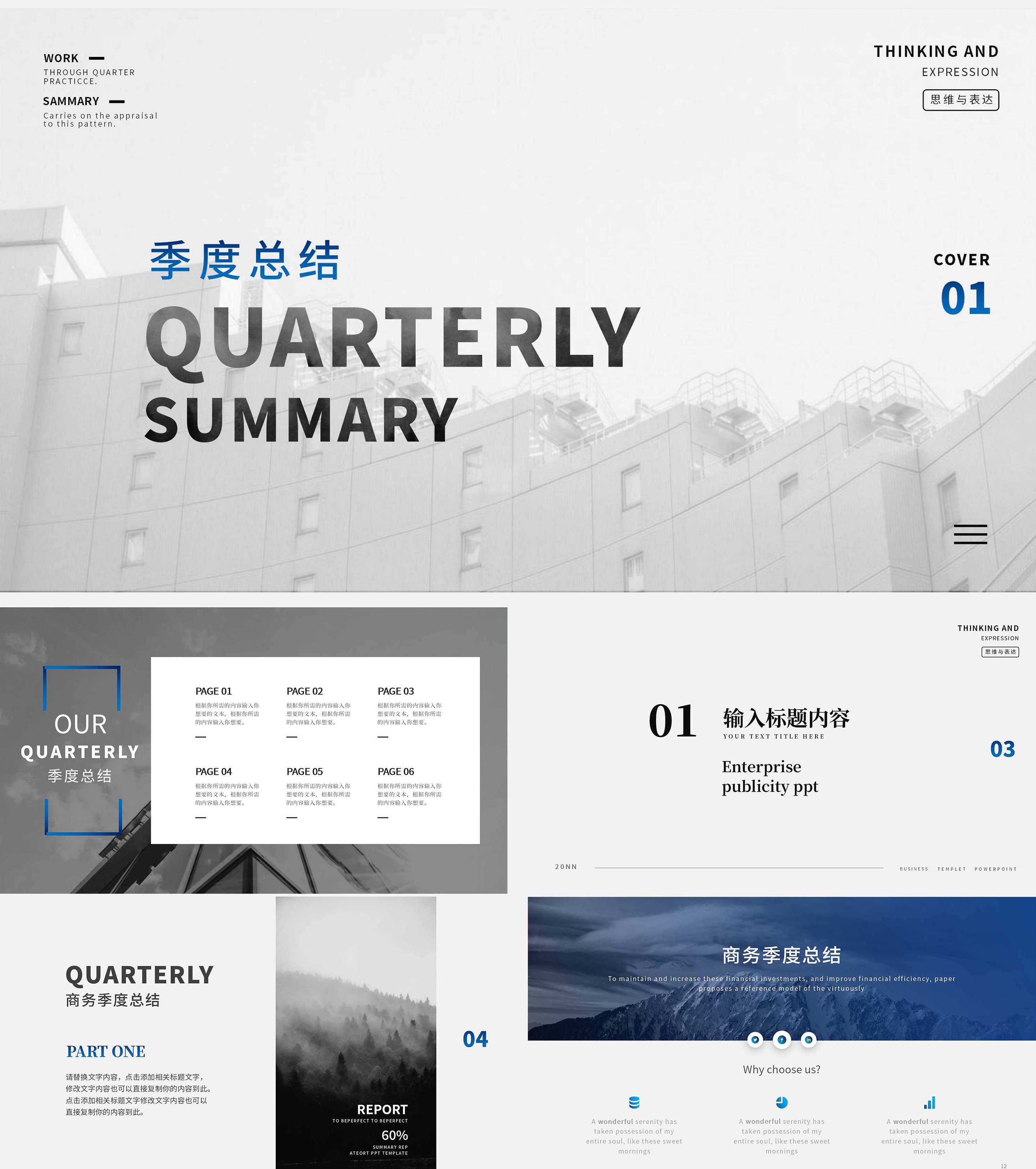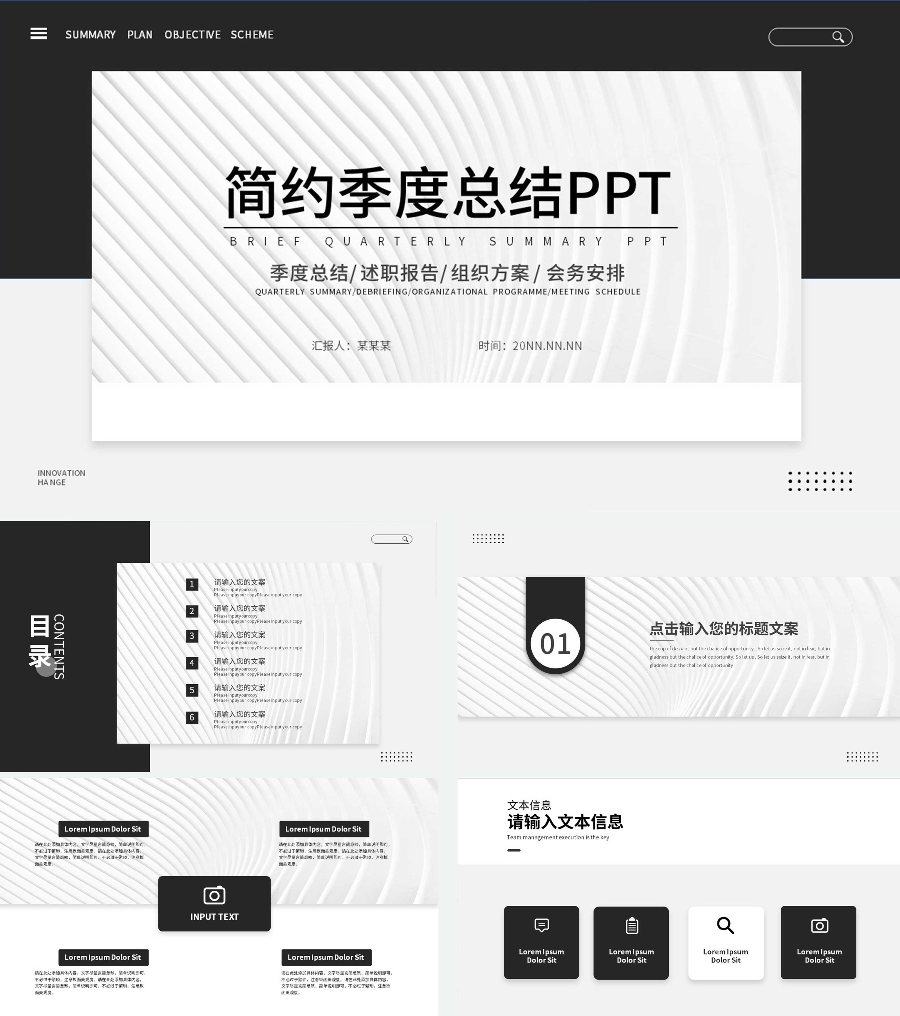 灰白黑简约季度总结PPT模板