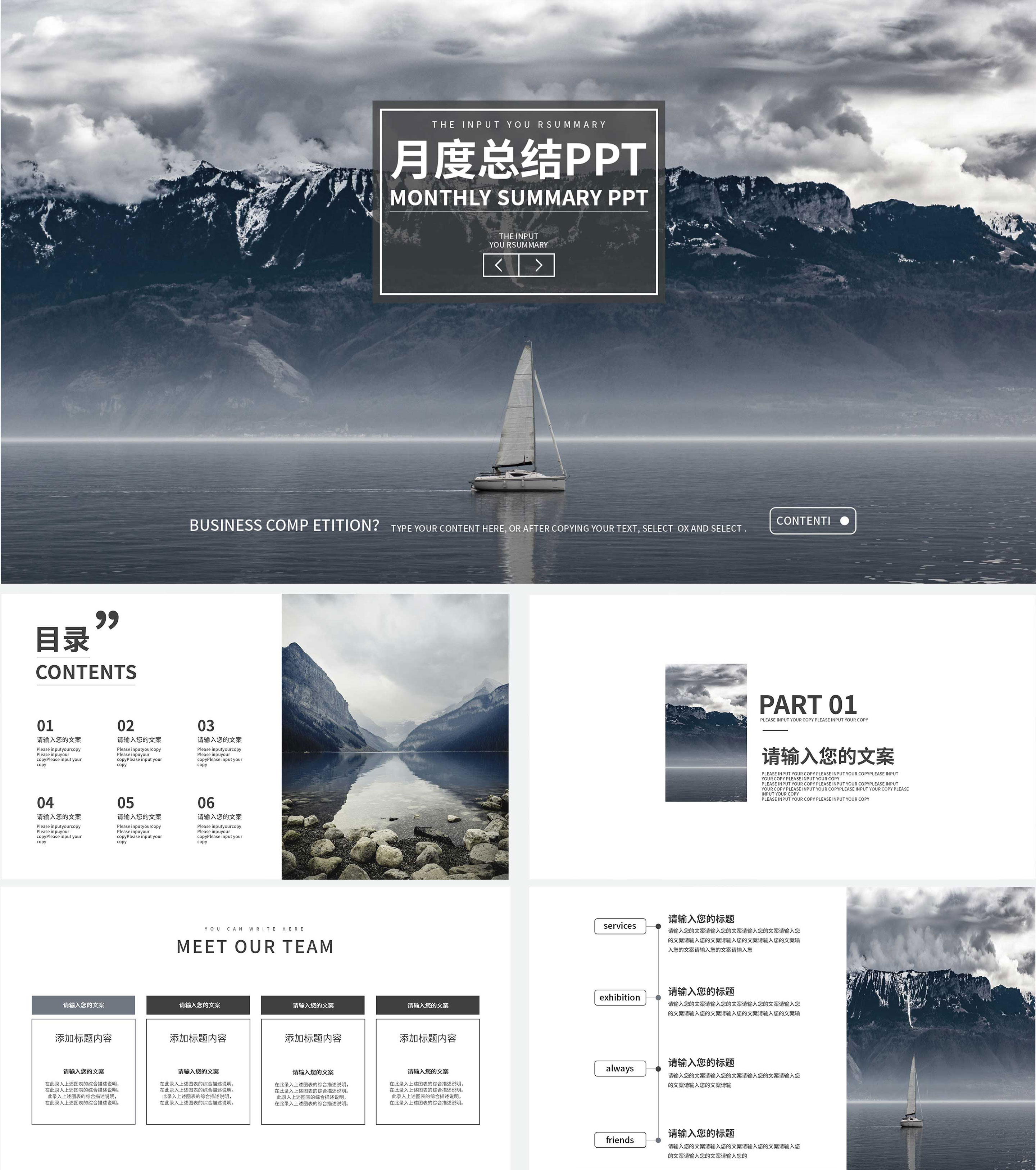 灰色风景简约月度总结PPT模板