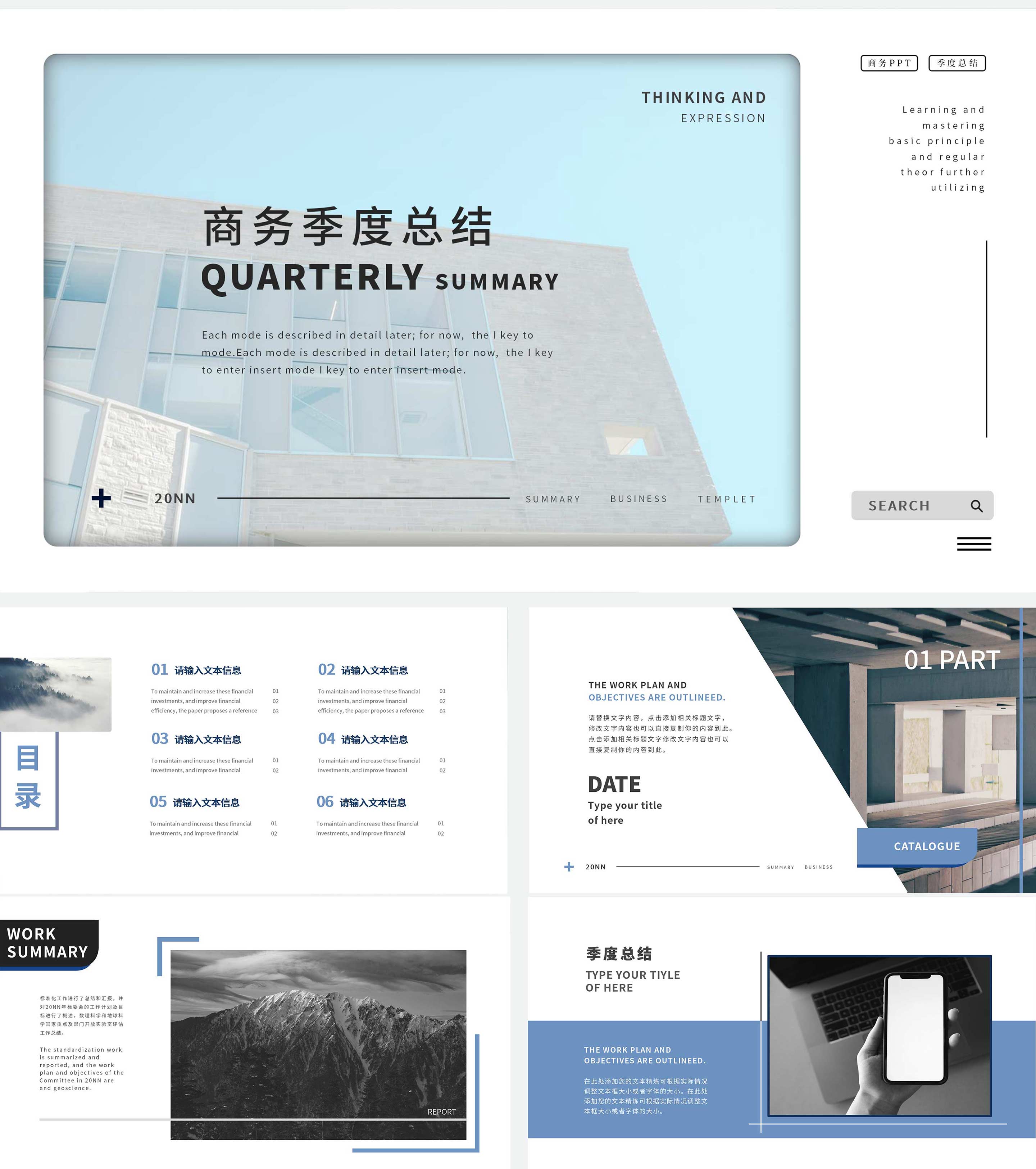 蓝色简约商务风季度总结PPT模板