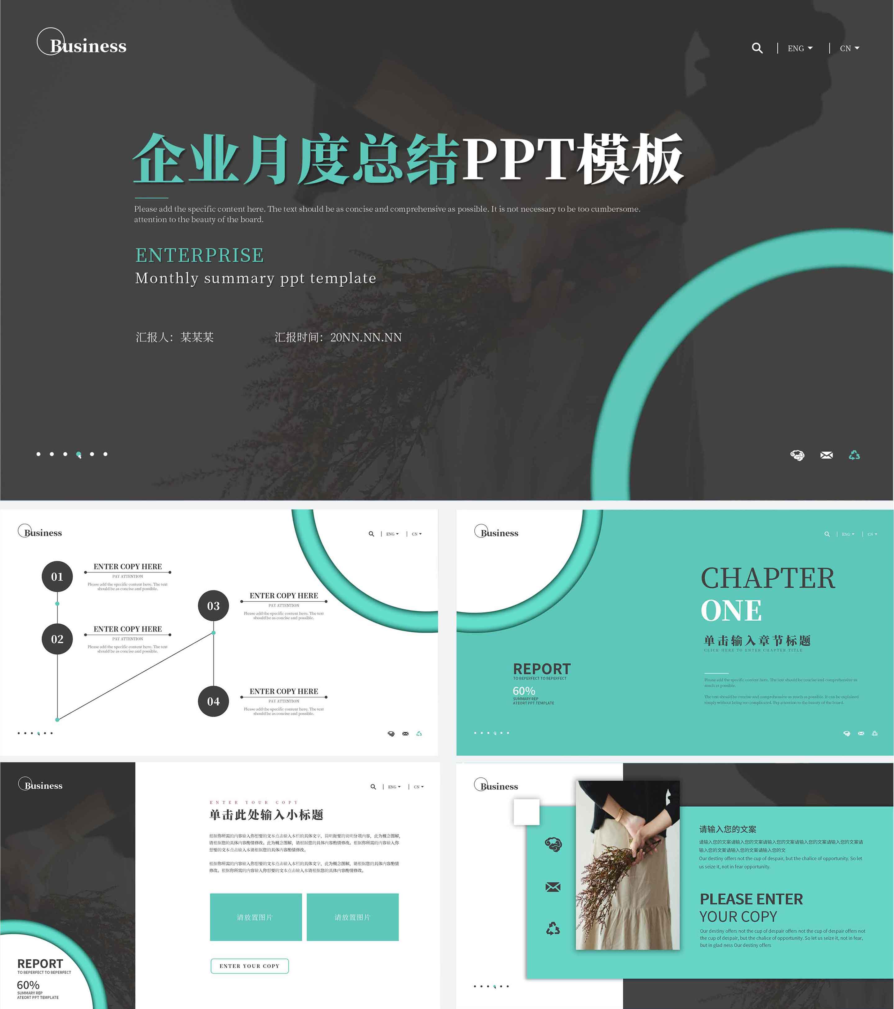 黑绿撞色简约企业月度总结PPT模板
