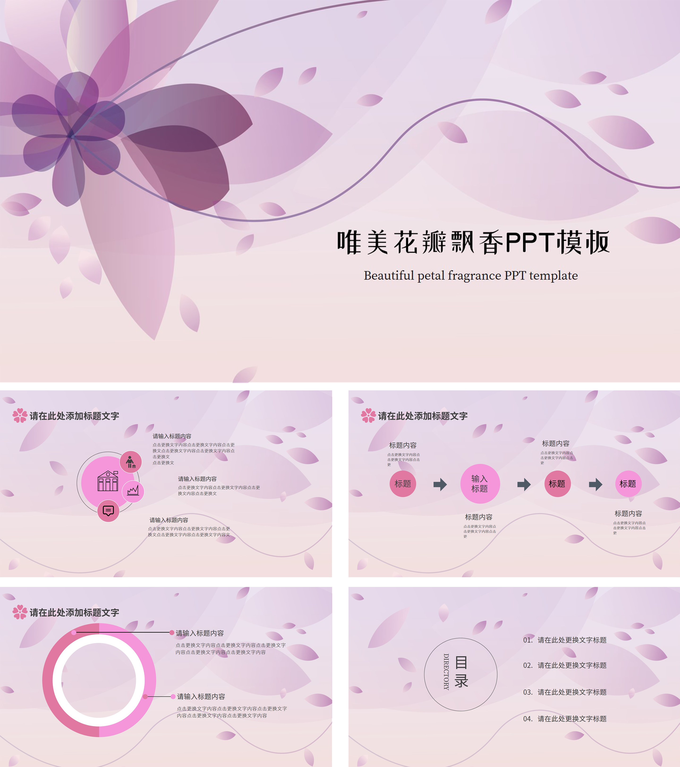 紫色唯美花瓣飘香总结PPT模板
