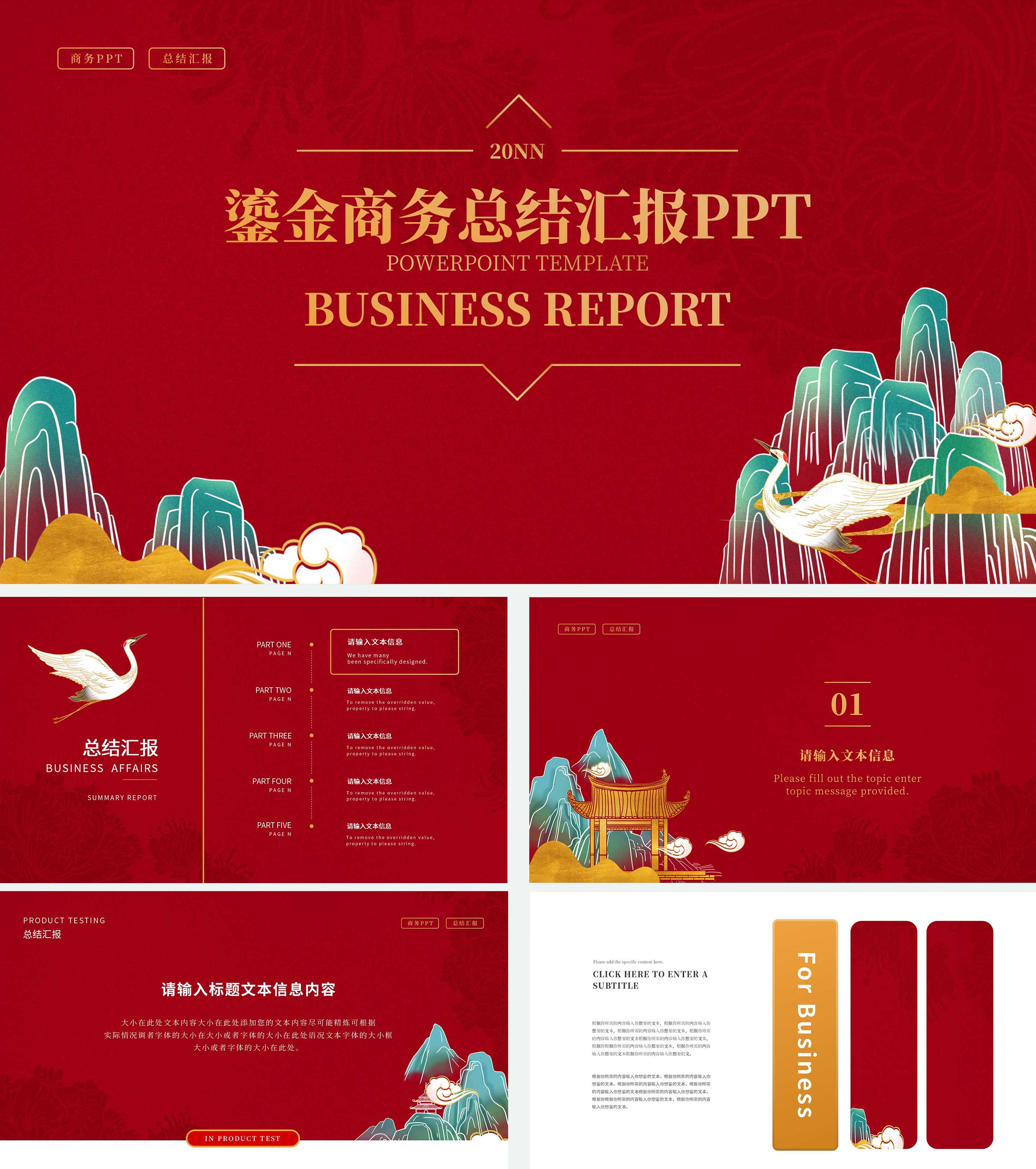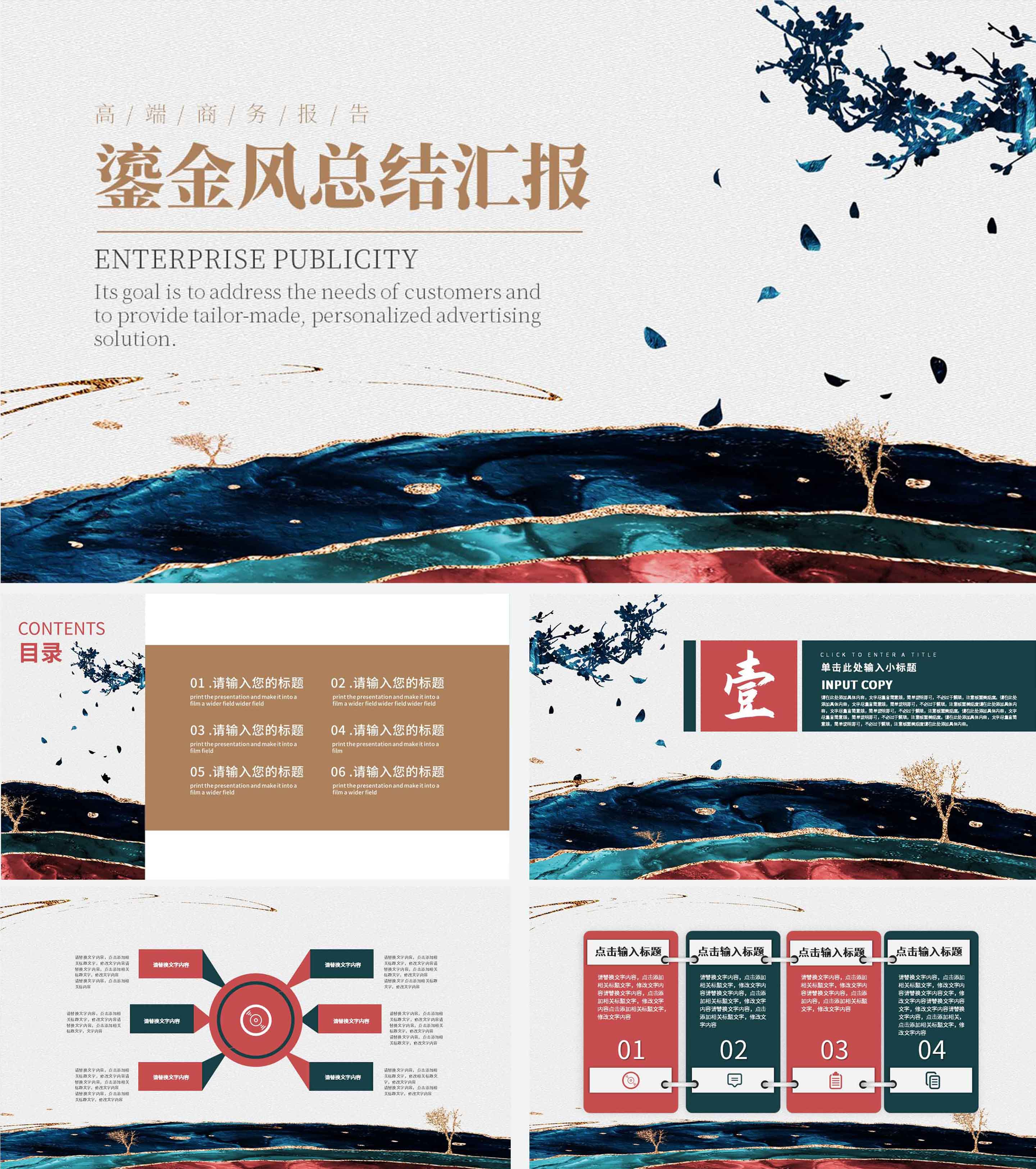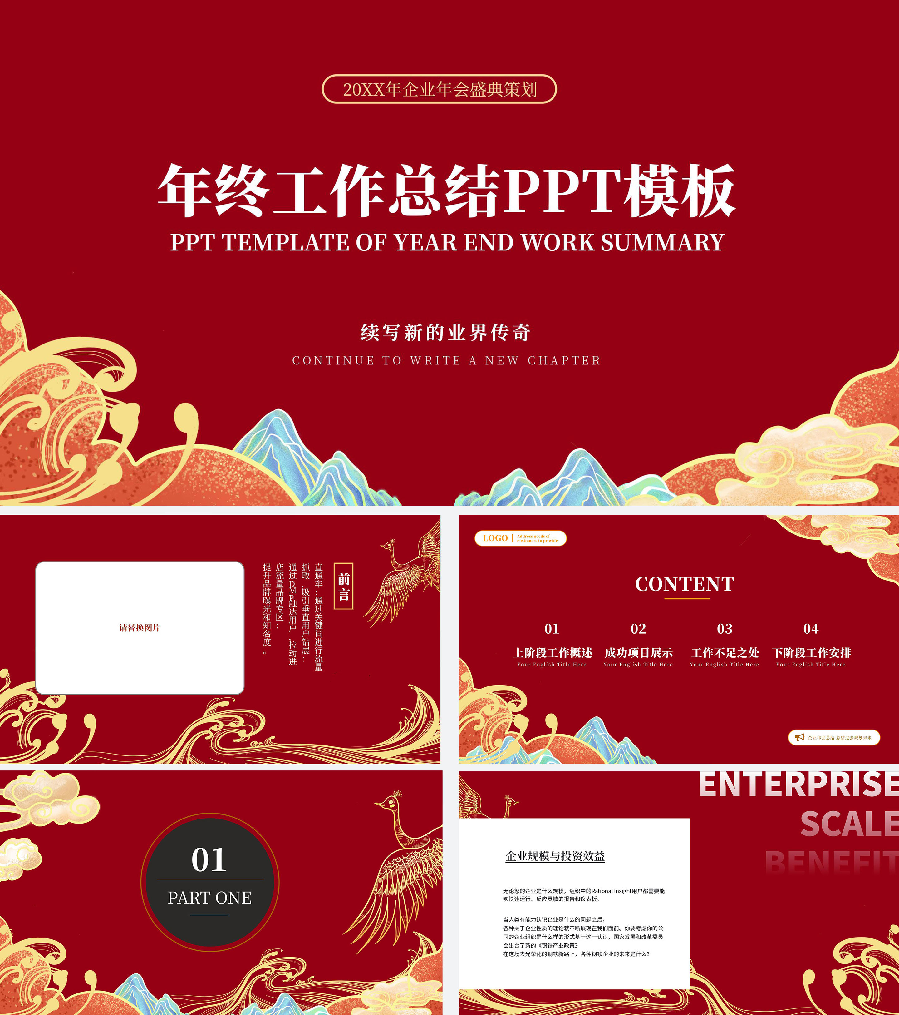 中国红山水年终总结PPT模板