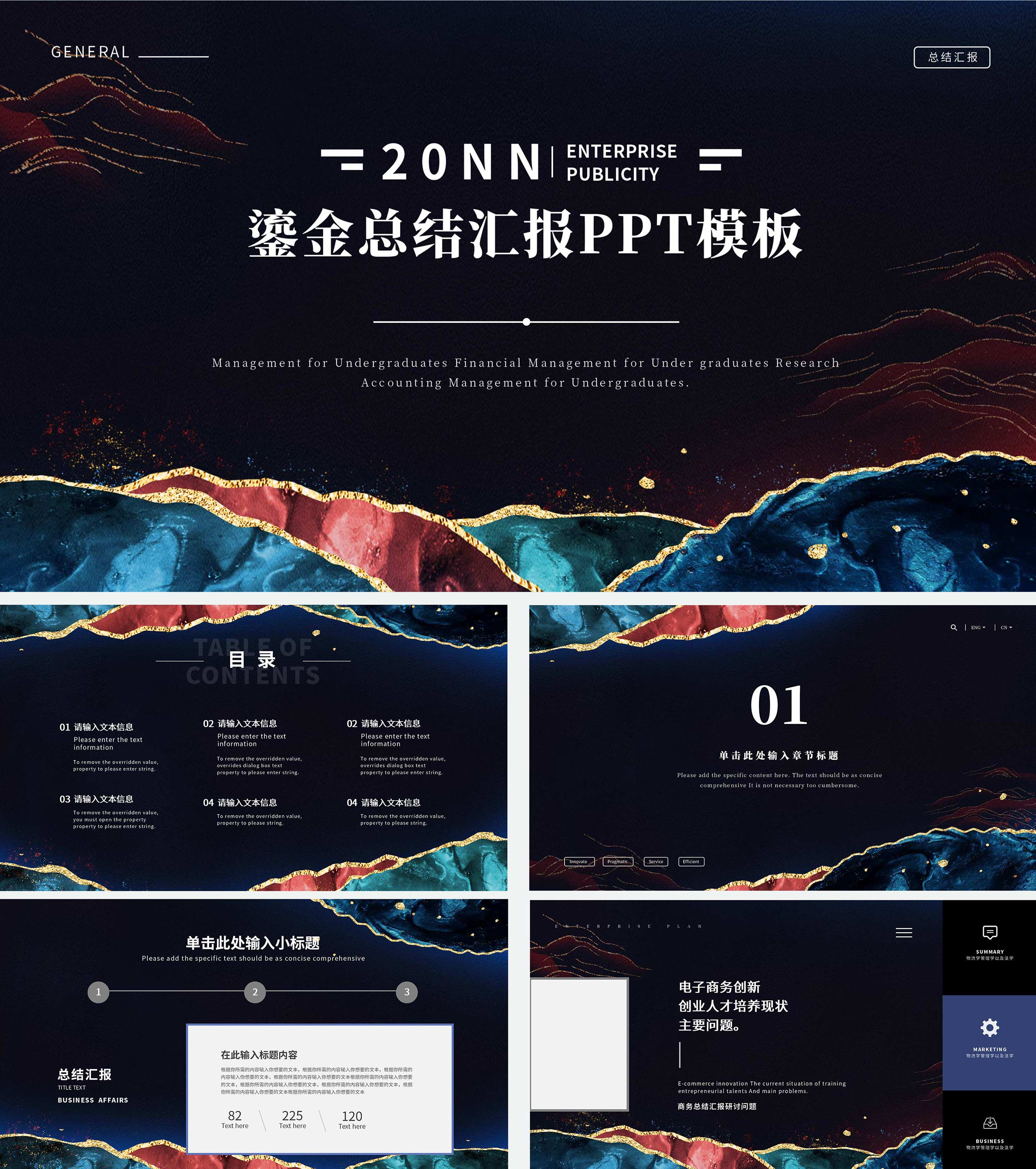 黑色简约鎏金风总结汇报PPT模板