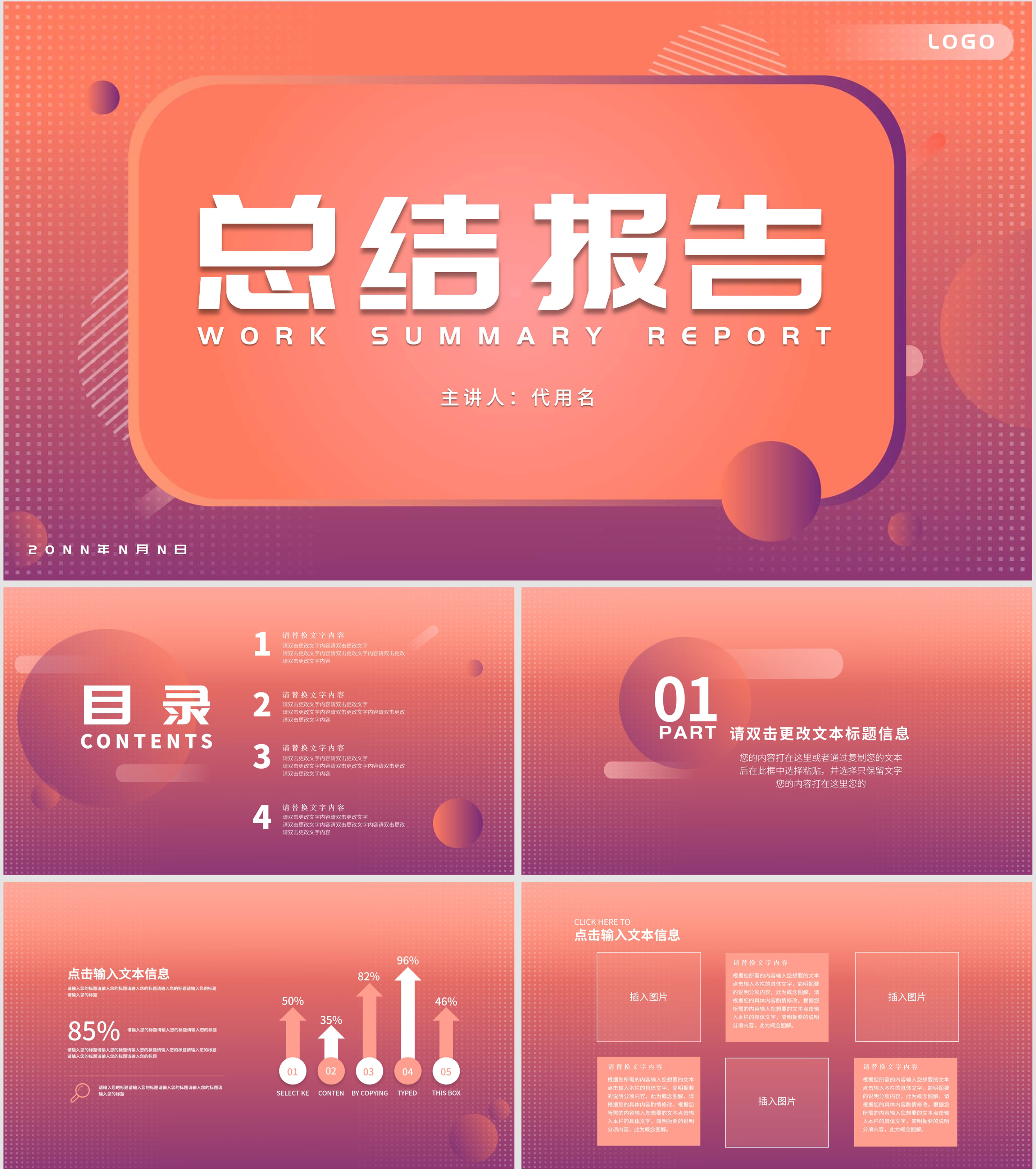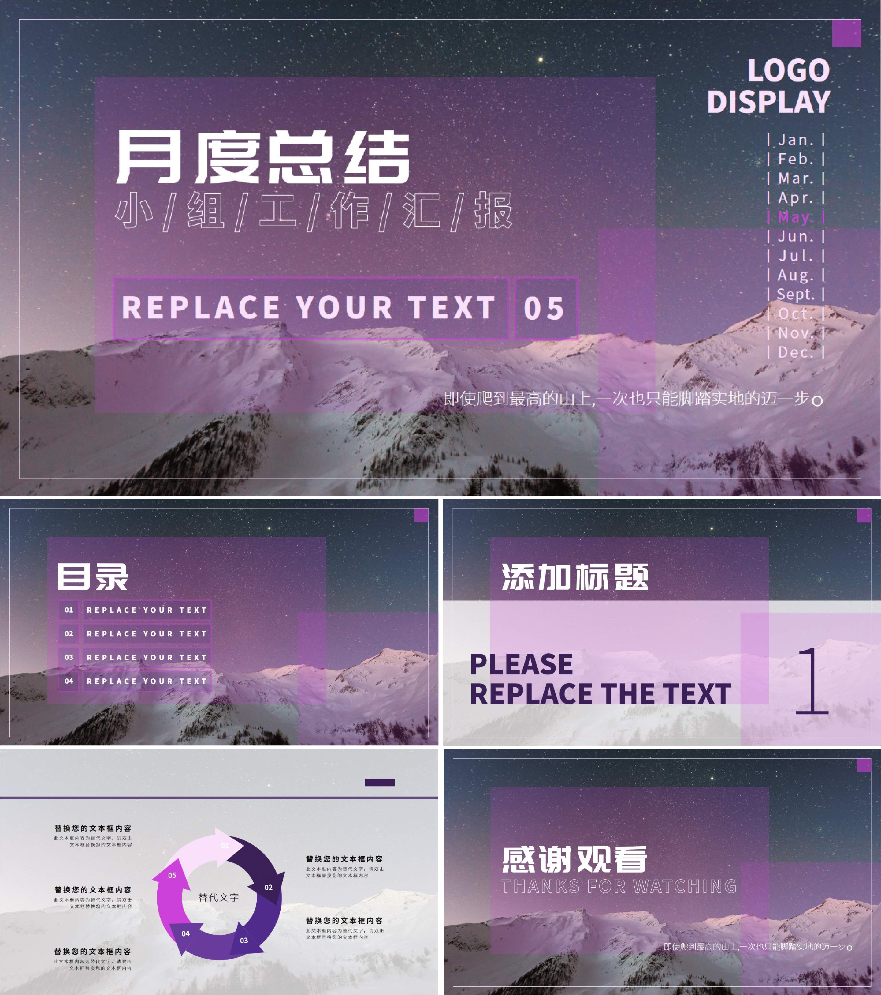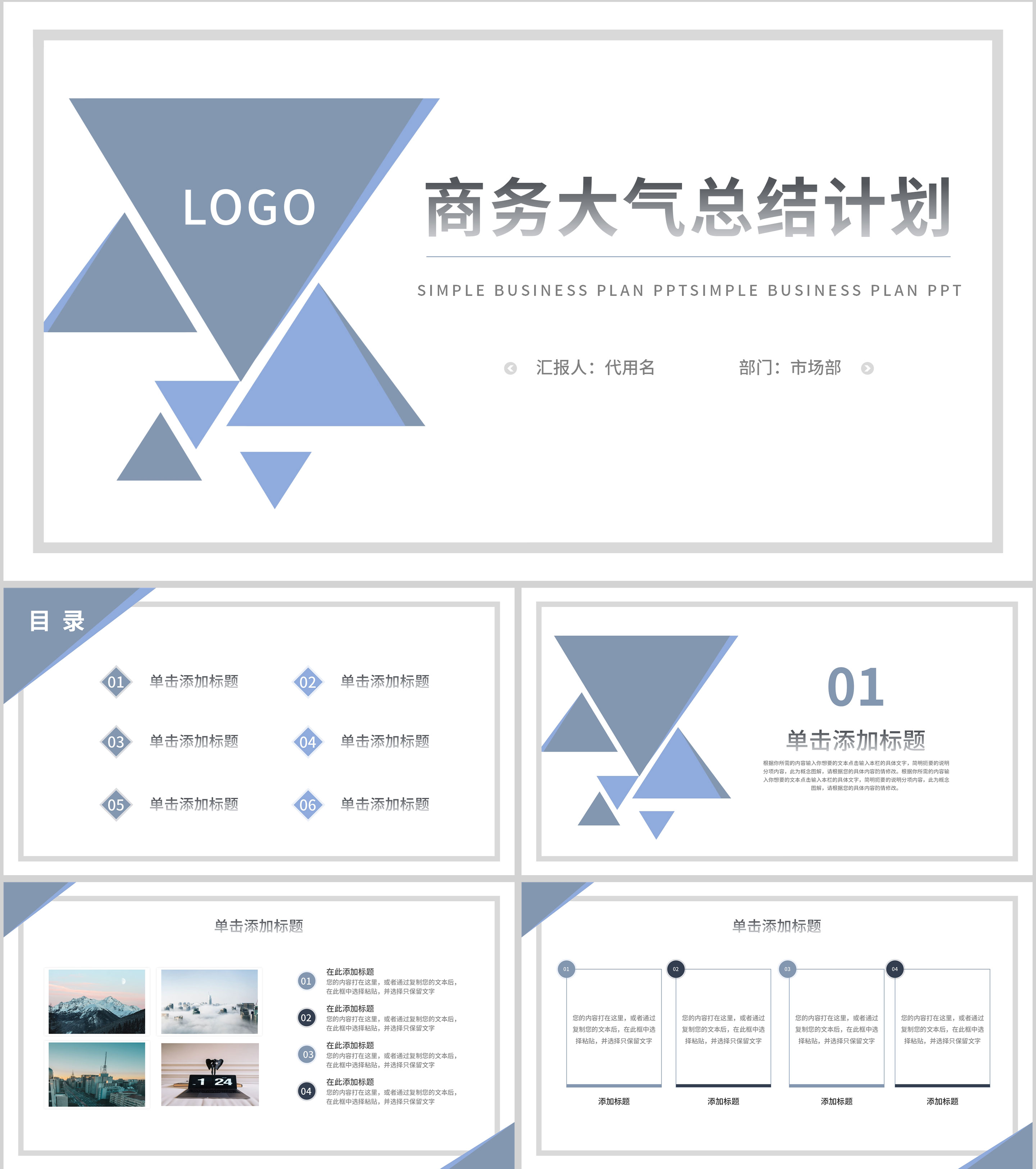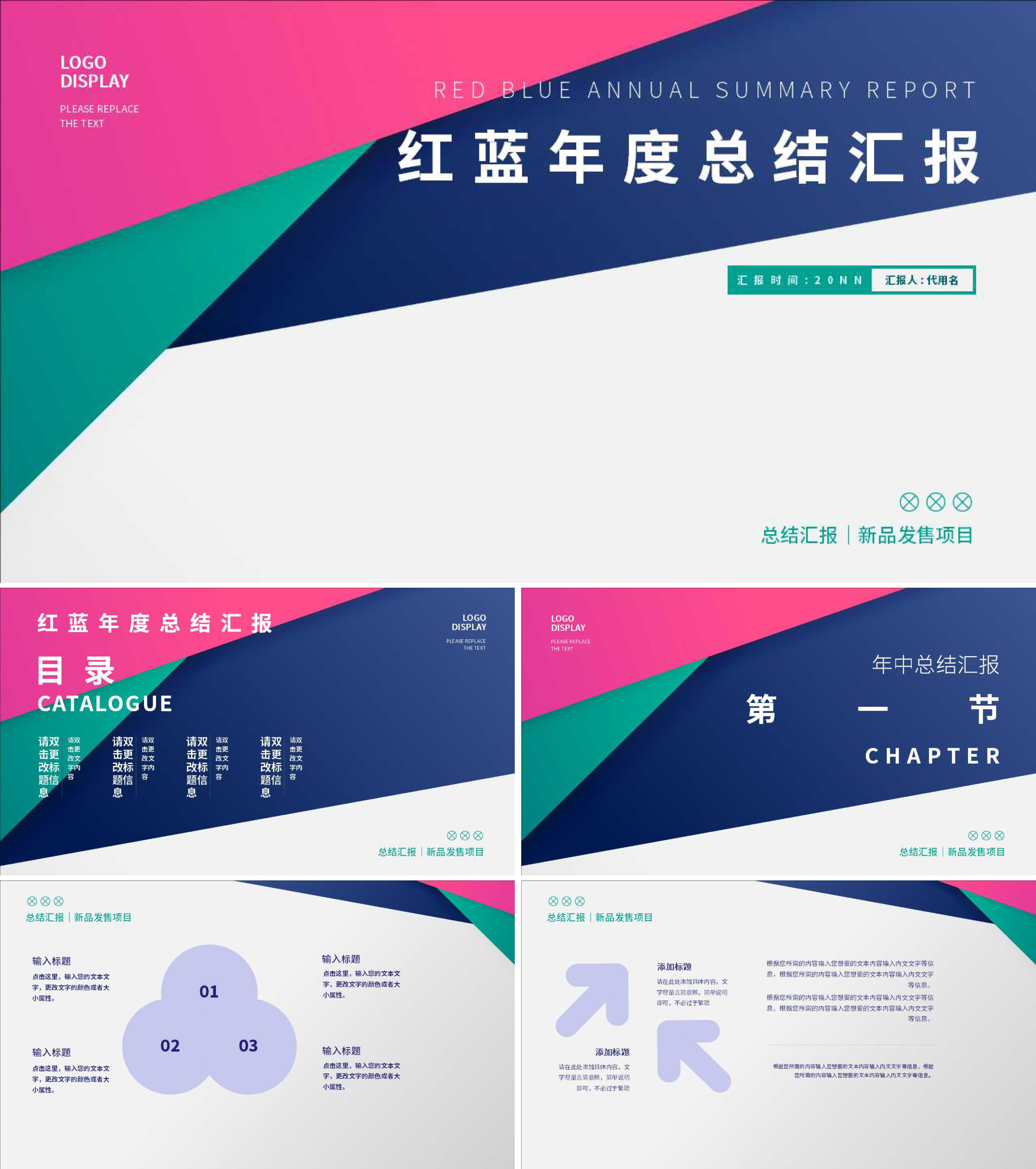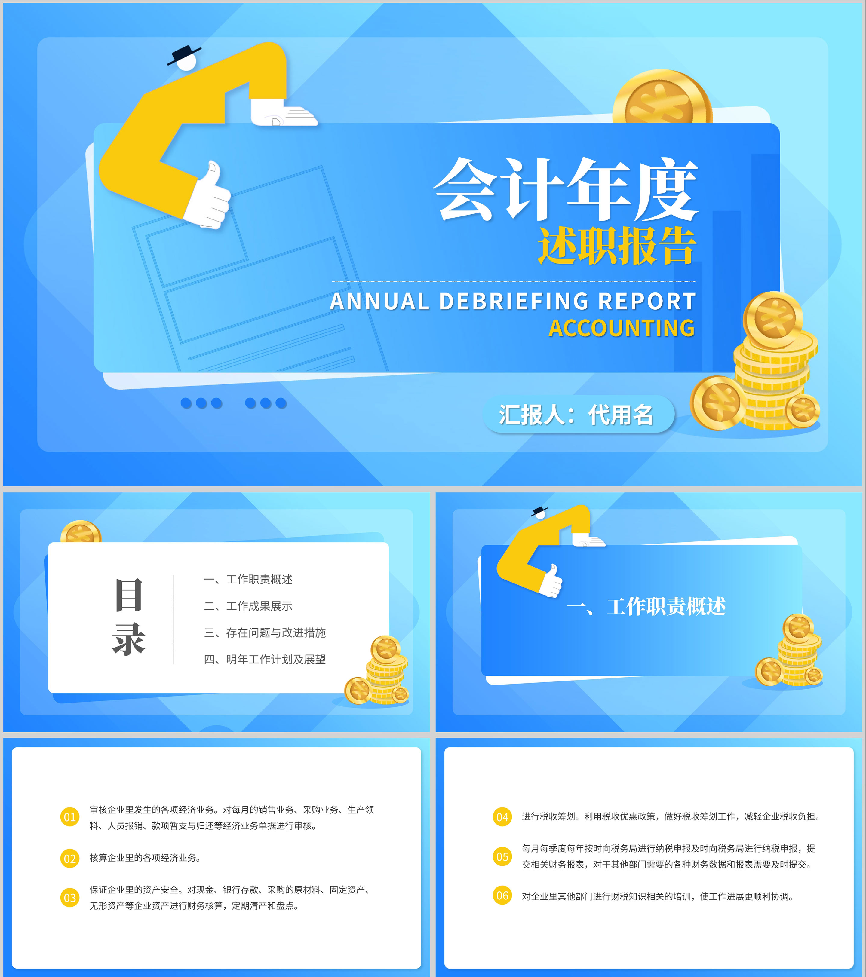 蓝色扁平风会计年度数据总结汇报PPT模板