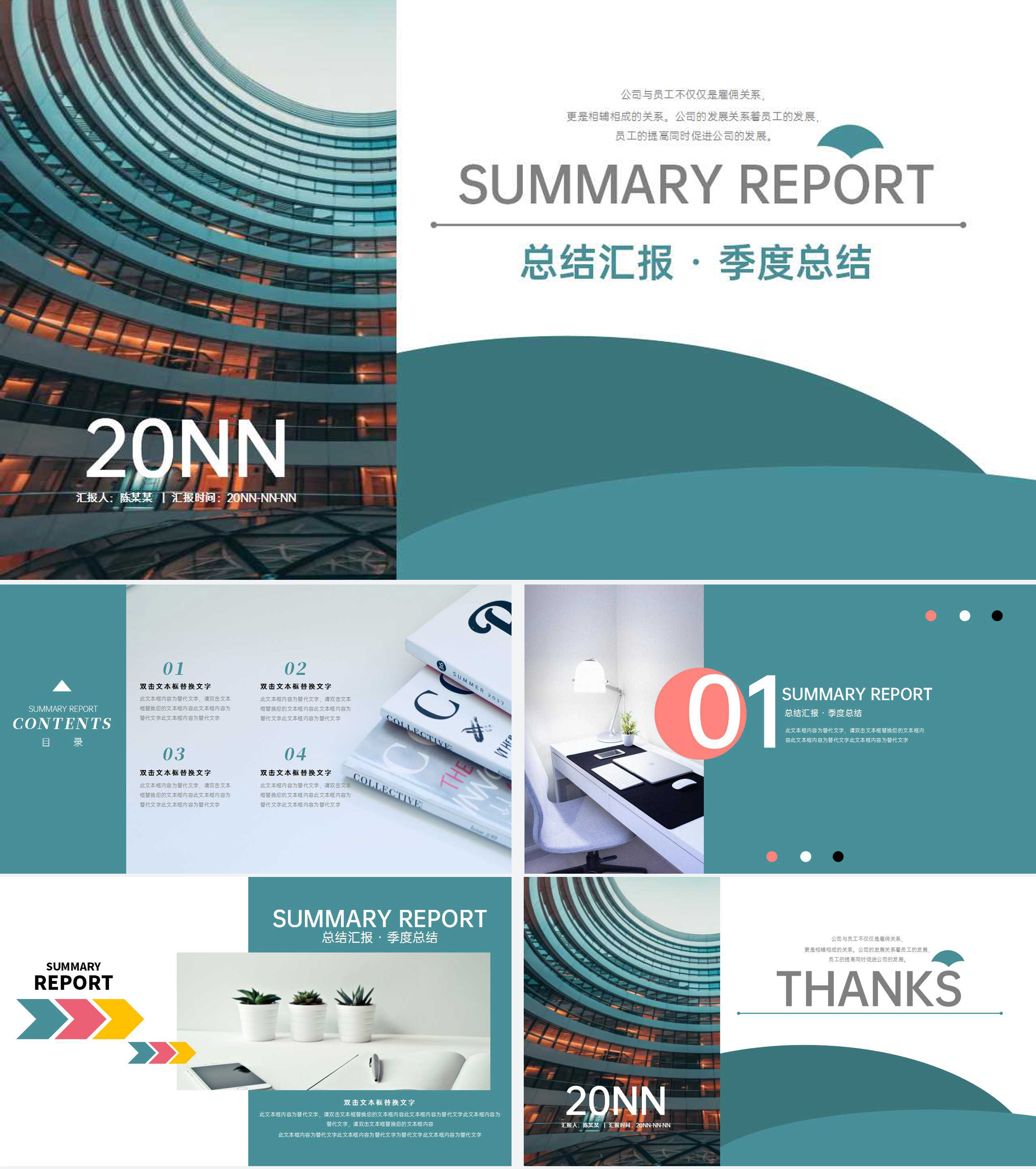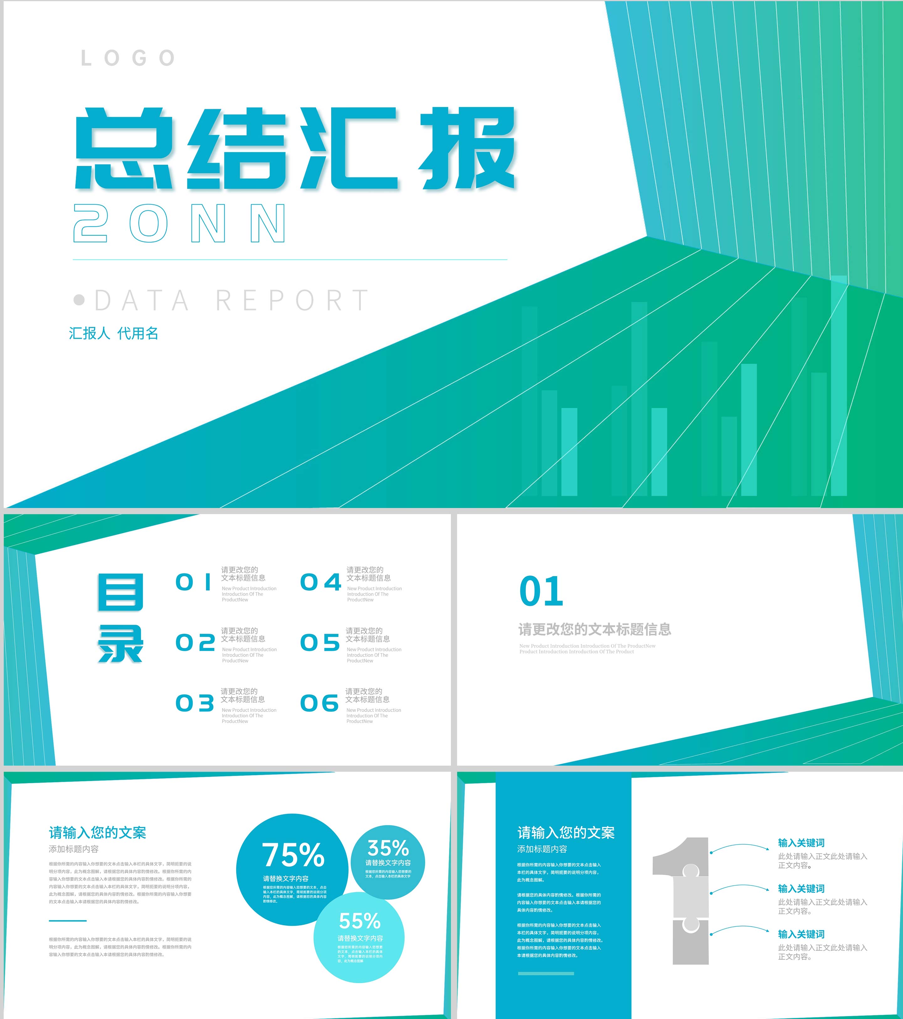 绿色线条简约风总结汇报PPT模板