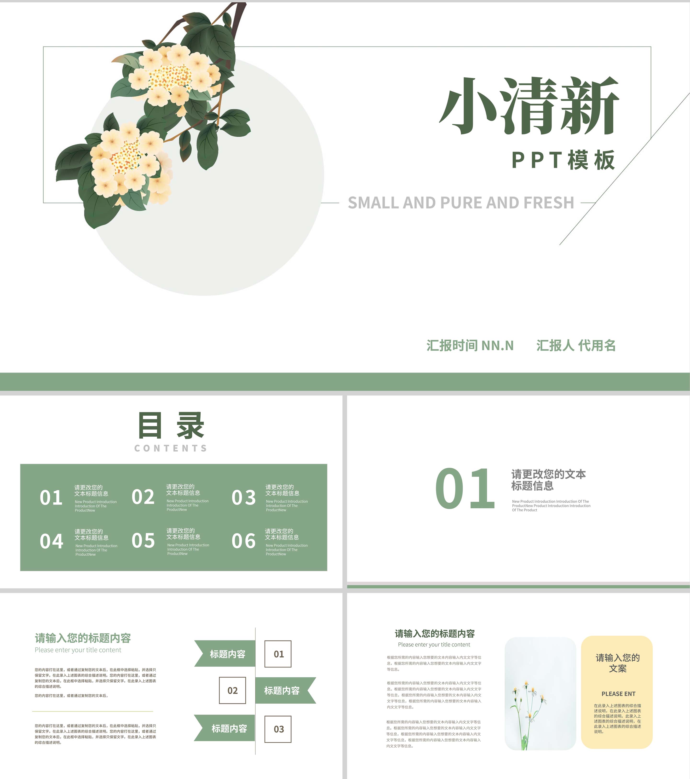 绿色小清新总结汇报PPT模板