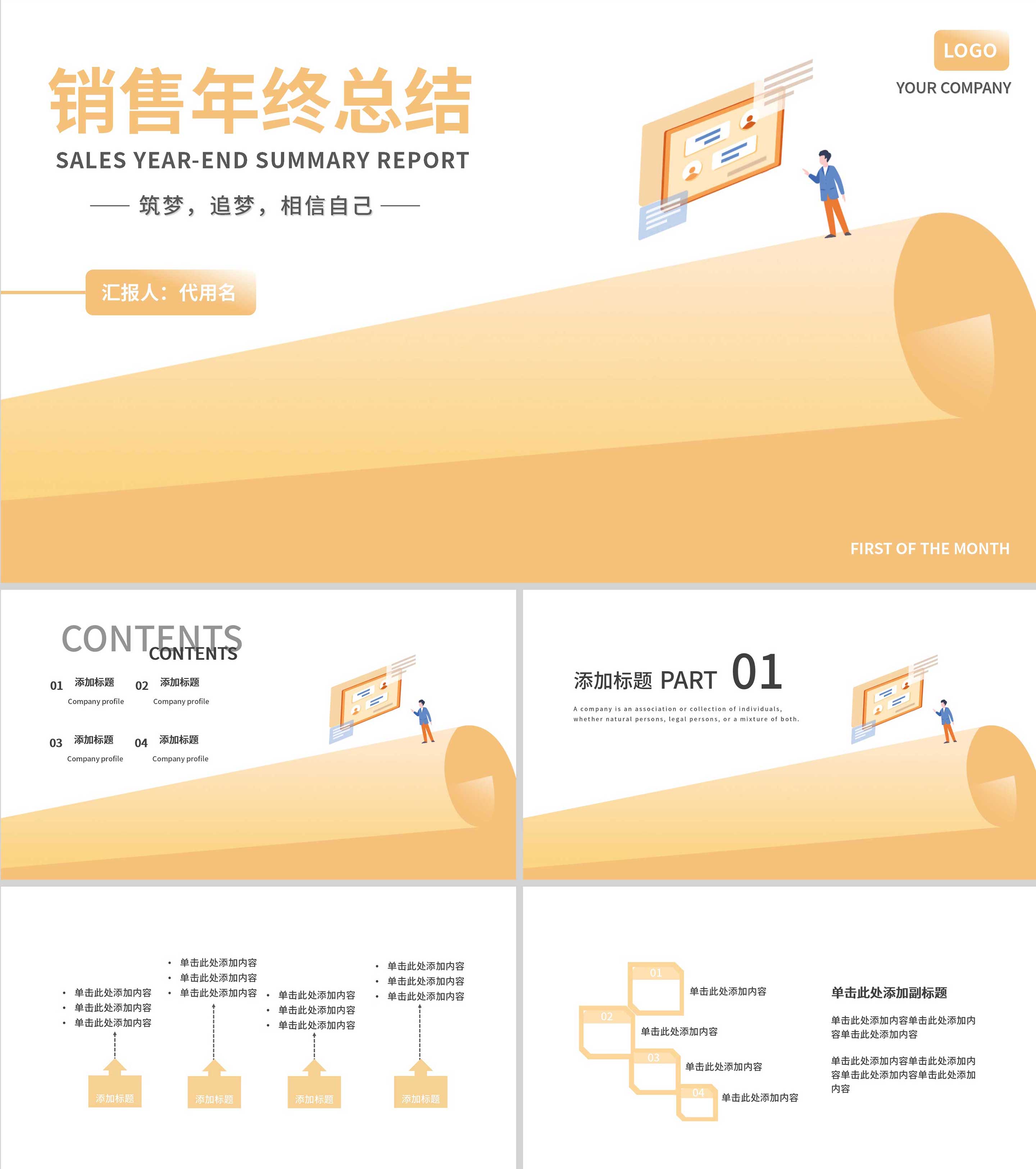 黄色插画风销售年终总结汇报PPT模板