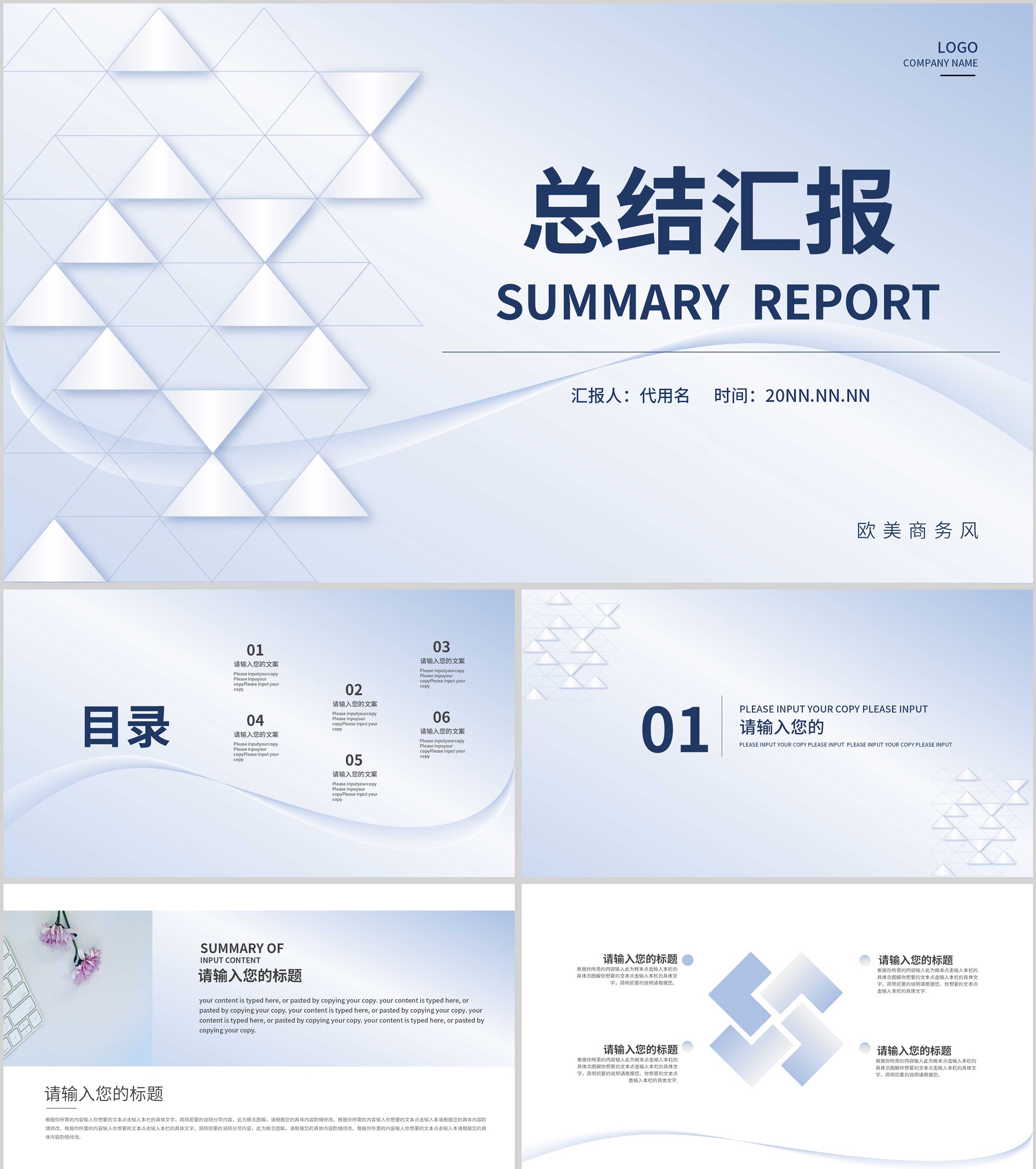 蓝色小清新几何总结汇报PPT模板