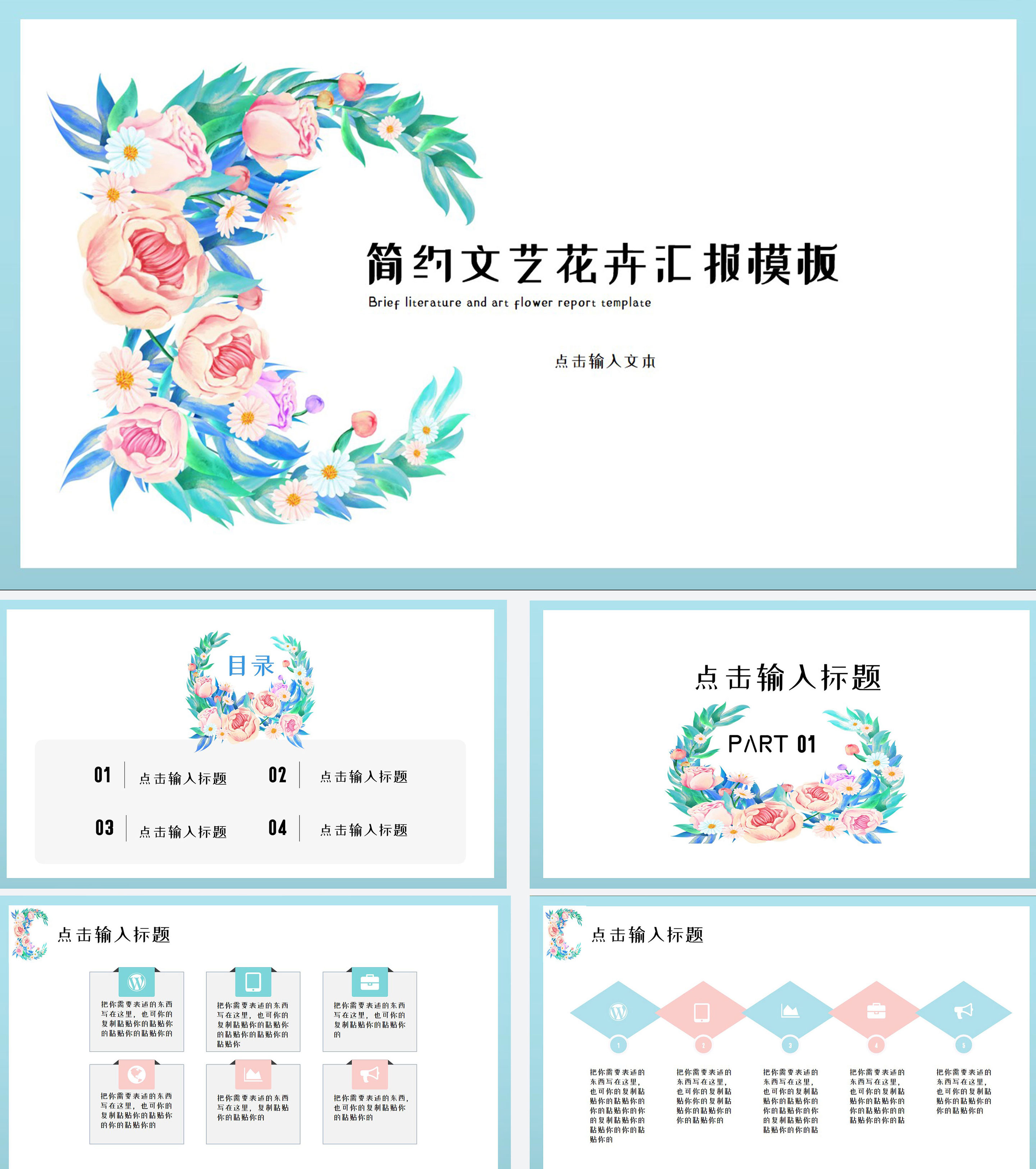 绿色文艺花卉总结汇报PPT模板