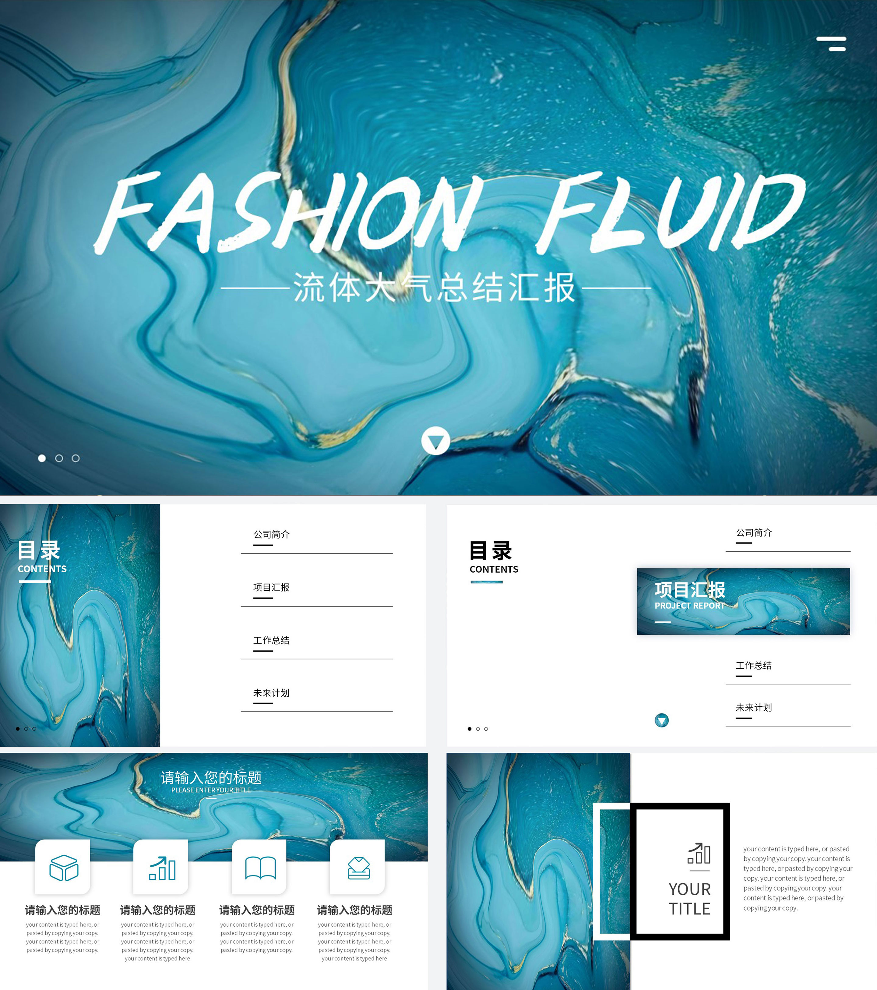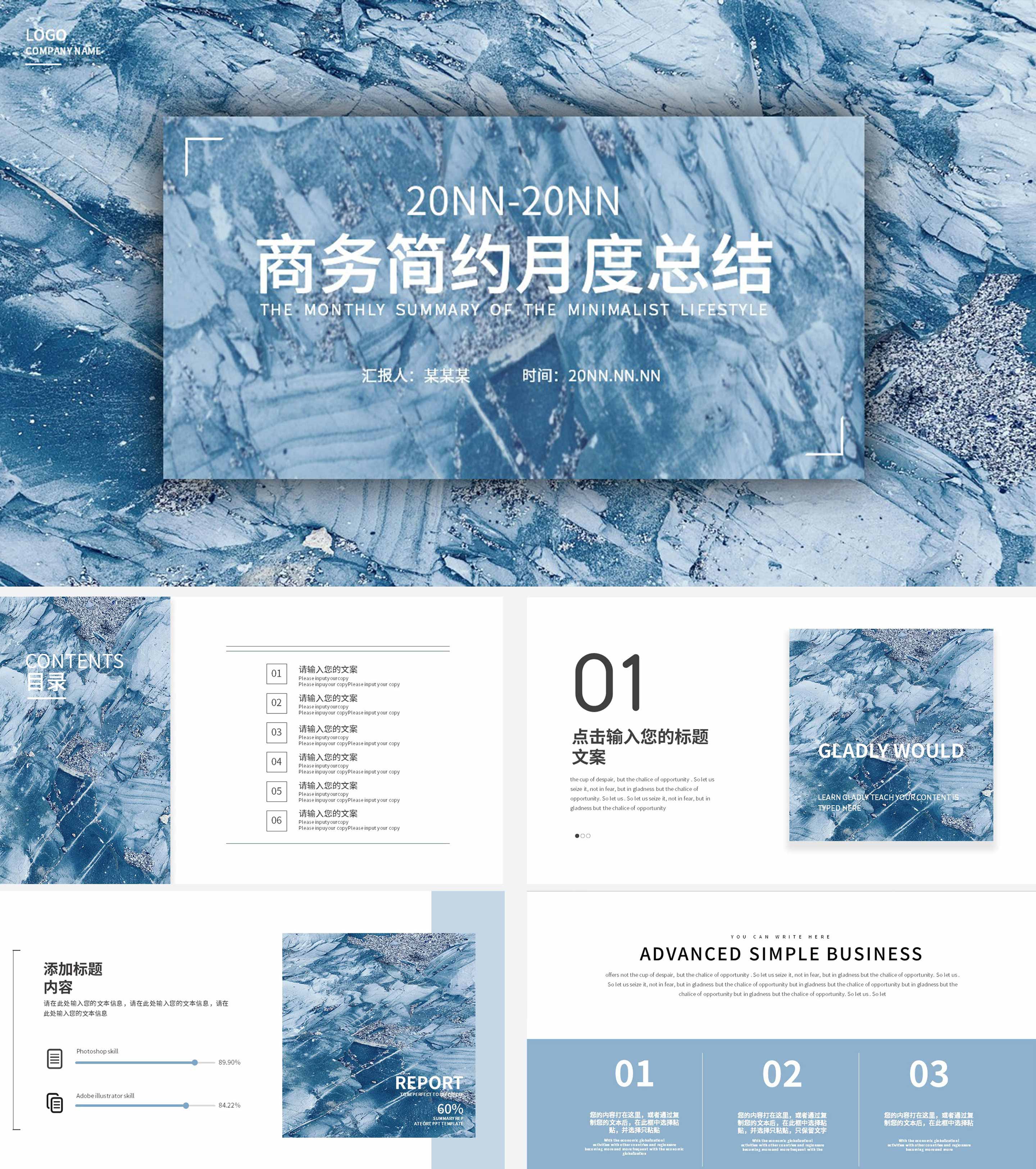 蓝色简约商务总结汇报PPT模板