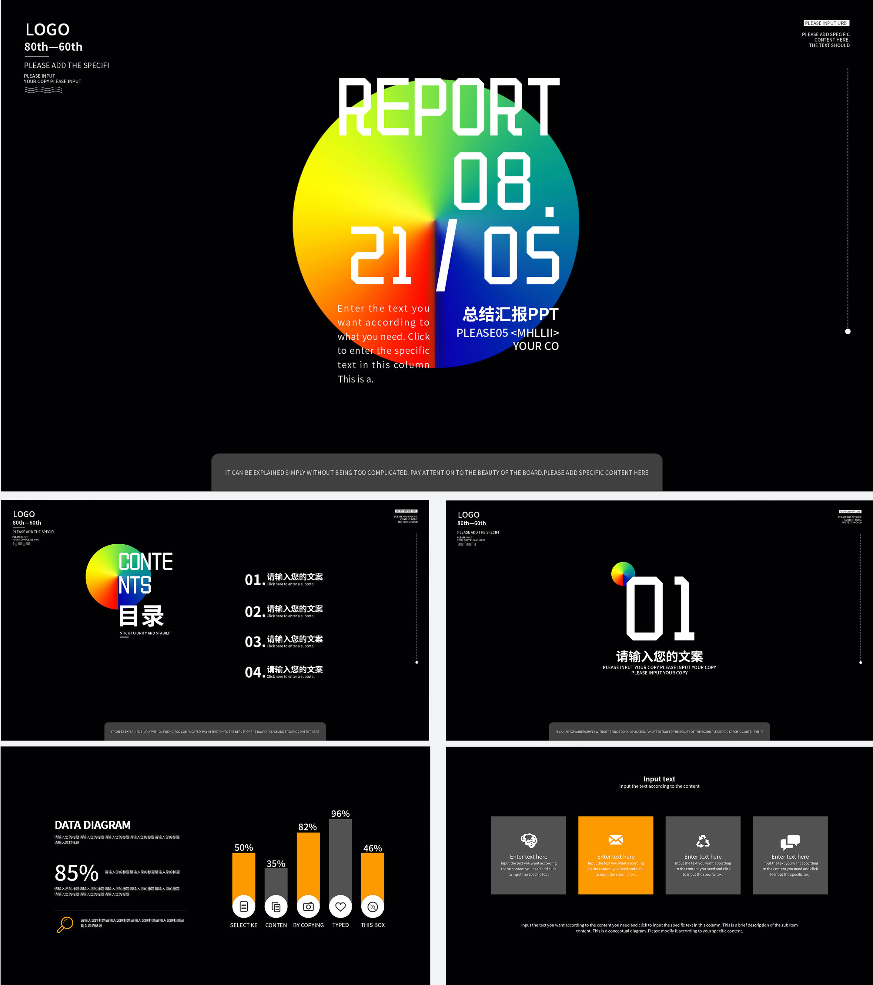 黑色极简总结汇报PPT模板