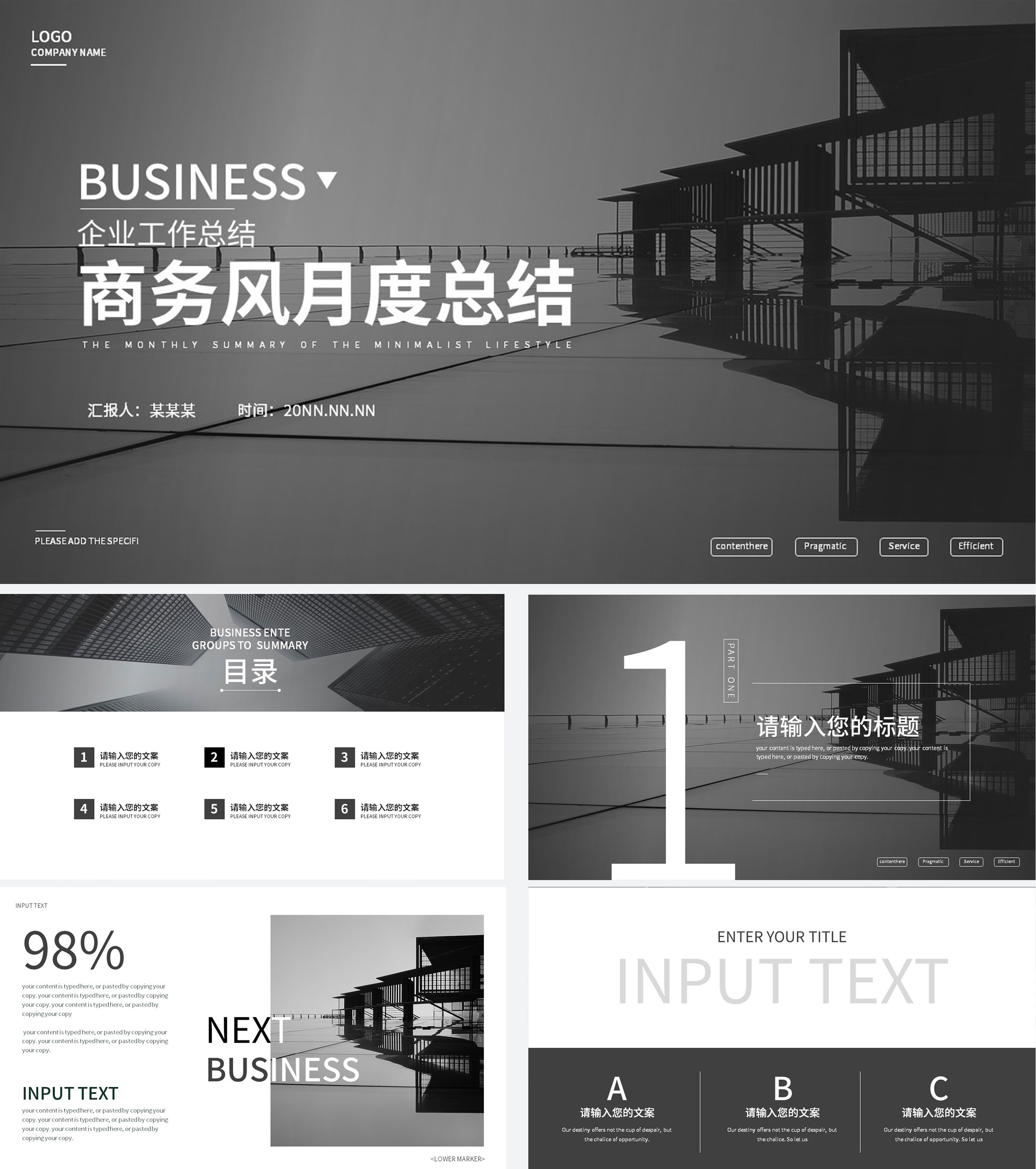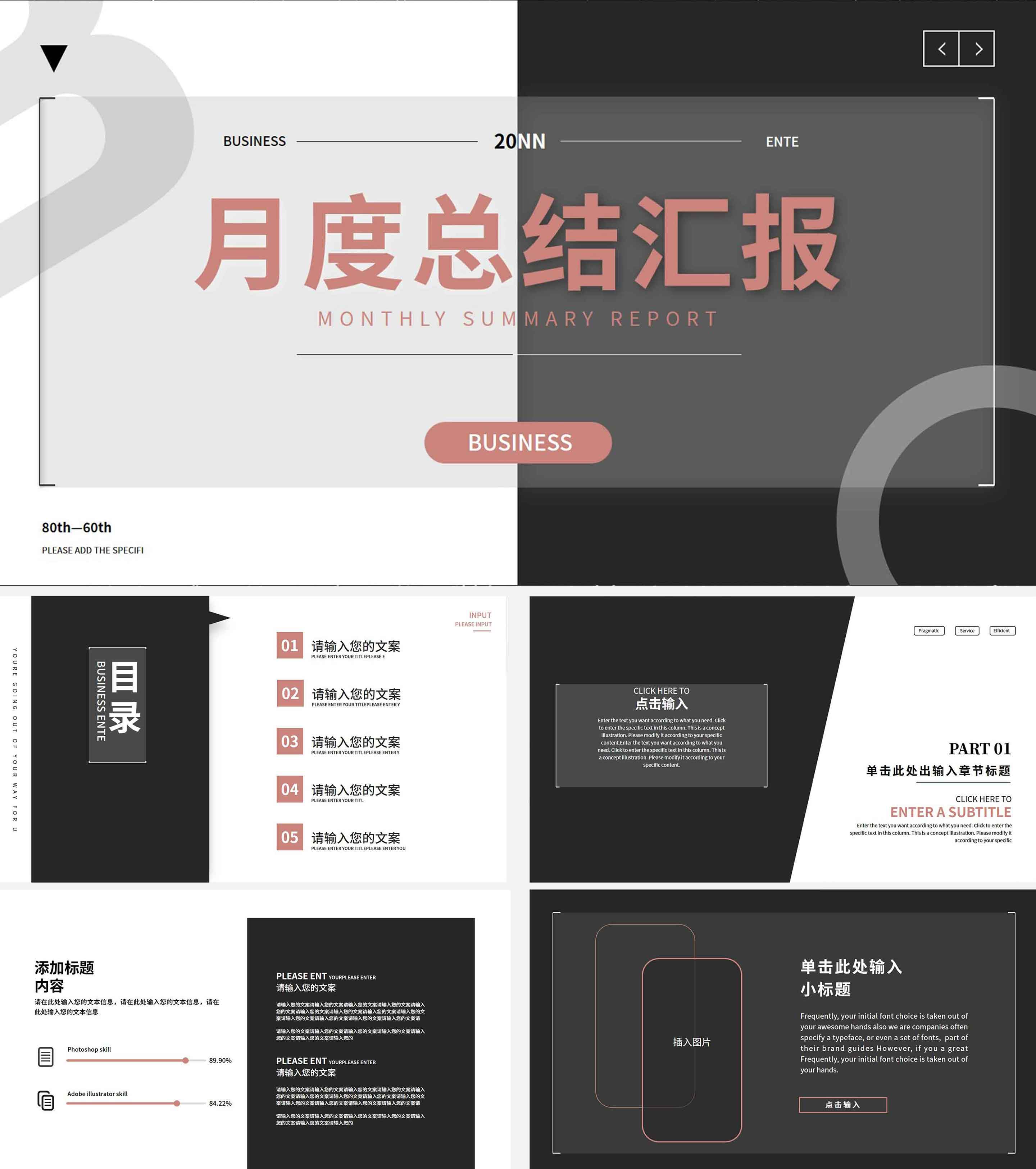 黑白拼接简约月度总结汇报PPT模板
