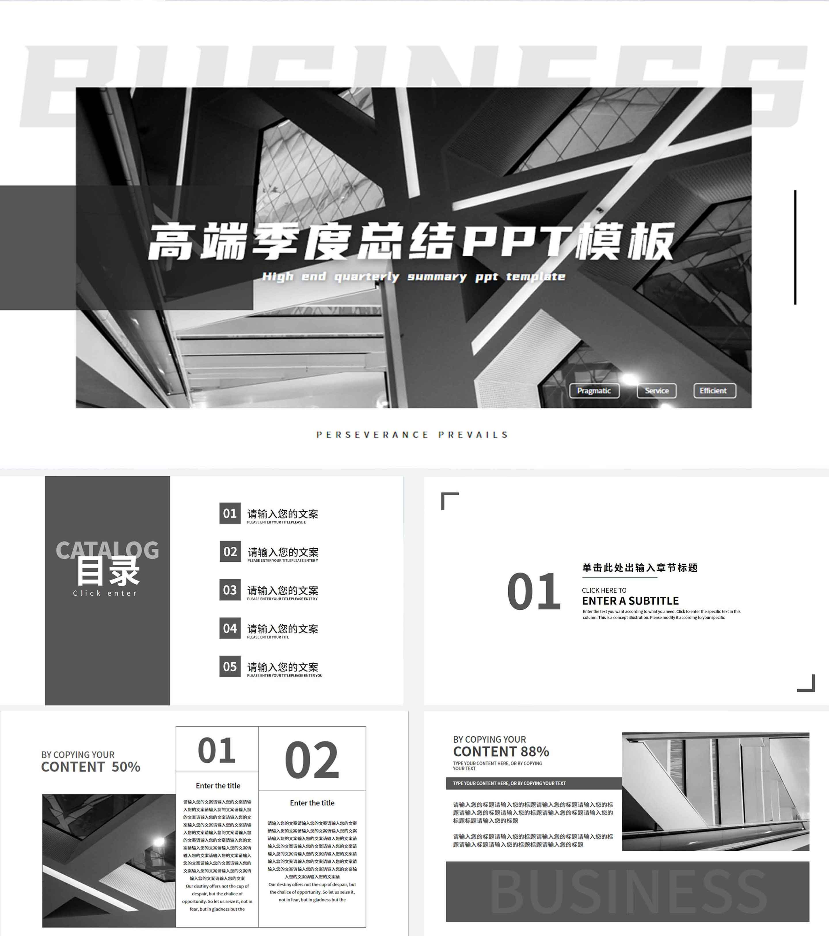 黑白灰简约风季度总结PPT模板