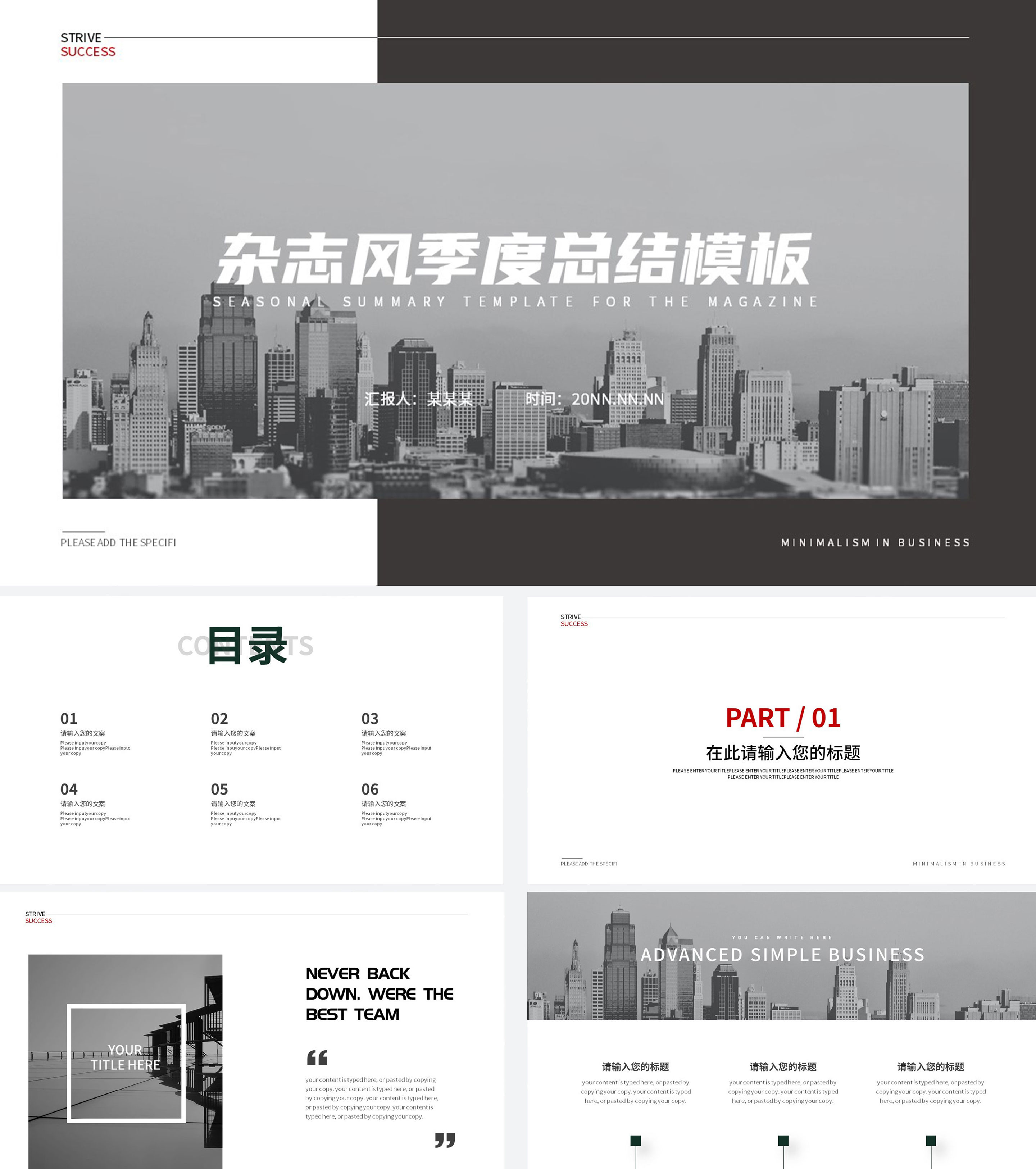 黑色杂志风季度总结PPT模板