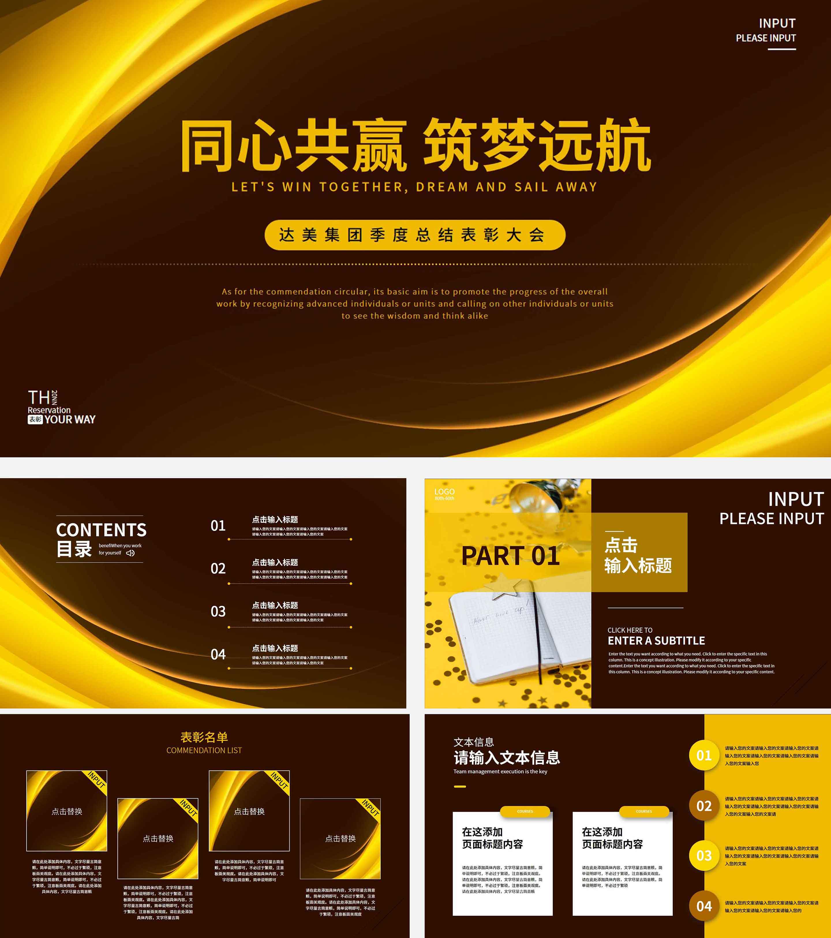 黄色简约季度表彰大会总结PPT模板