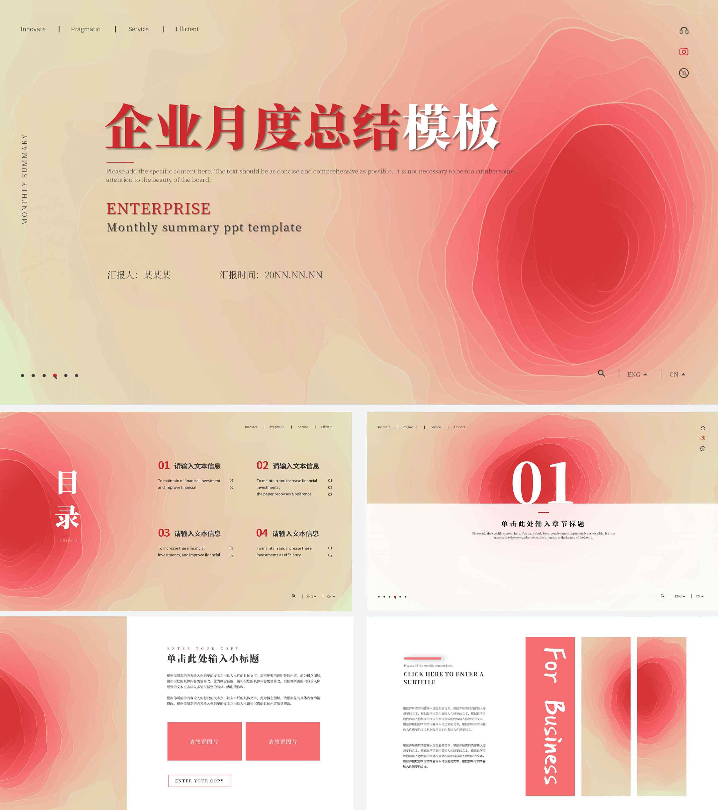粉色小清新企业月度总结PPT模板