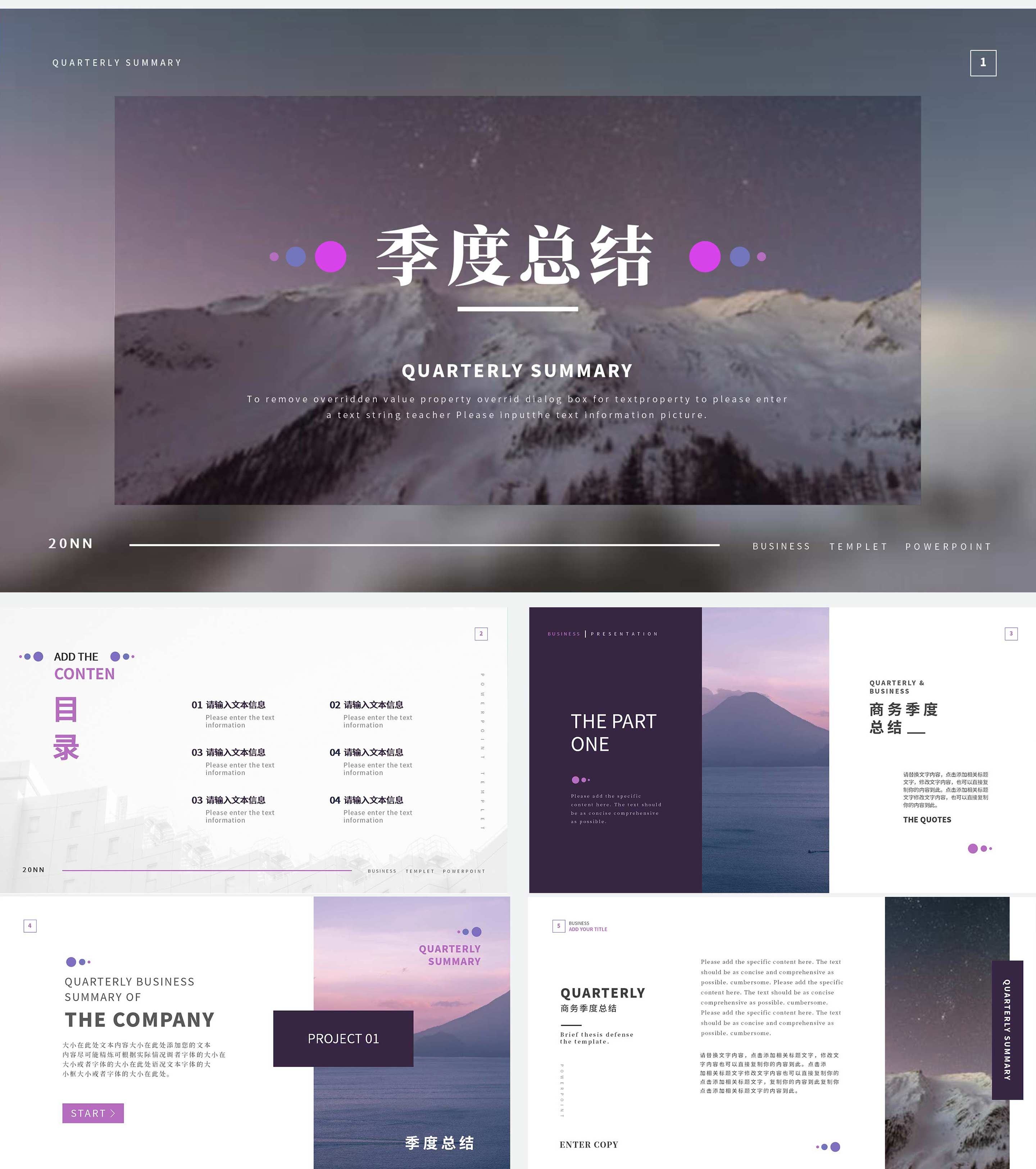 紫色商务风景季度总结PPT模板