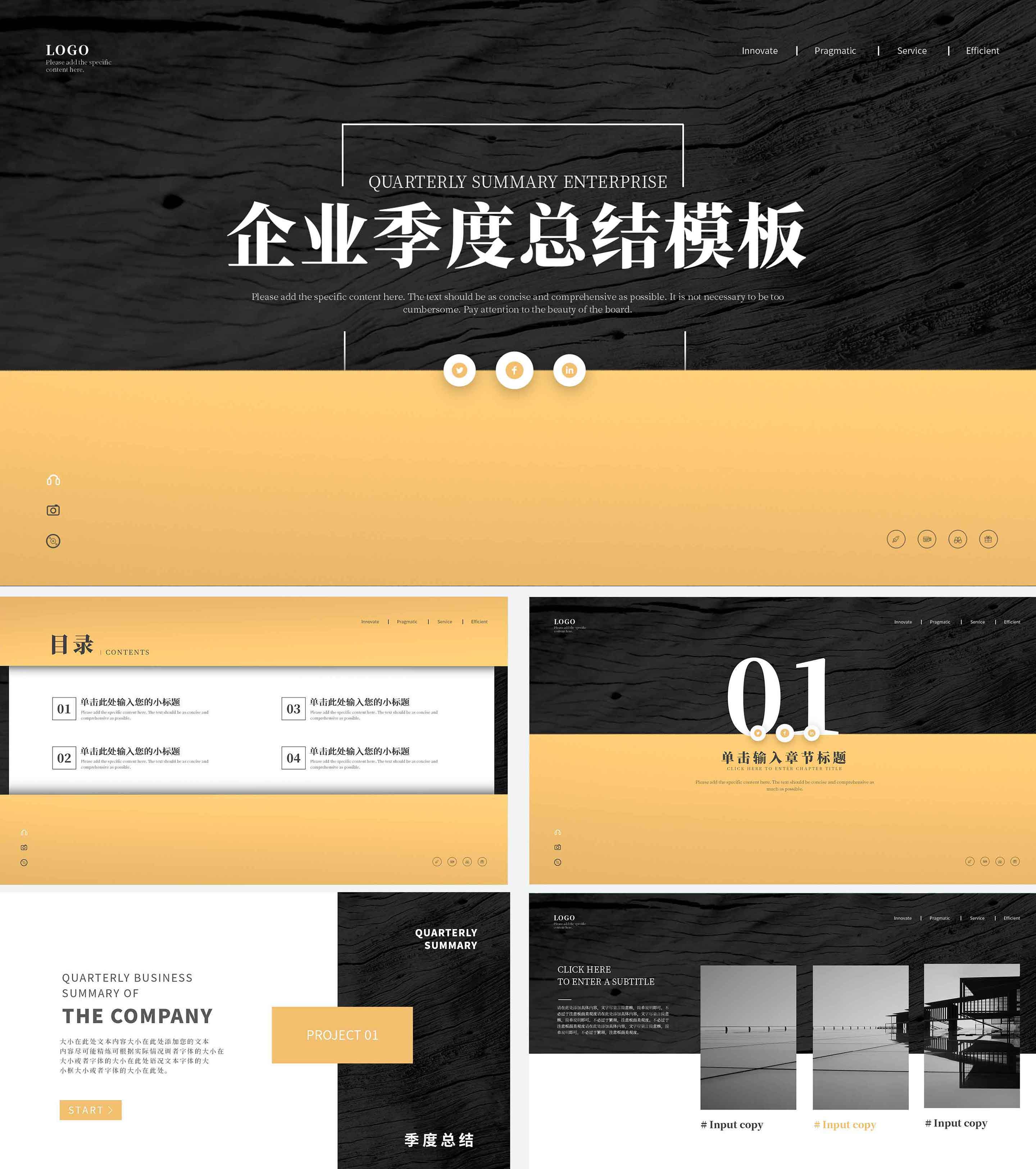 黑黄色商务拼色企业季度计总结PPT模板