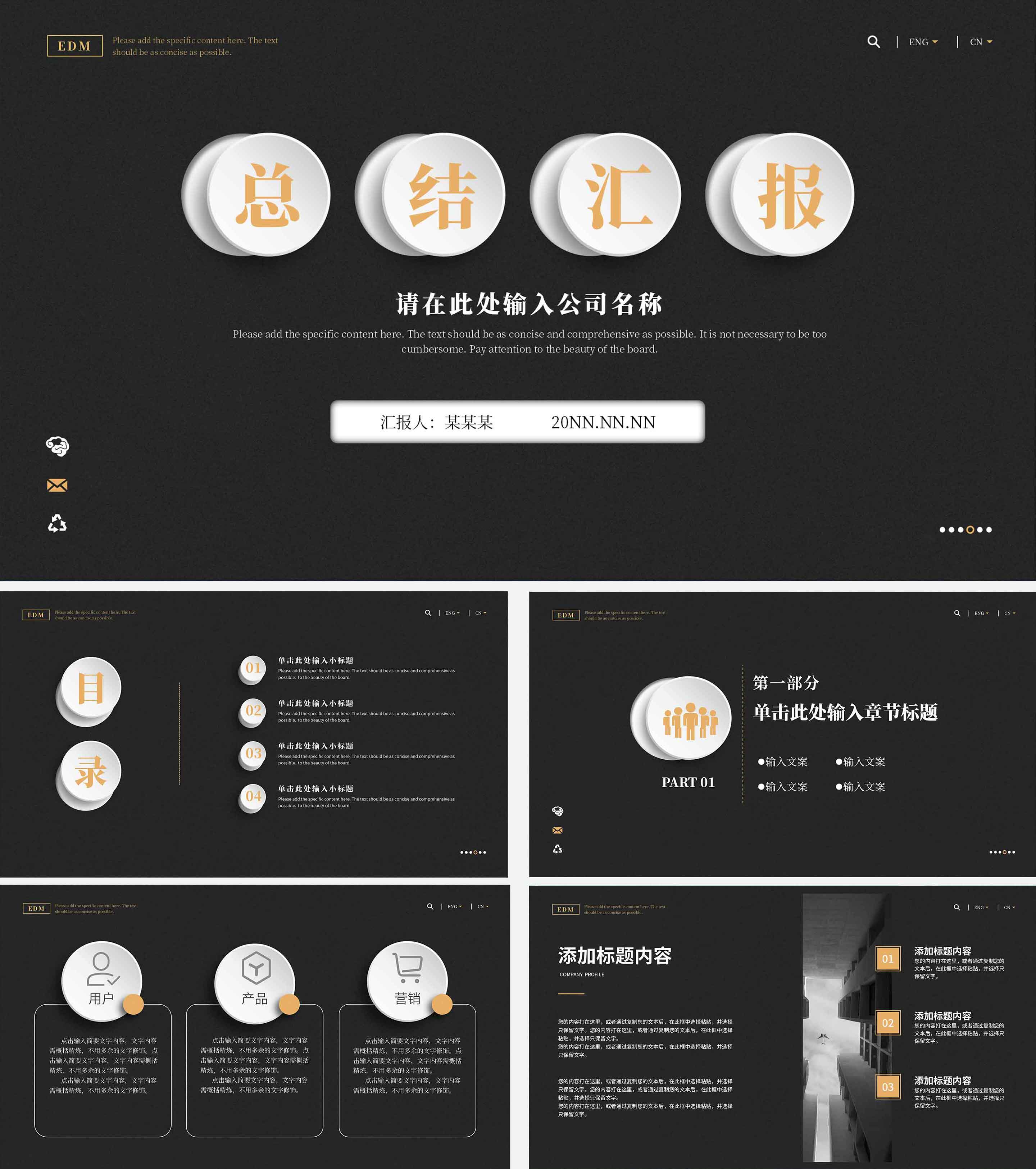 黑色简约总结汇报宣传PPT模板