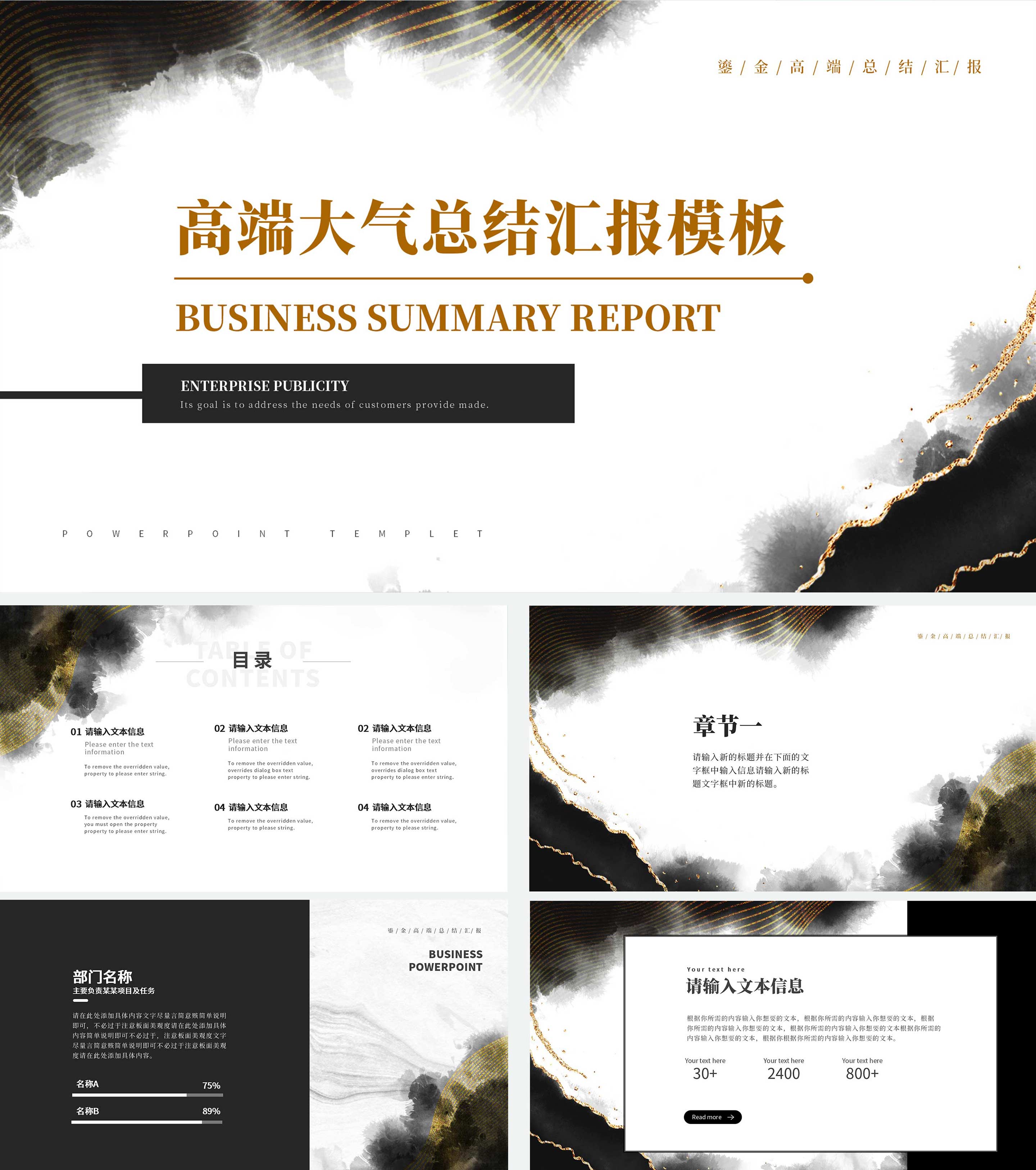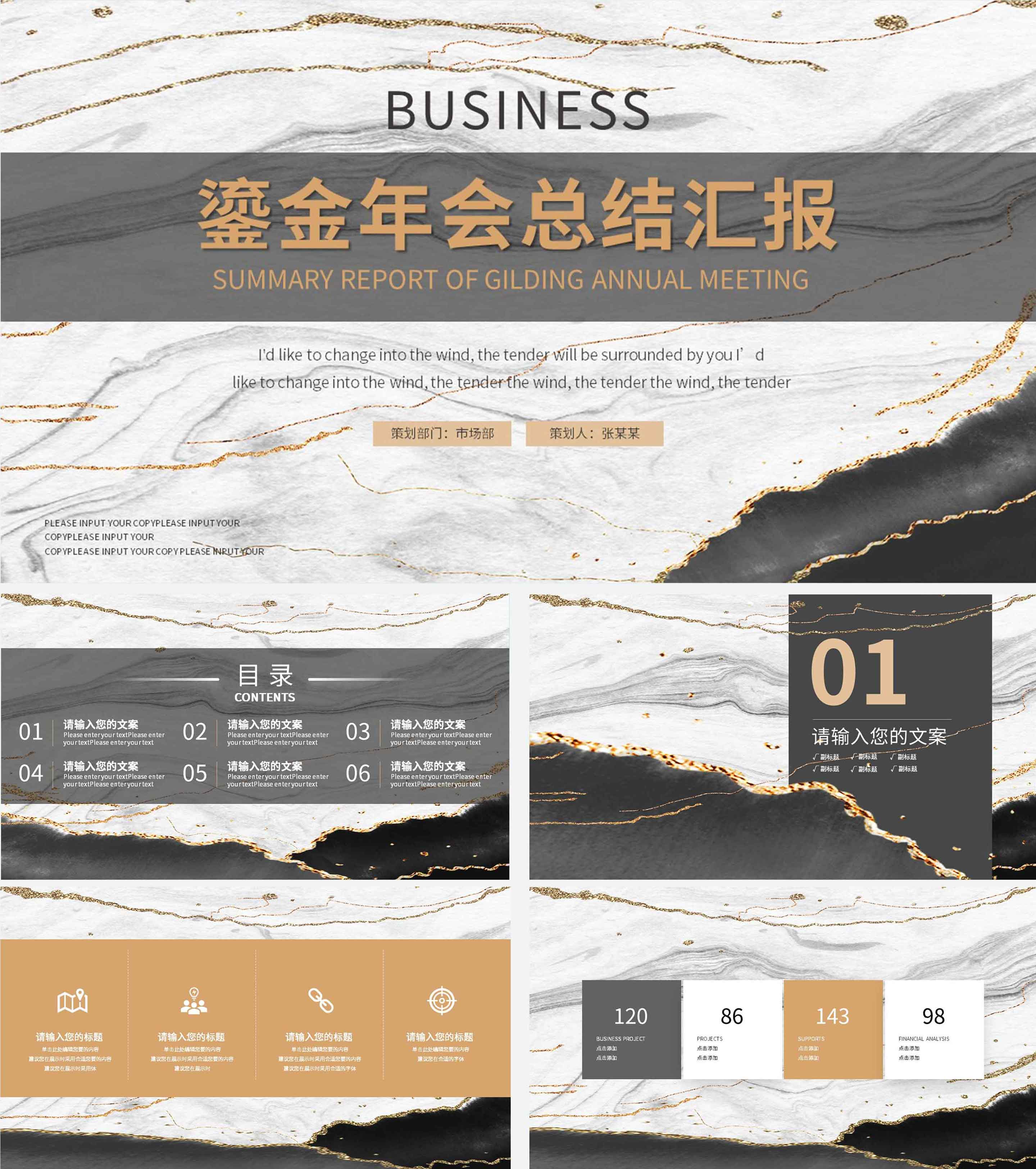 黑白中国风水墨鎏金风高端总结汇报PPT模板