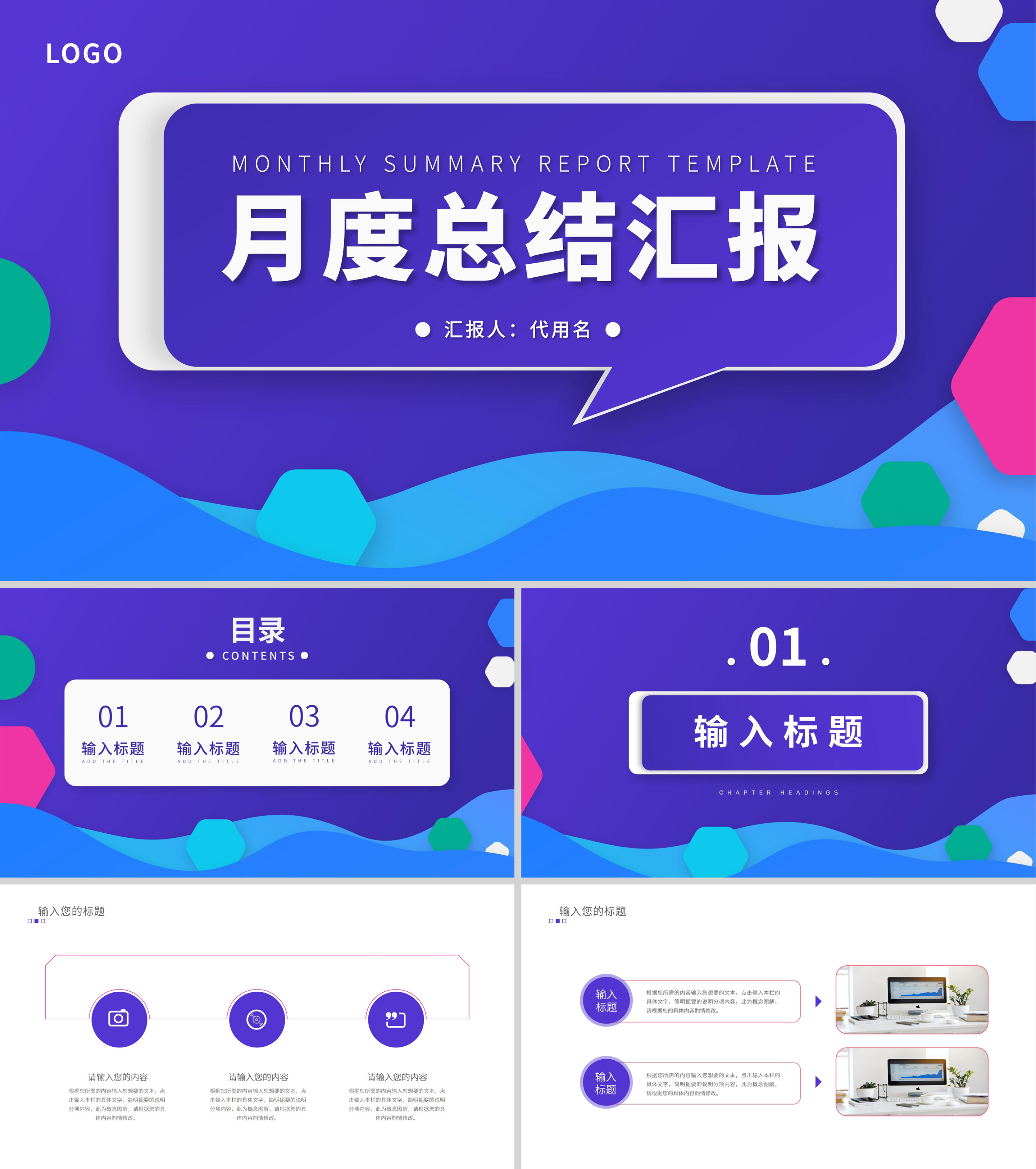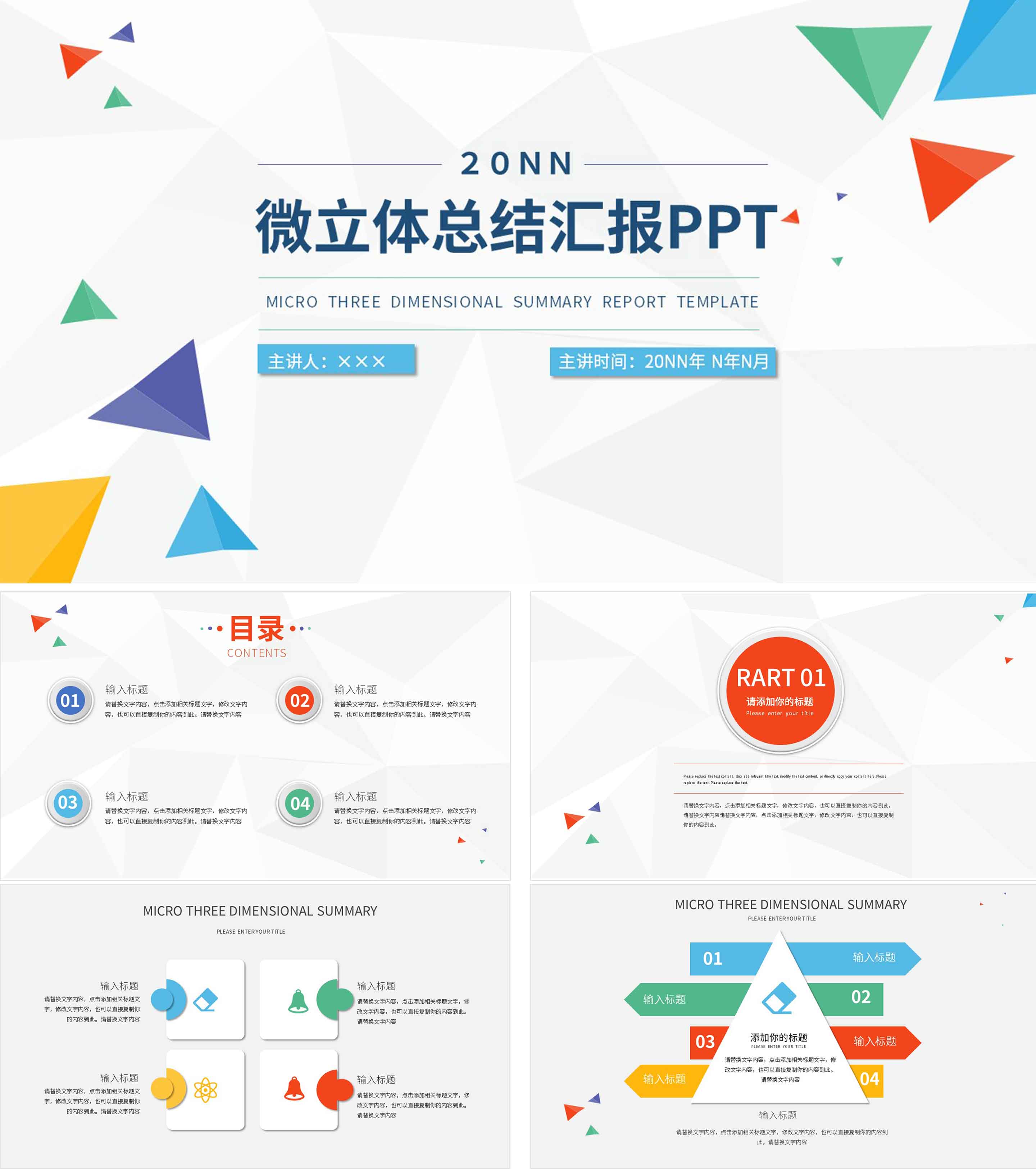 微立体彩色几何风总结汇报PPT模板