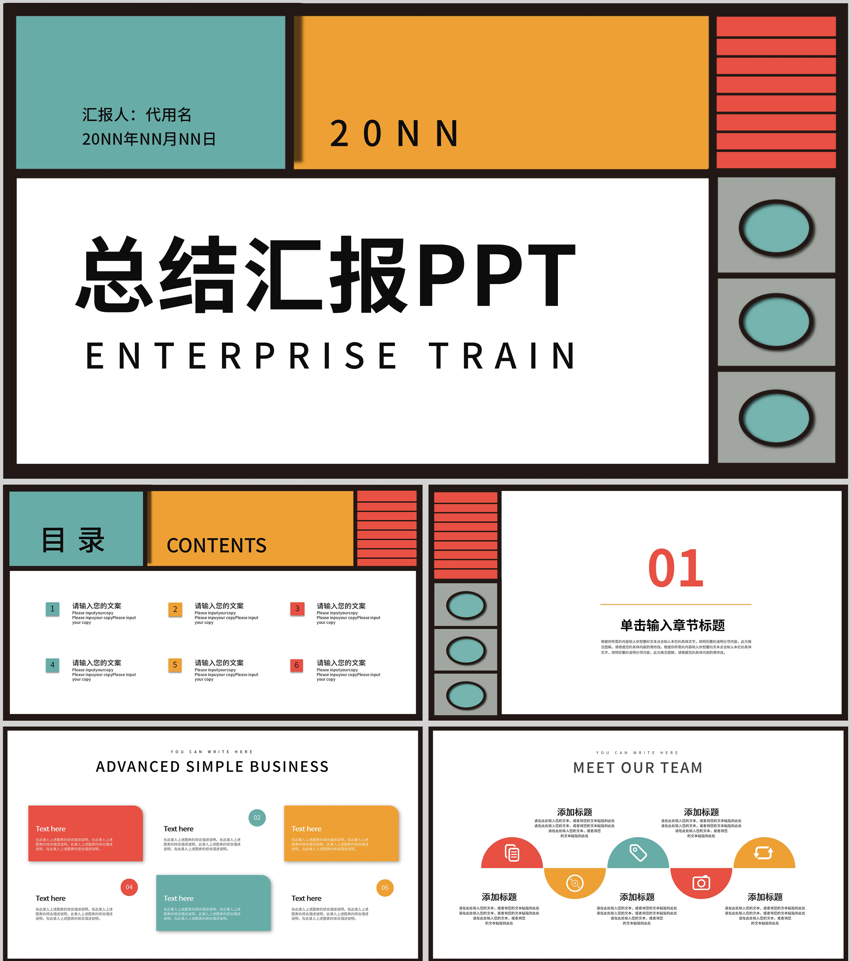 彩色孟菲斯风总结汇报PPT模板