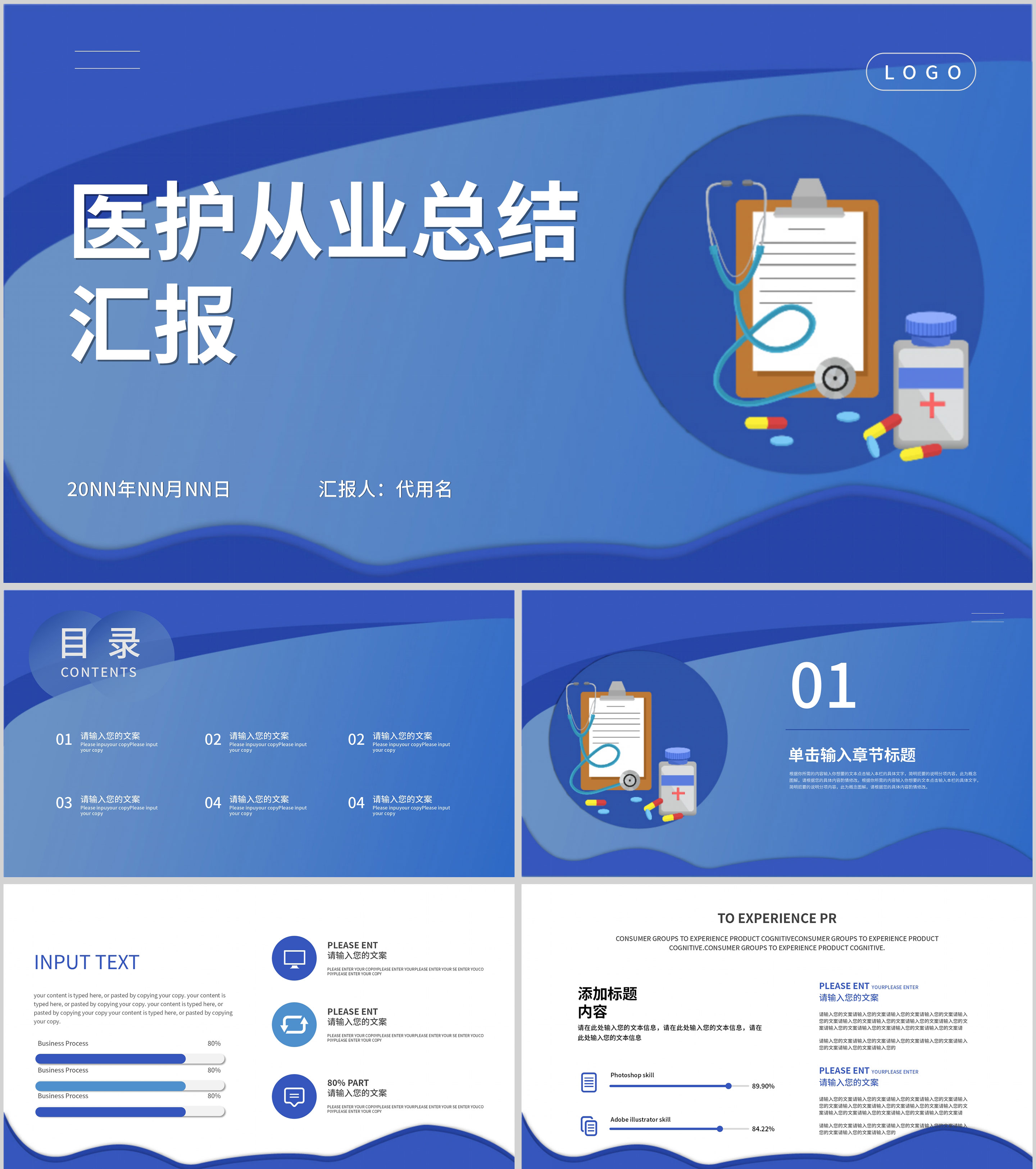 蓝色扁平风医护总结汇报PPT模板