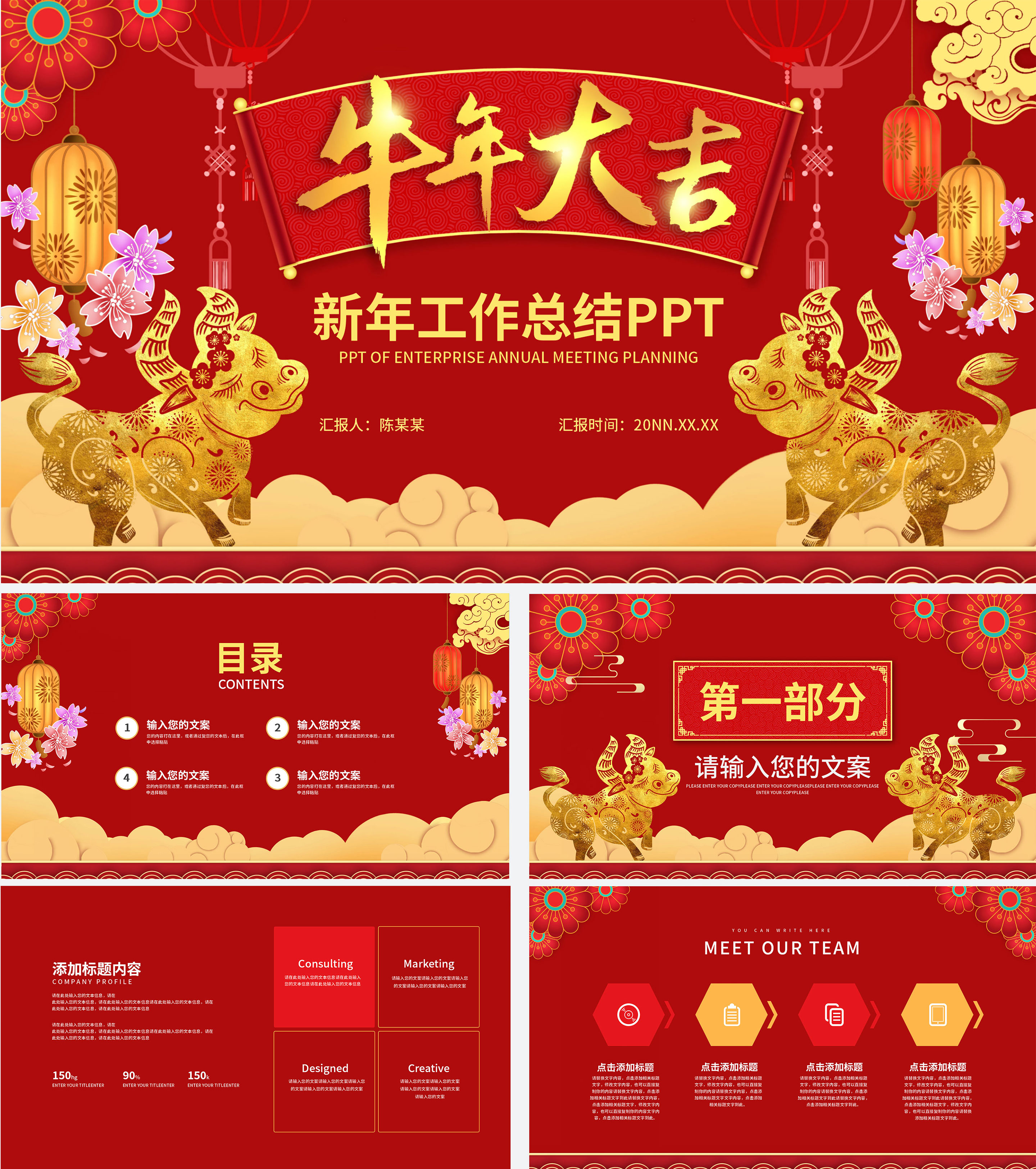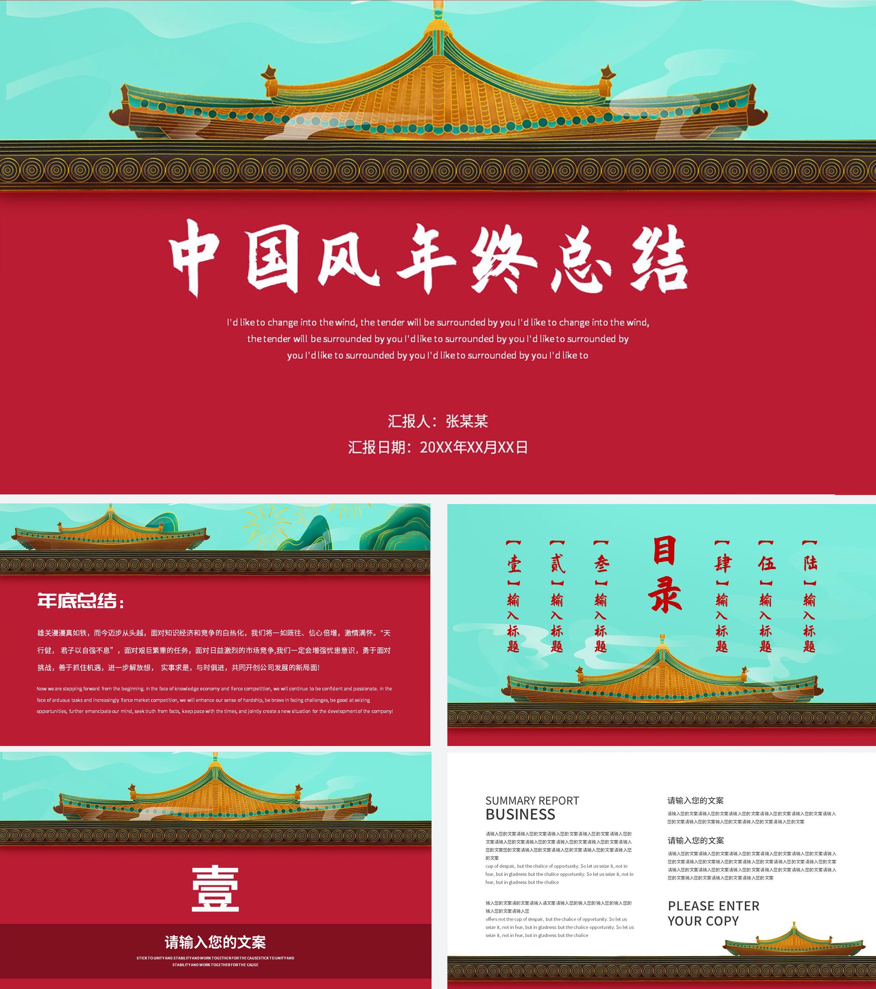 红色城墙中式总结汇报PPT模板