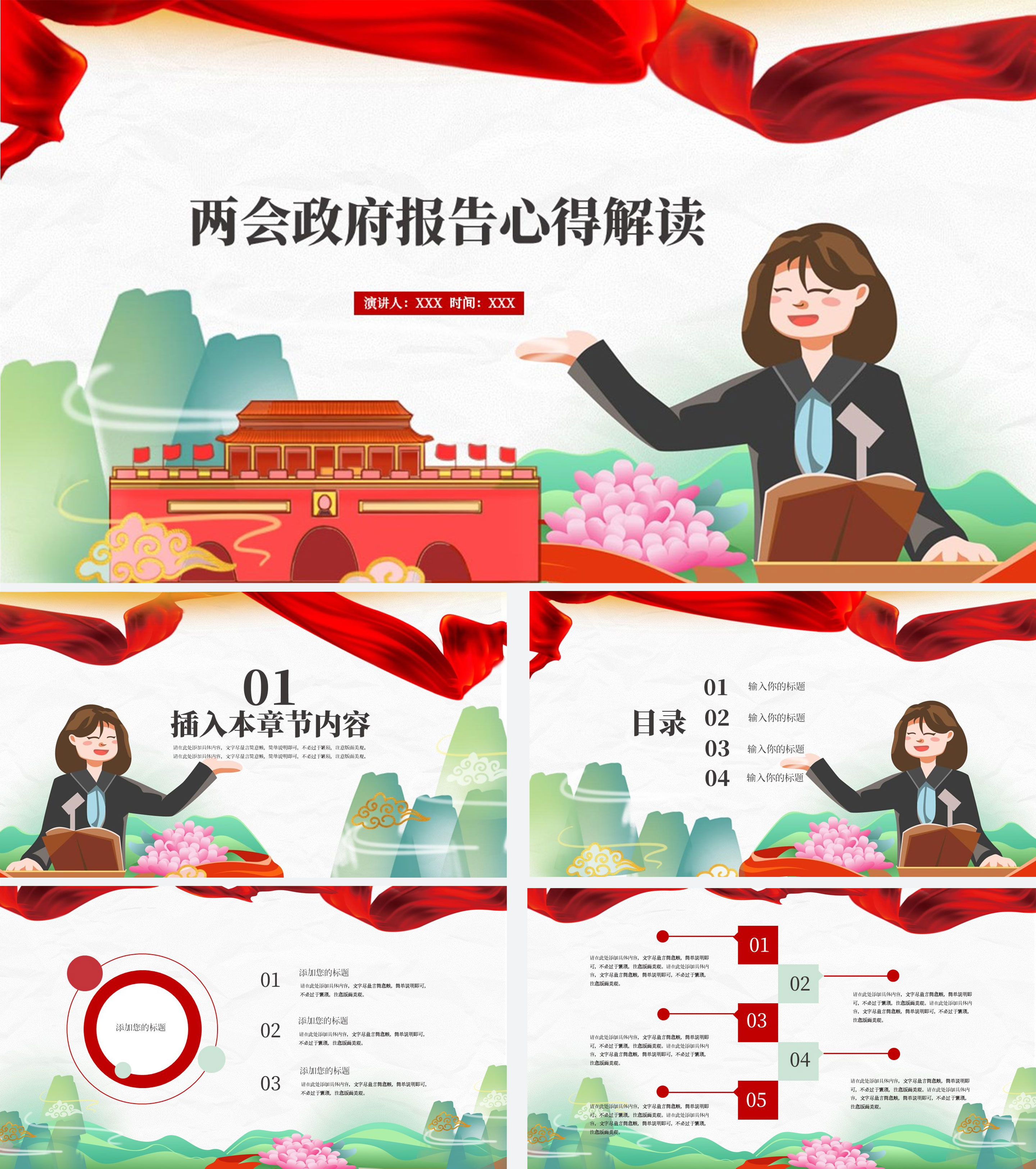 蓝色卡通插画风年度工作总结汇报PPT模板