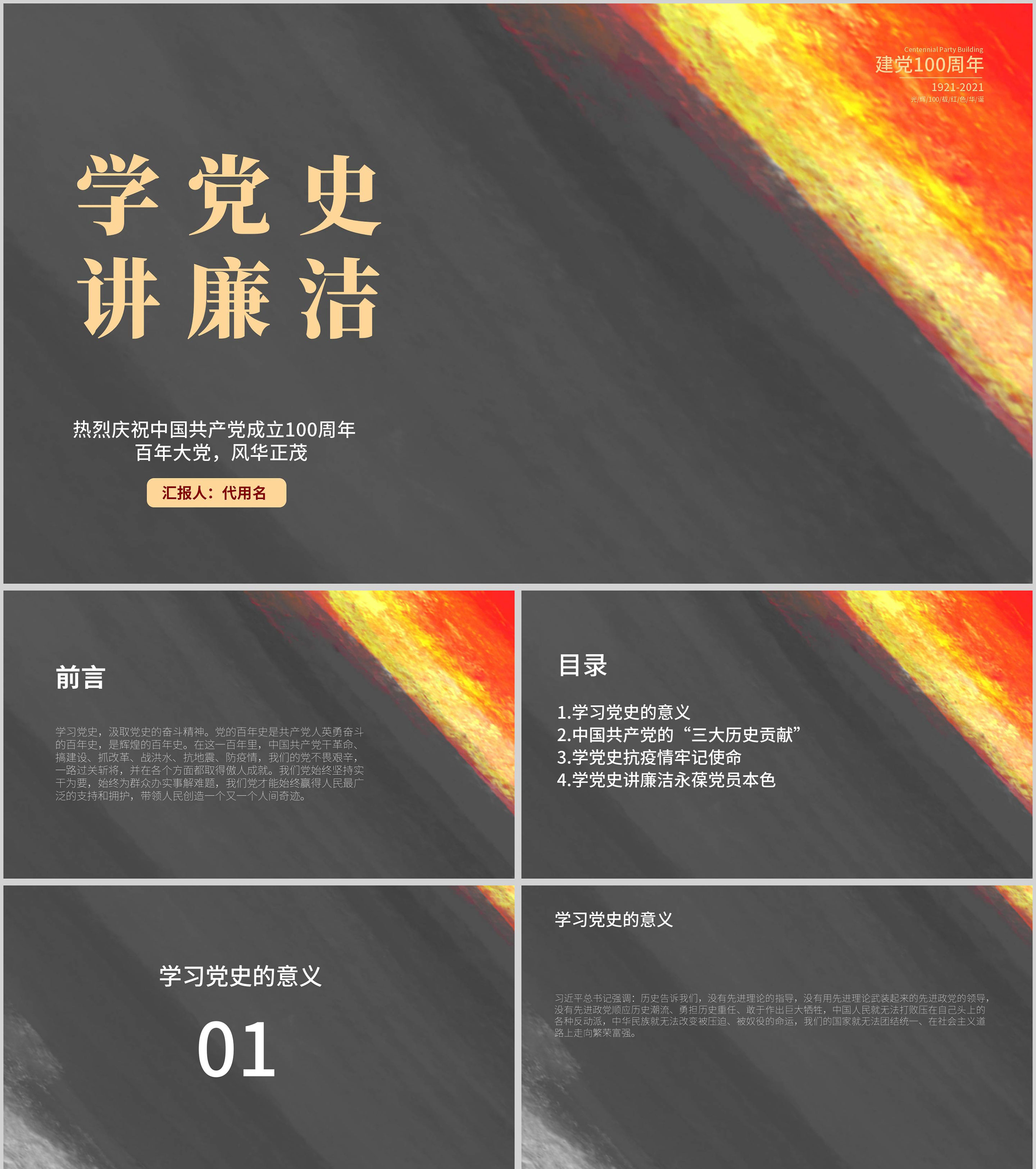 黑色纹理风学生教育党政历史宣传报告PPT模板