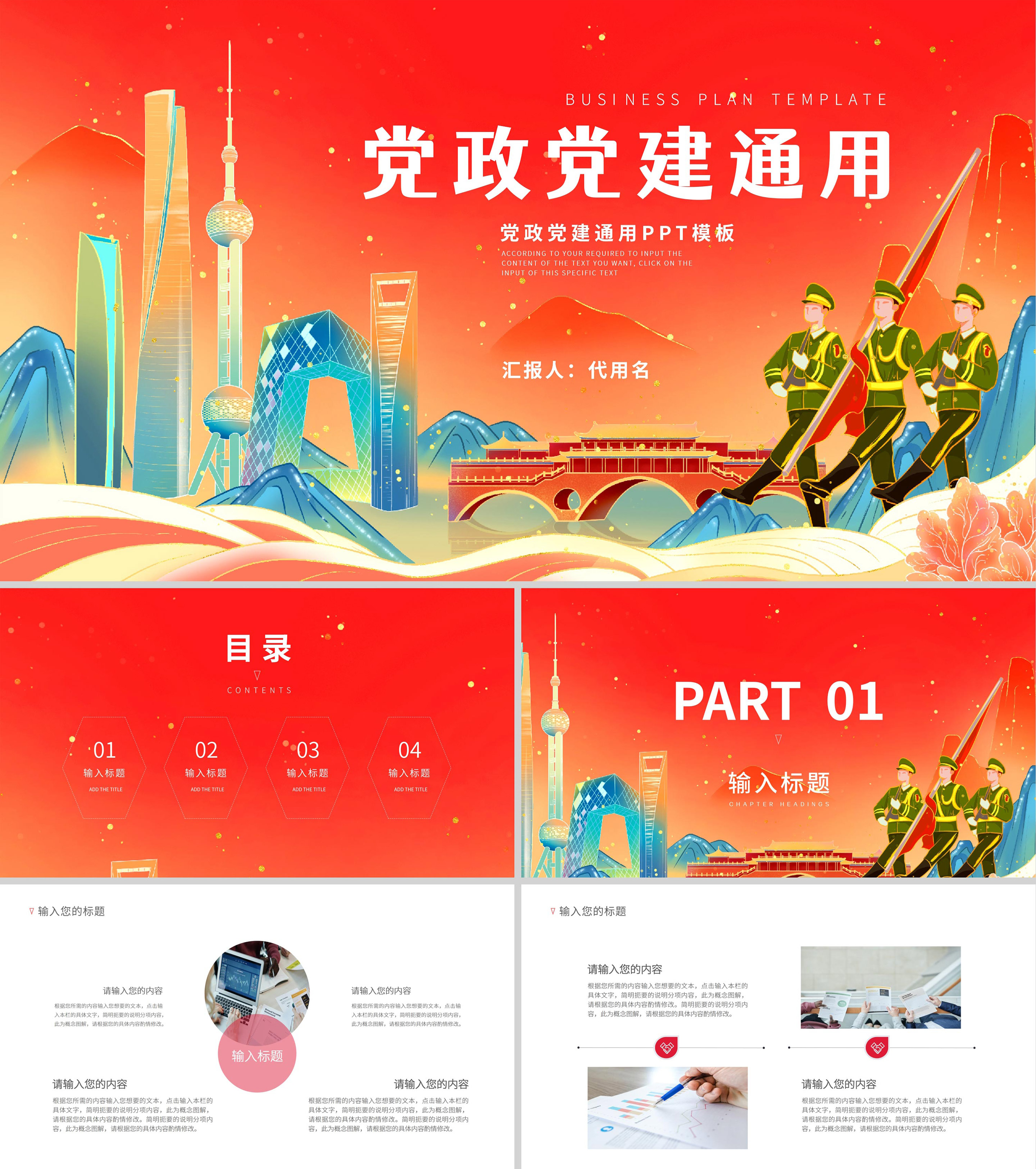 红色党政风党建通用PPT模板